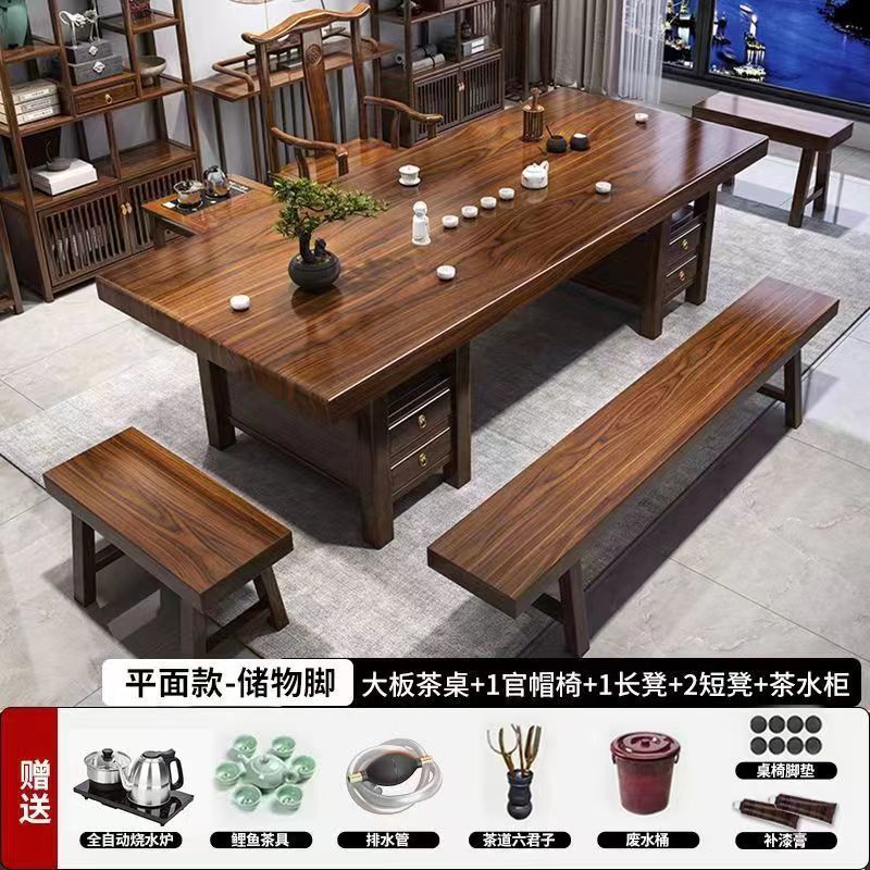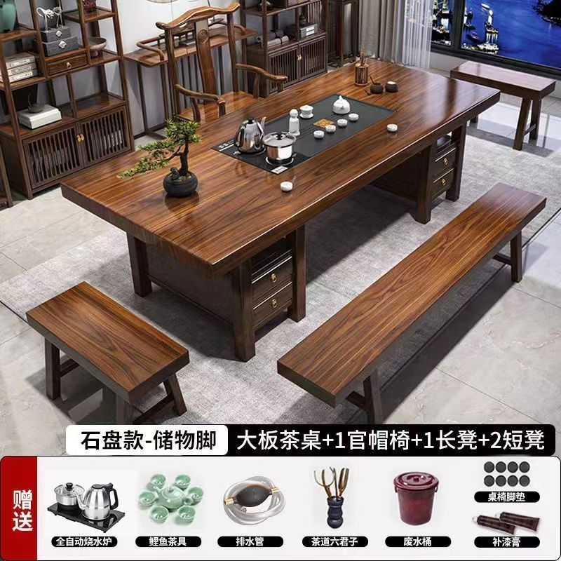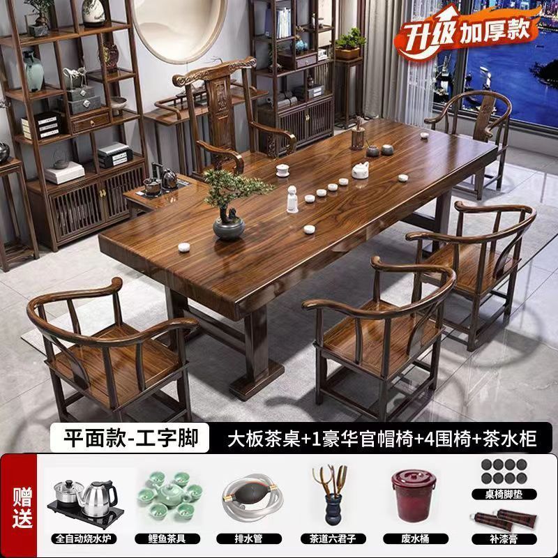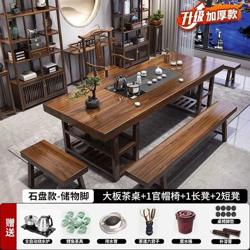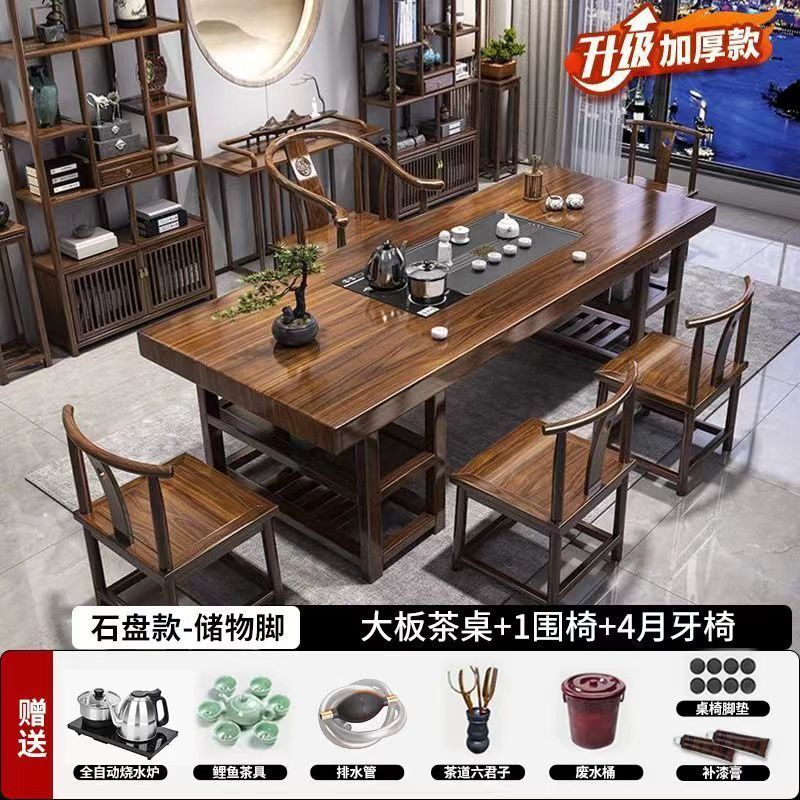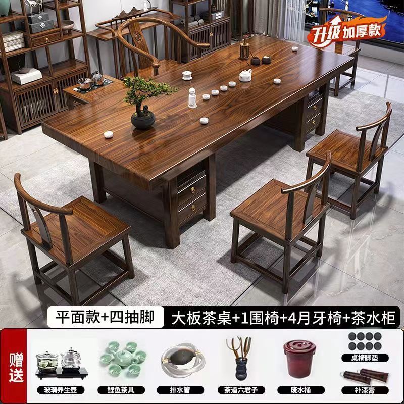 高端实木大板茶桌椅组合一体一整套新中式茶几茶具办公家用泡茶台