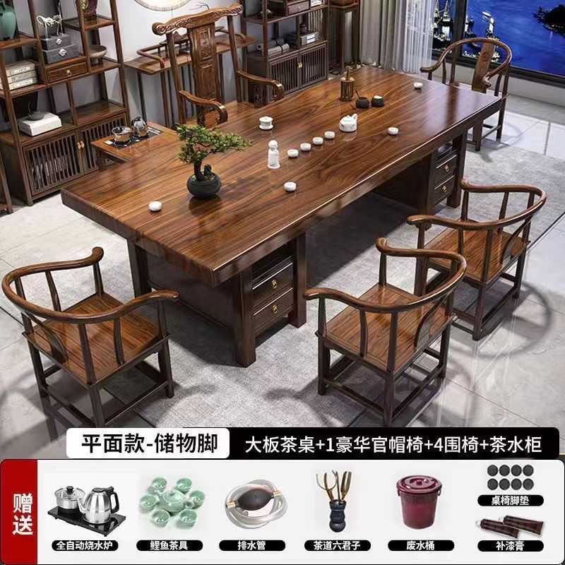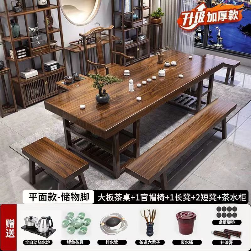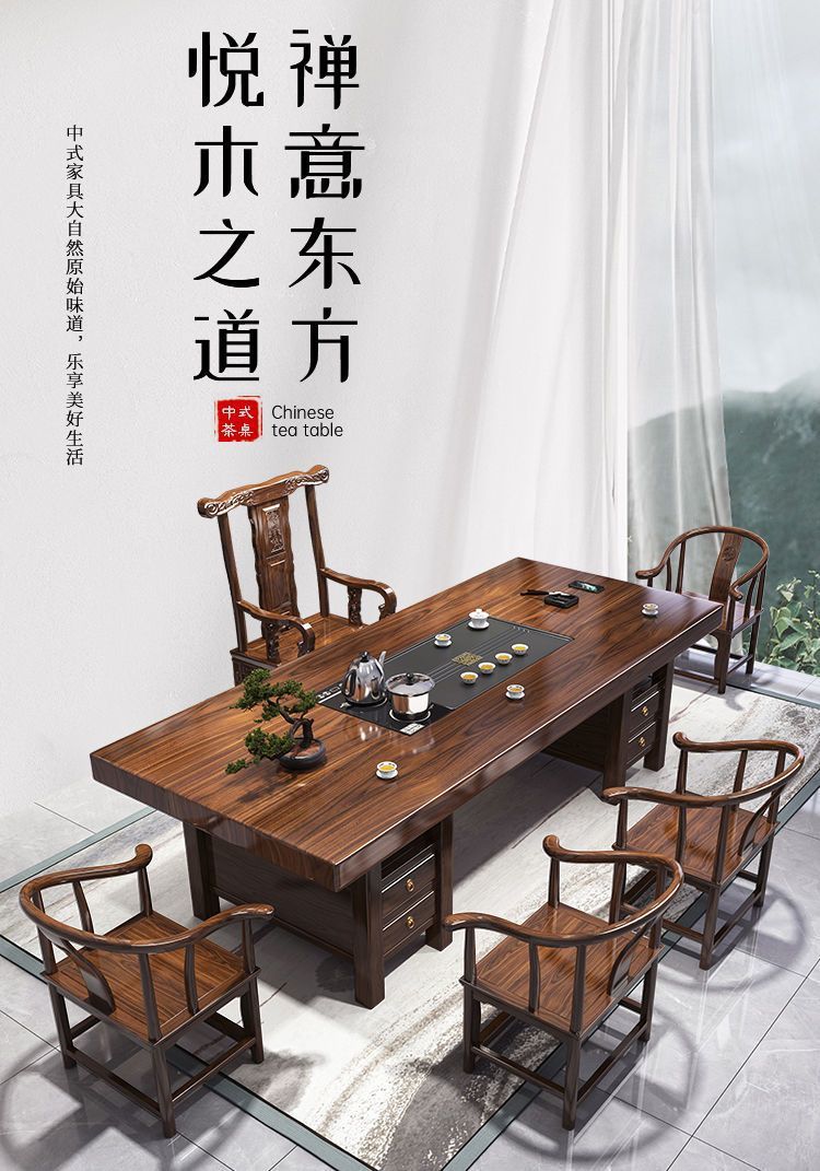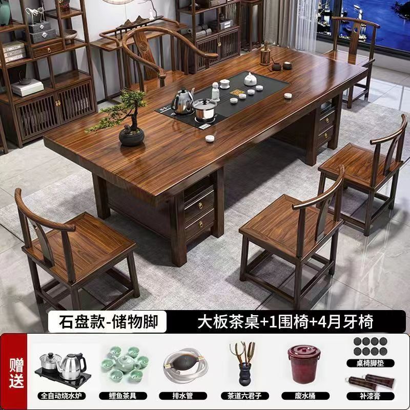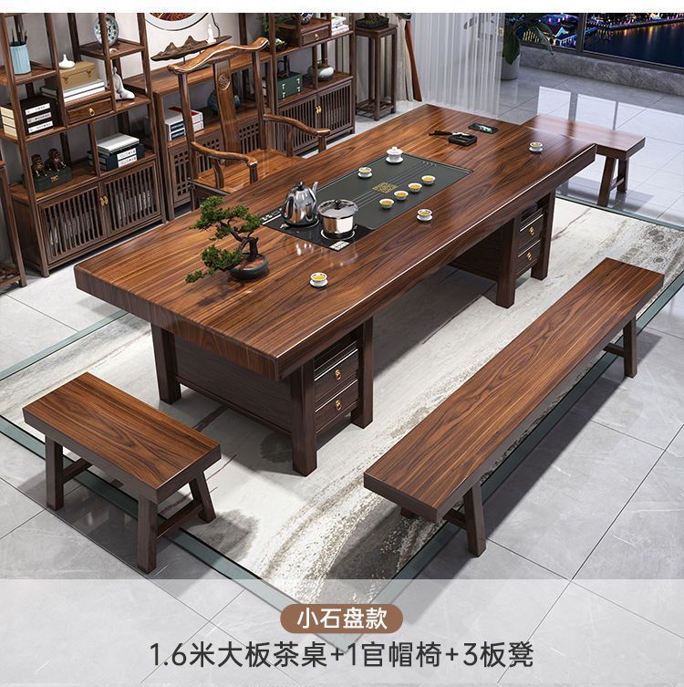 高端实木大板茶桌椅组合一体一整套新中式茶几茶具办公家用泡茶台