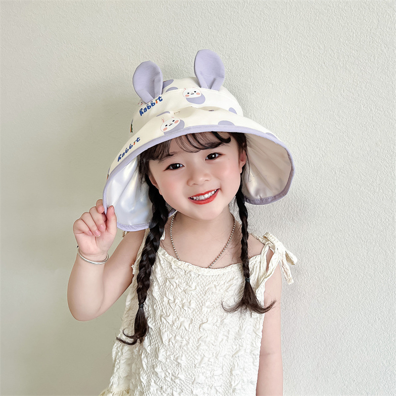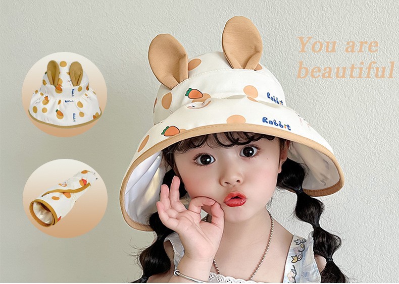 可爱超萌女童大檐防晒渔夫帽夏季遮阳儿童空顶帽潮户外宝宝太阳帽