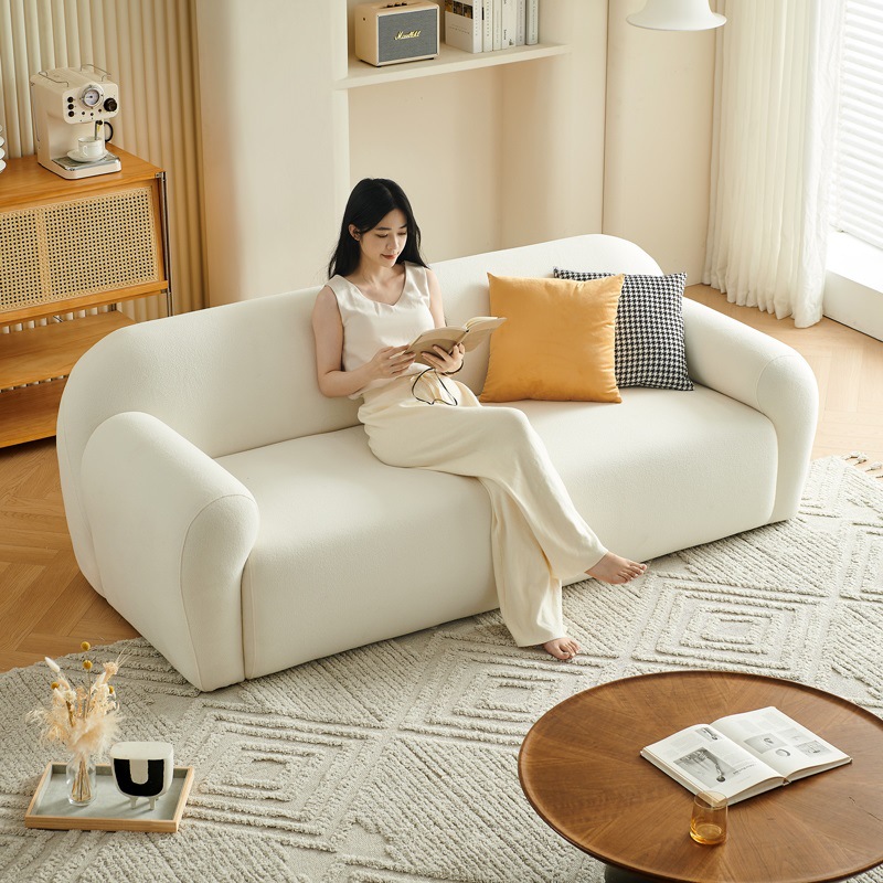 奶油风沙发小户型女生卧室双人网红公寓服装店美容院羊羔绒小沙发