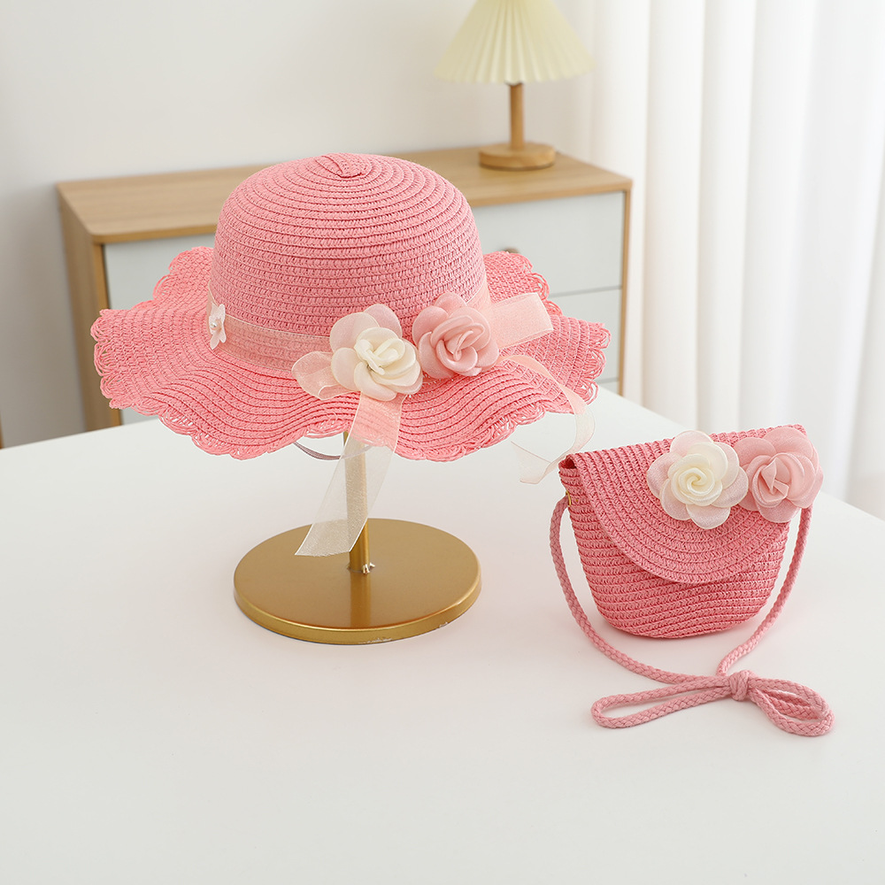 夏季新款儿童帽子时尚花朵宝宝草帽沙滩防晒遮阳帽小孩太阳帽批发