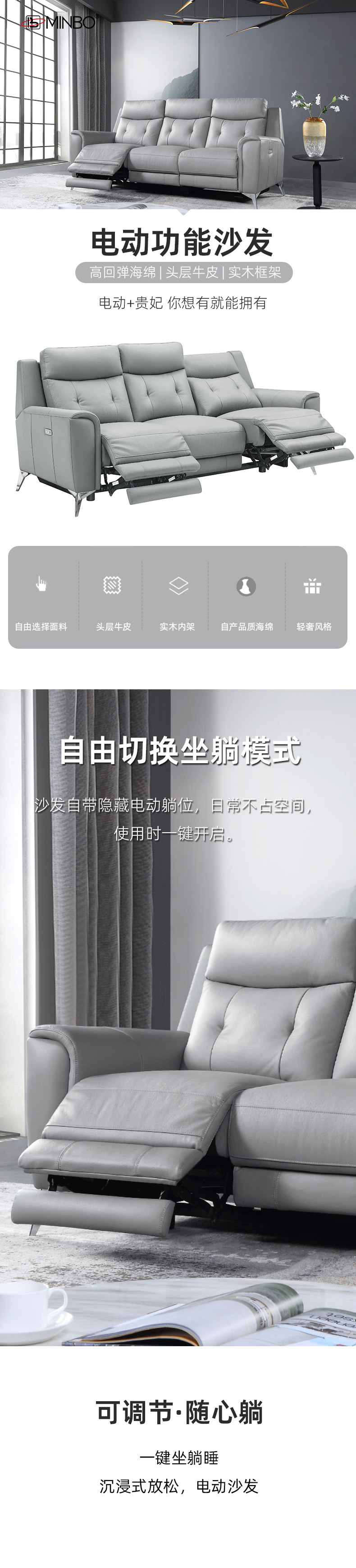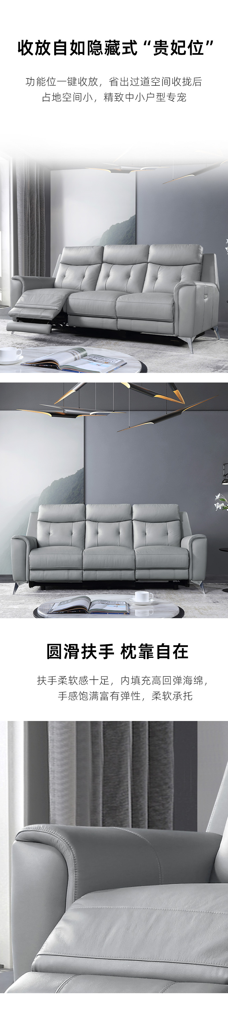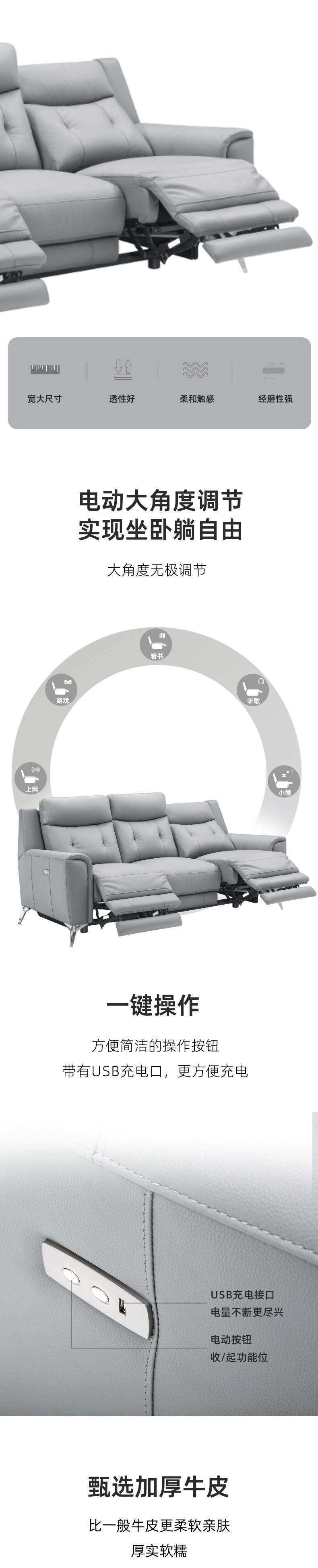 定制高端真头层牛皮意式极简沙发真皮客厅家用三人位电动功能沙发