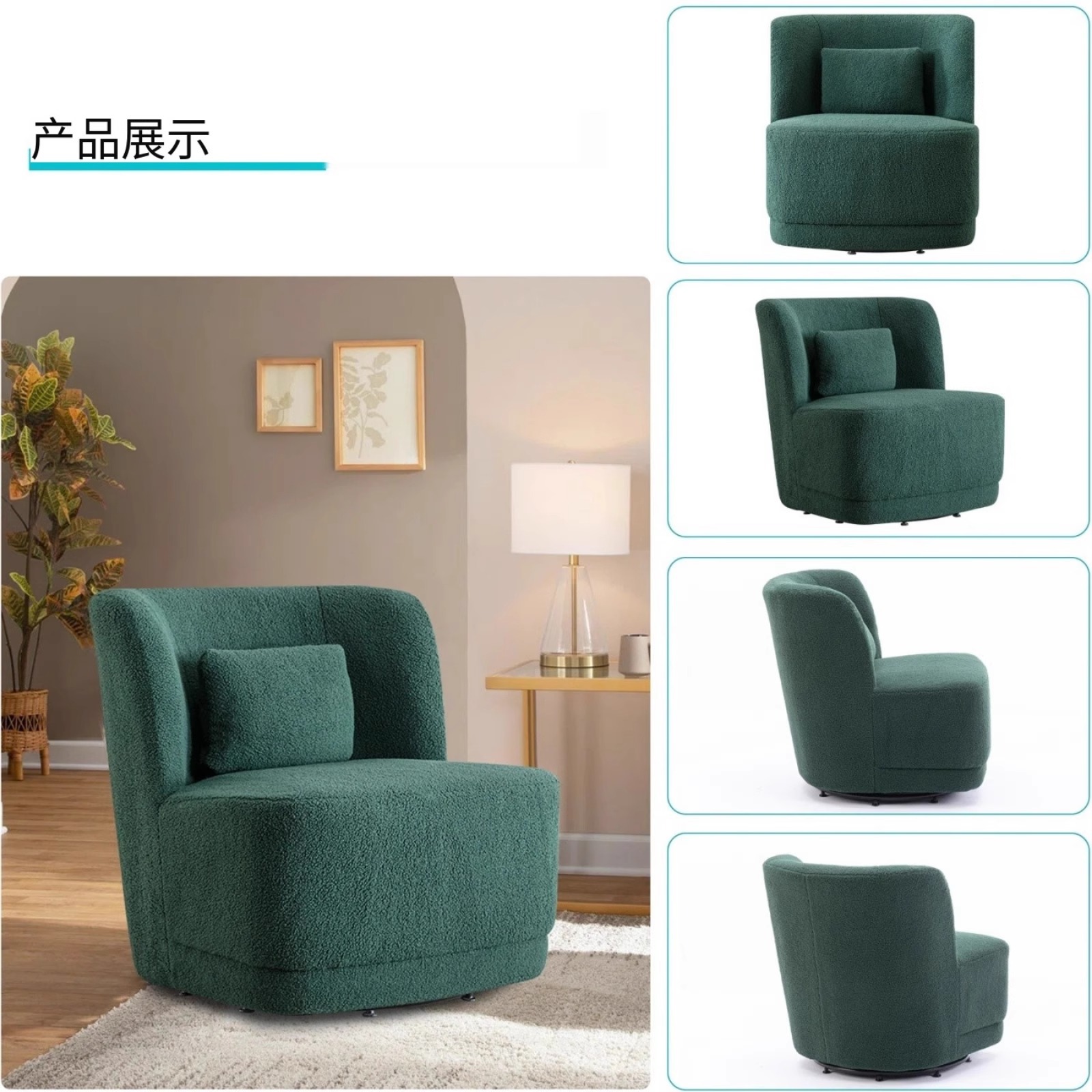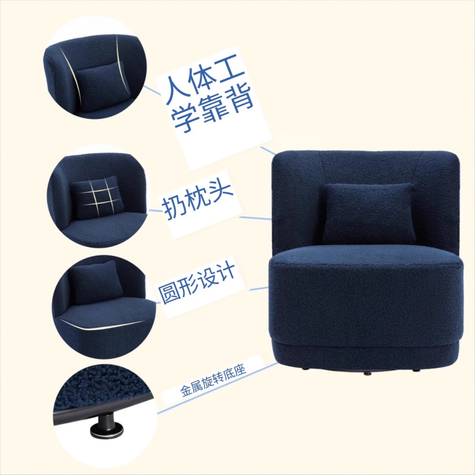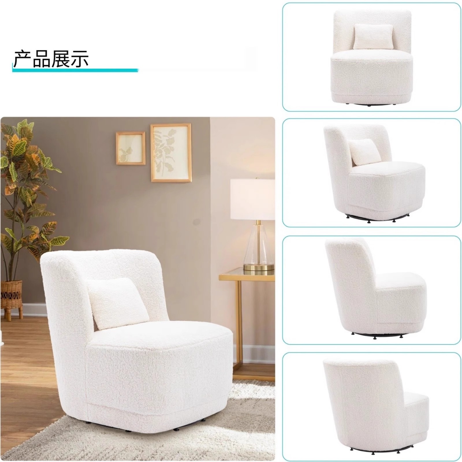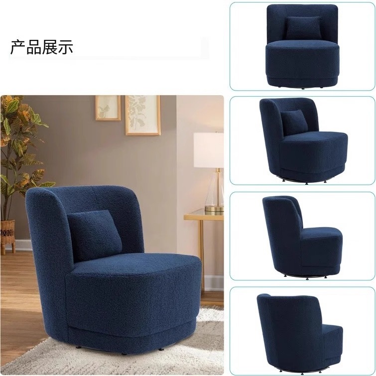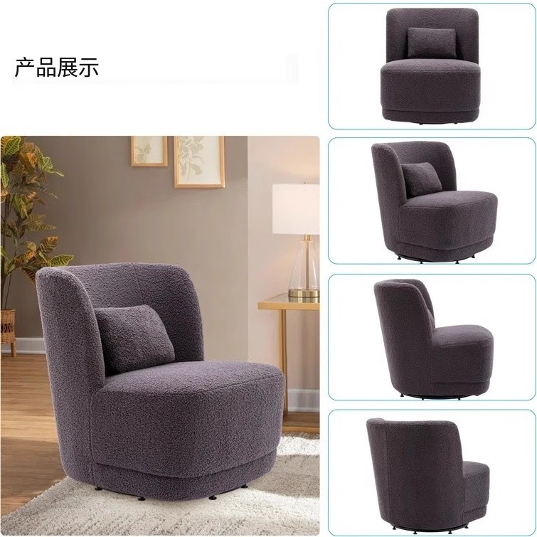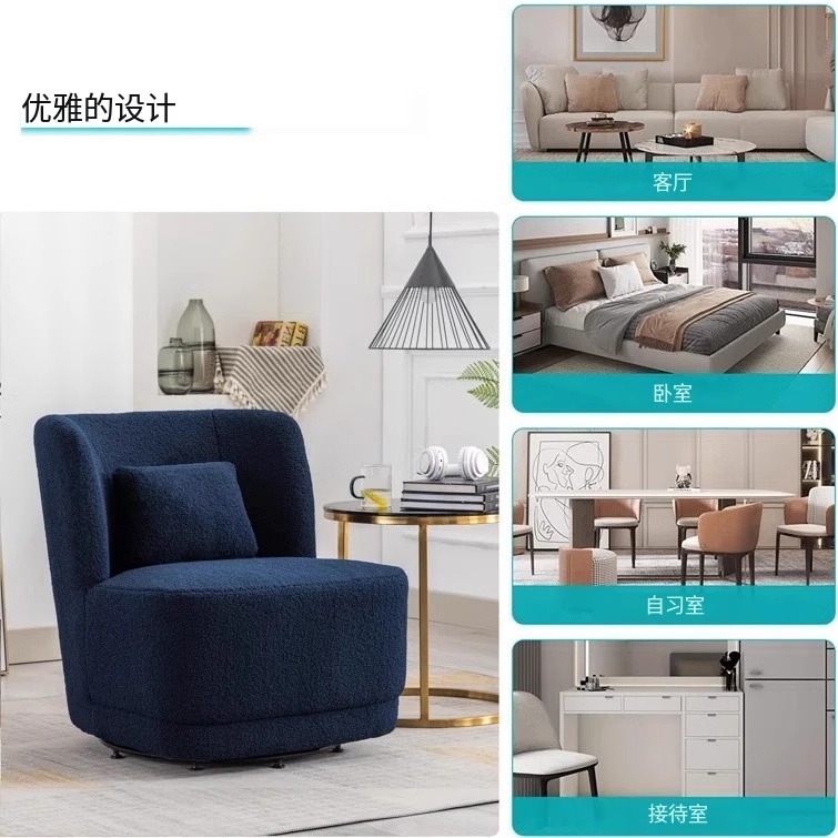 北欧轻奢羊羔绒单人沙发奶油风客厅旋转沙发酒店会所咖啡厅洽谈椅