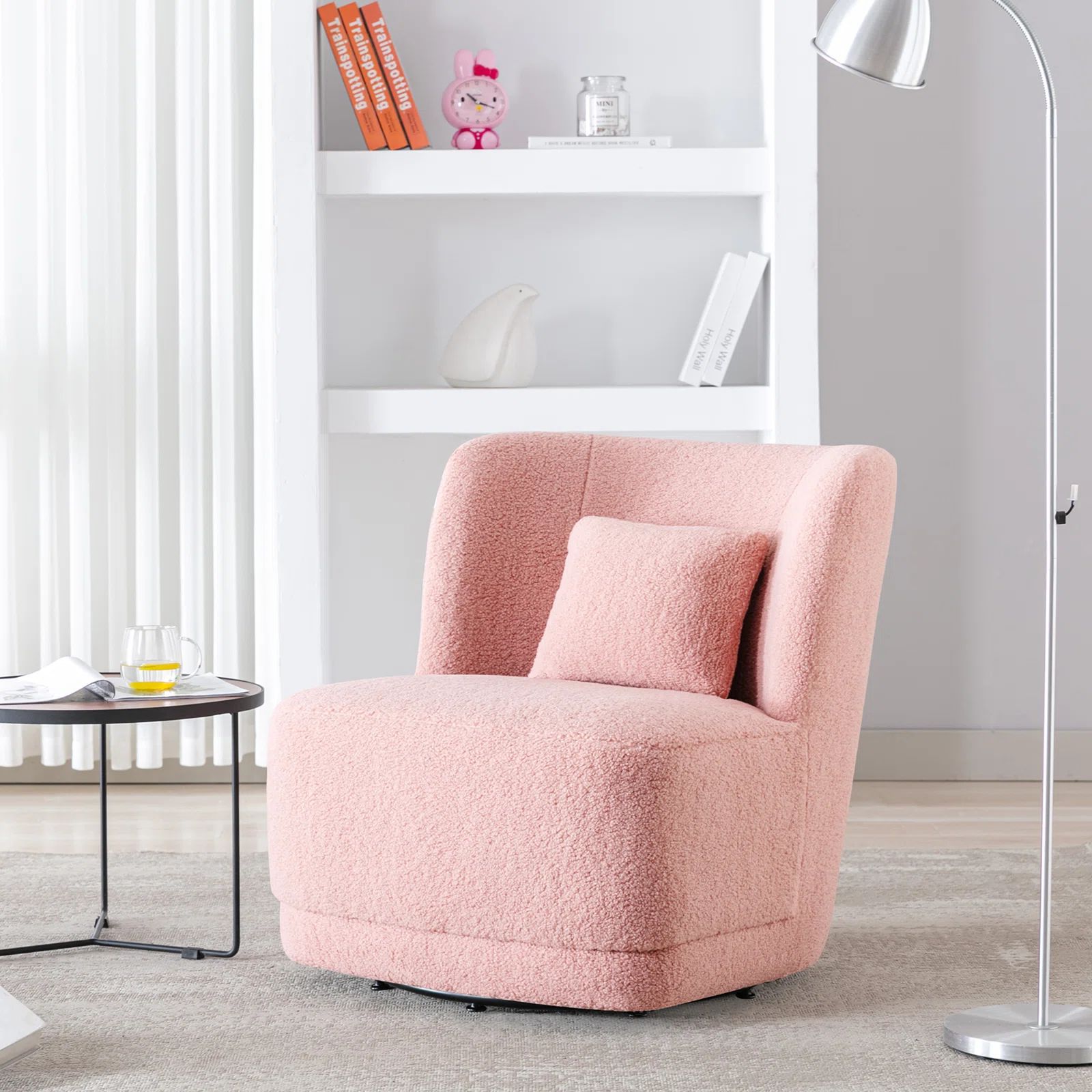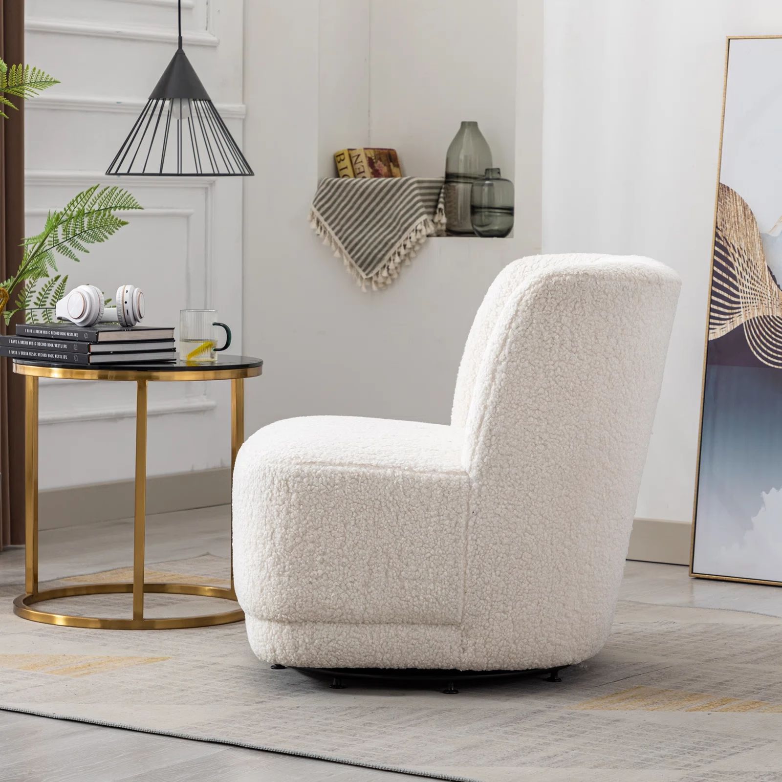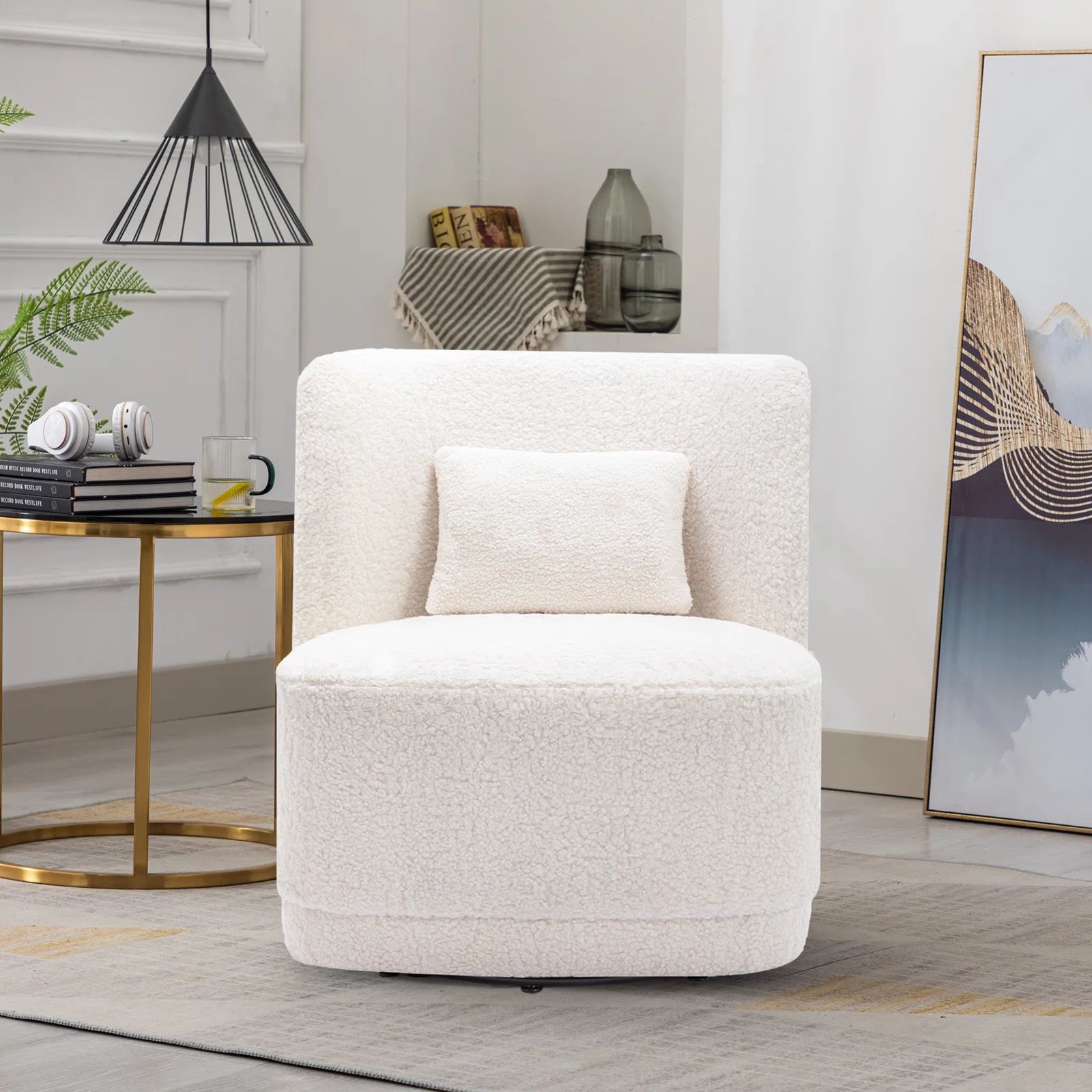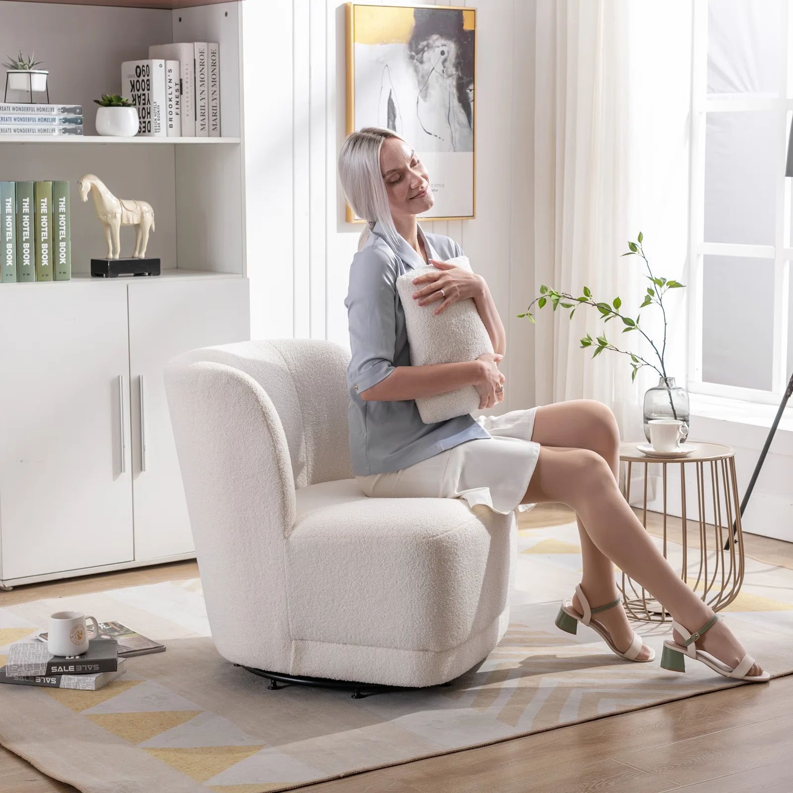 北欧轻奢羊羔绒单人沙发奶油风客厅旋转沙发酒店会所咖啡厅洽谈椅