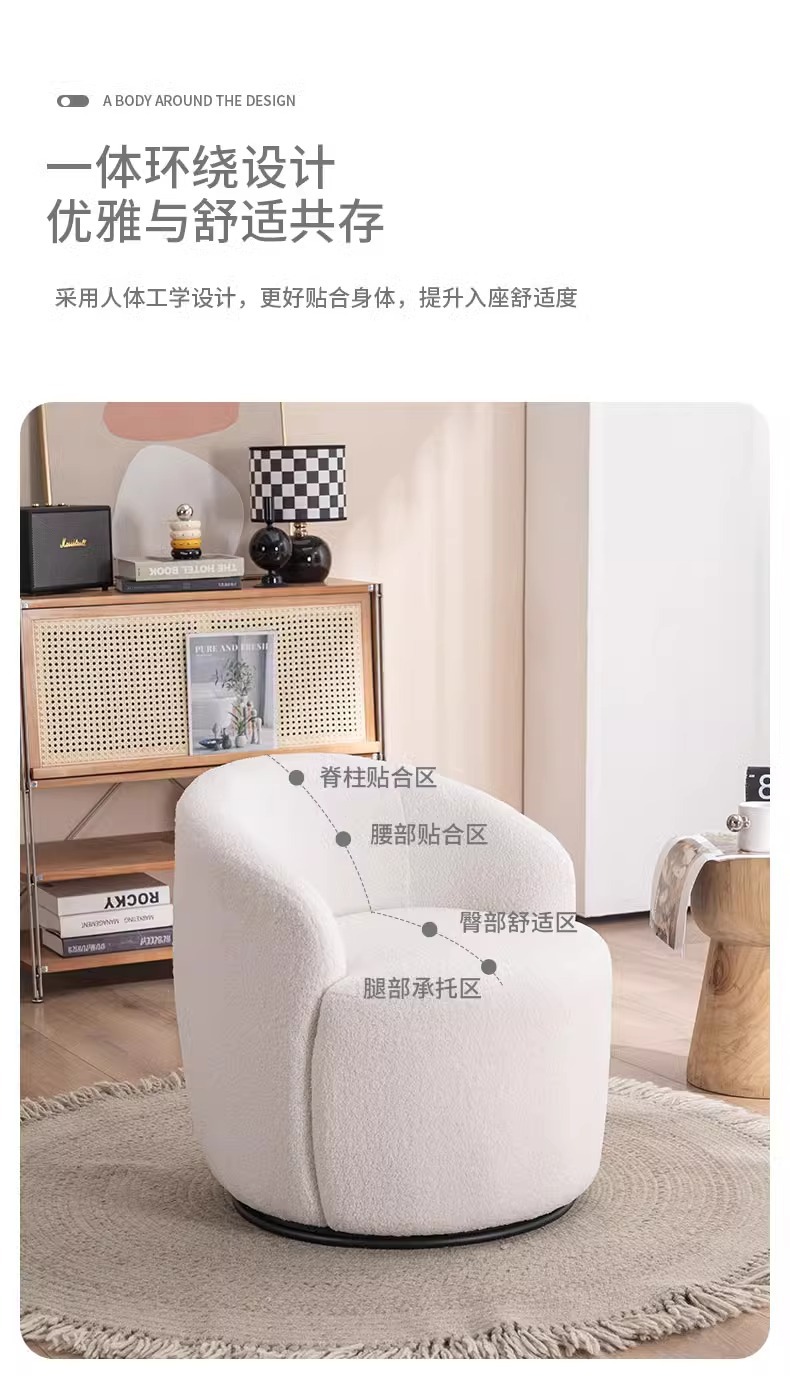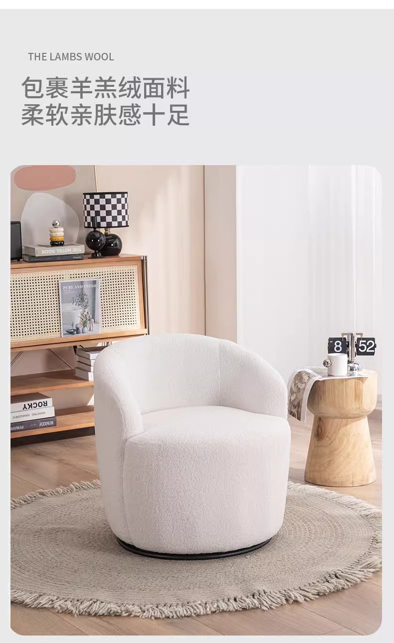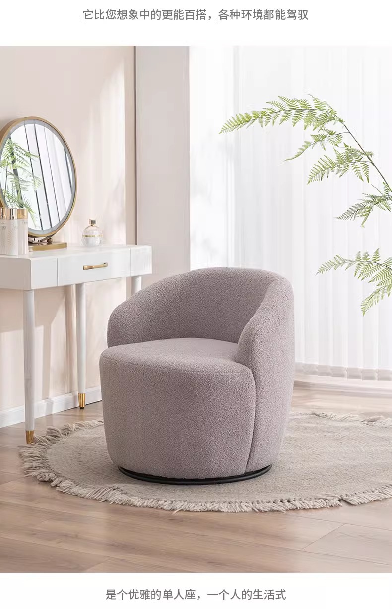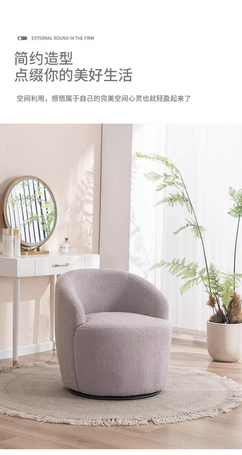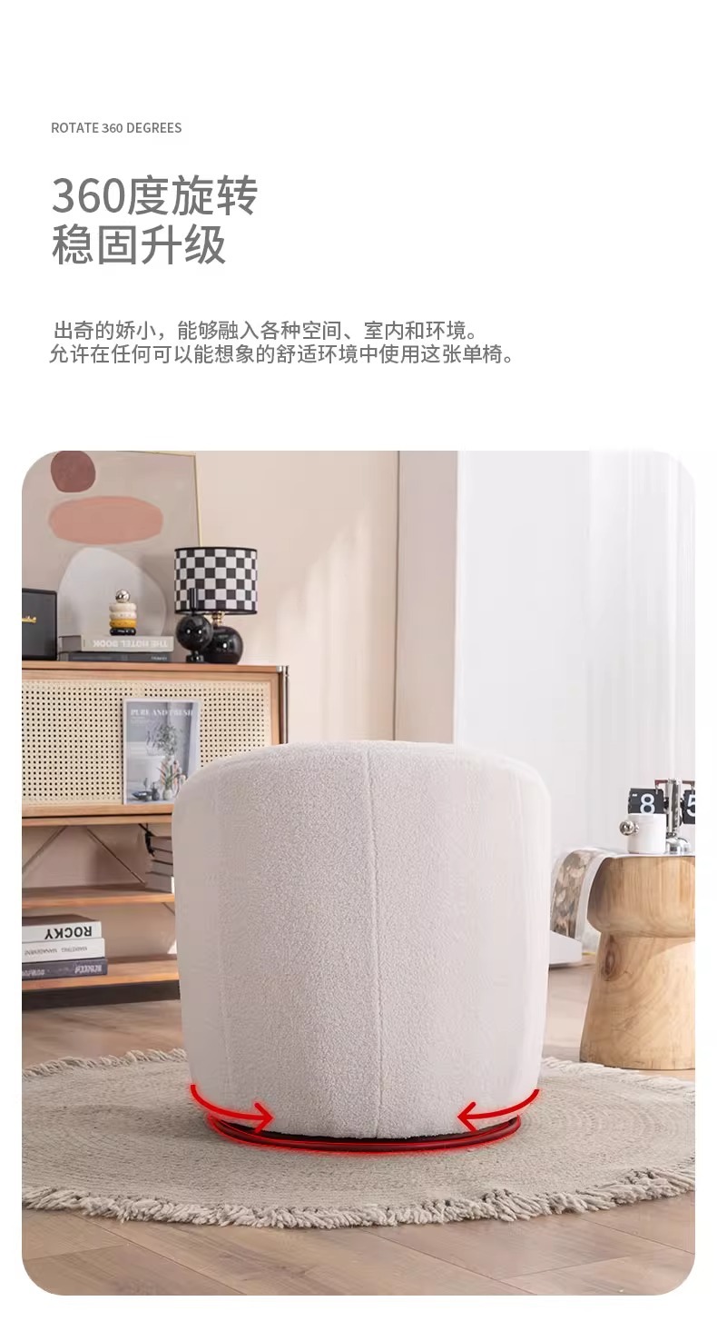 阳台布艺单人沙发休闲椅轻奢奶油风卧室化妆凳羊羔绒服装店沙发