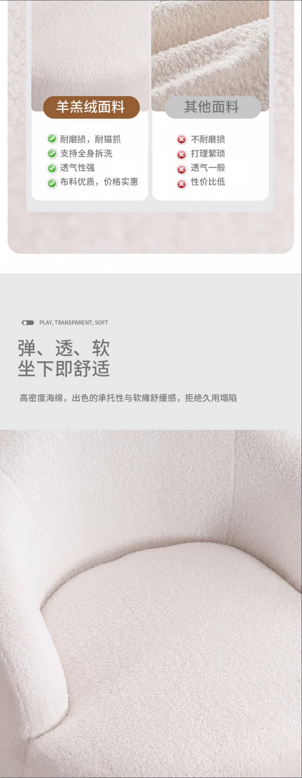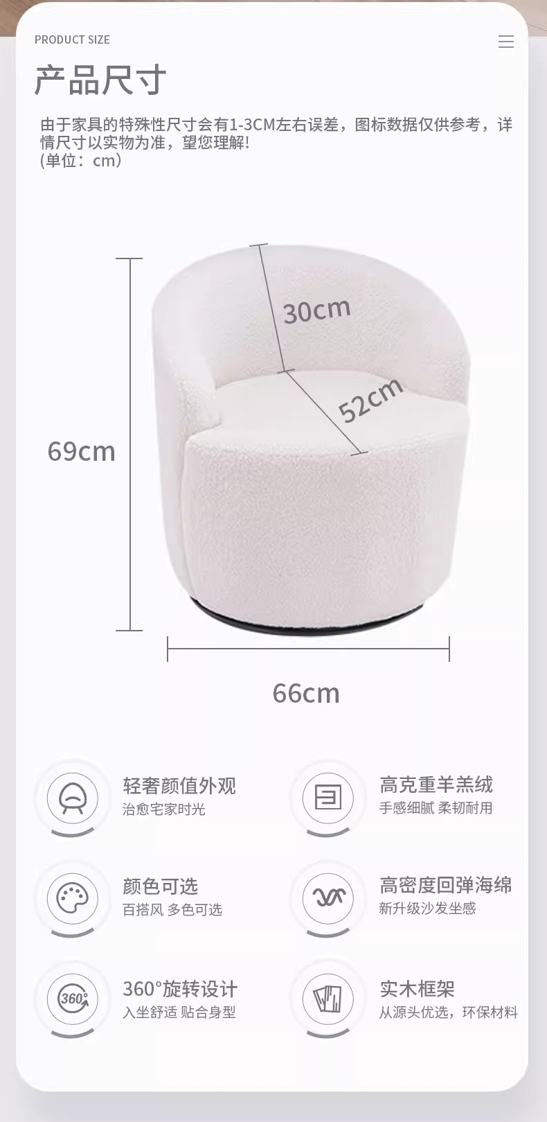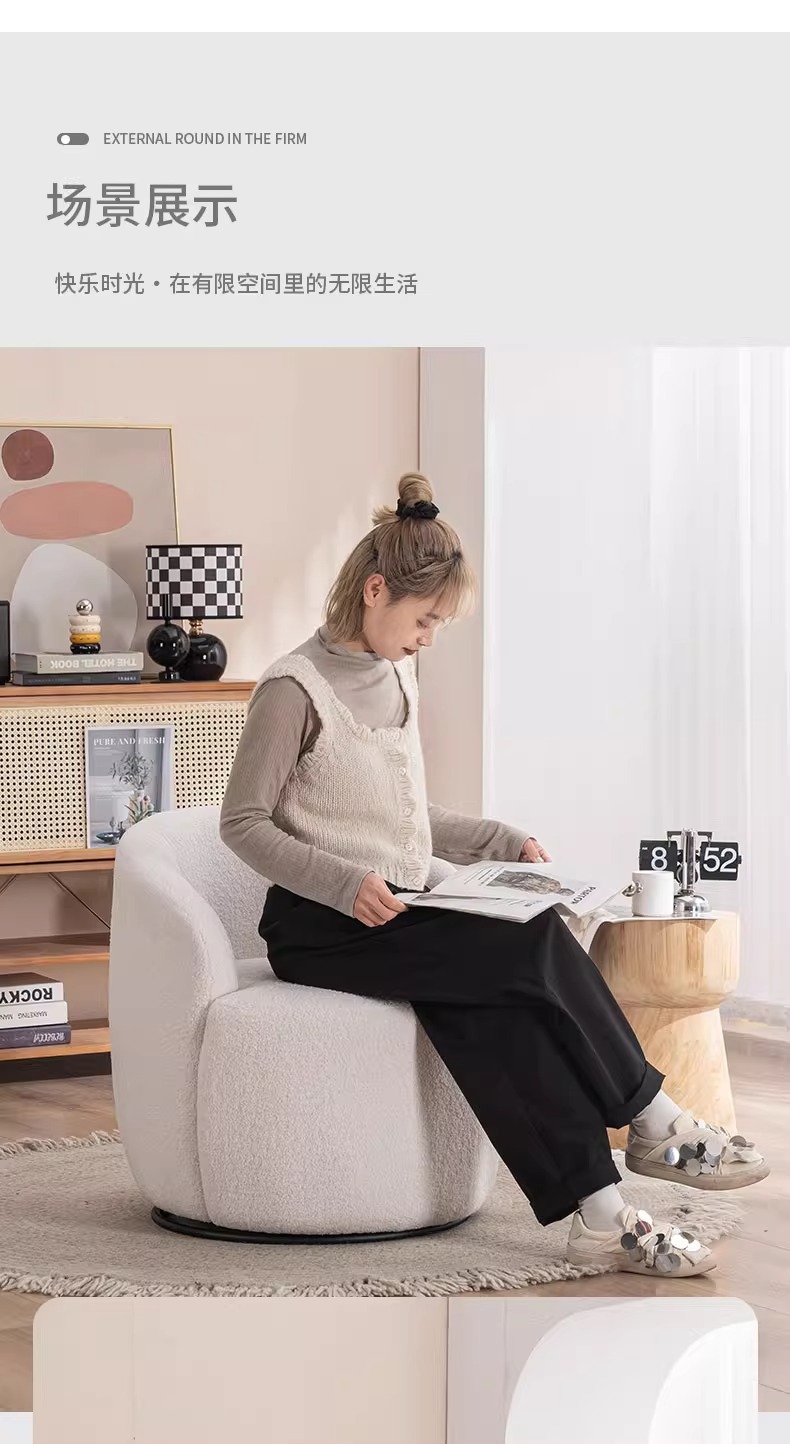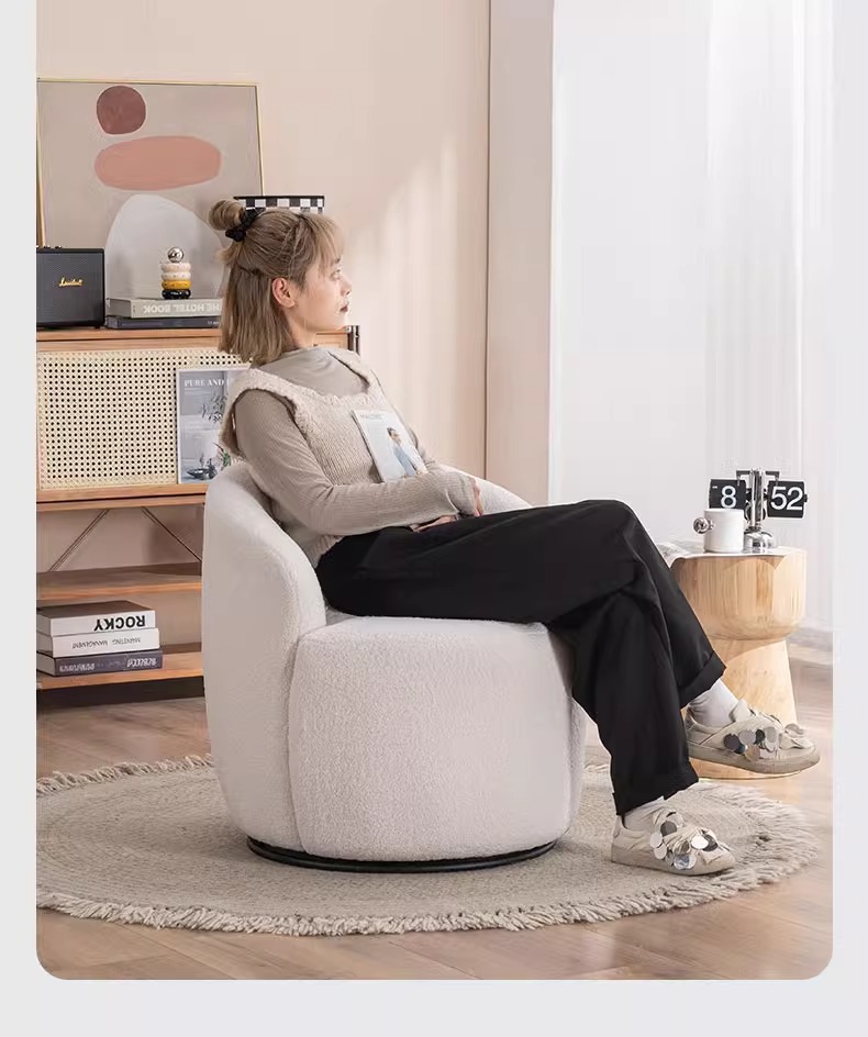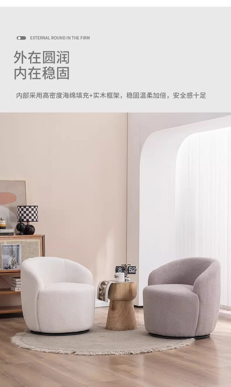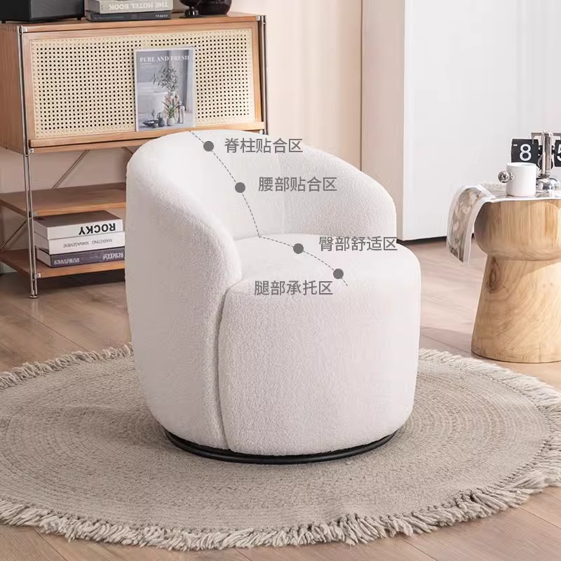 阳台布艺单人沙发休闲椅轻奢奶油风卧室化妆凳羊羔绒服装店沙发