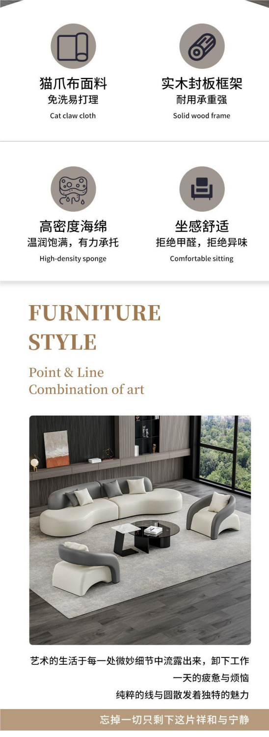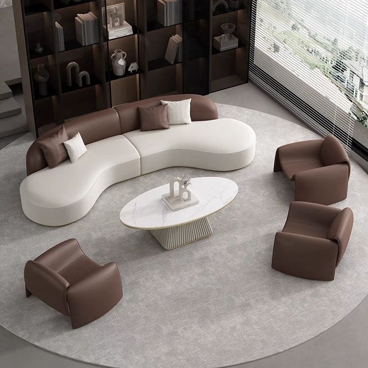 商务接待室洽谈会客区沙发休息区三人位办公室茶几皮艺组合