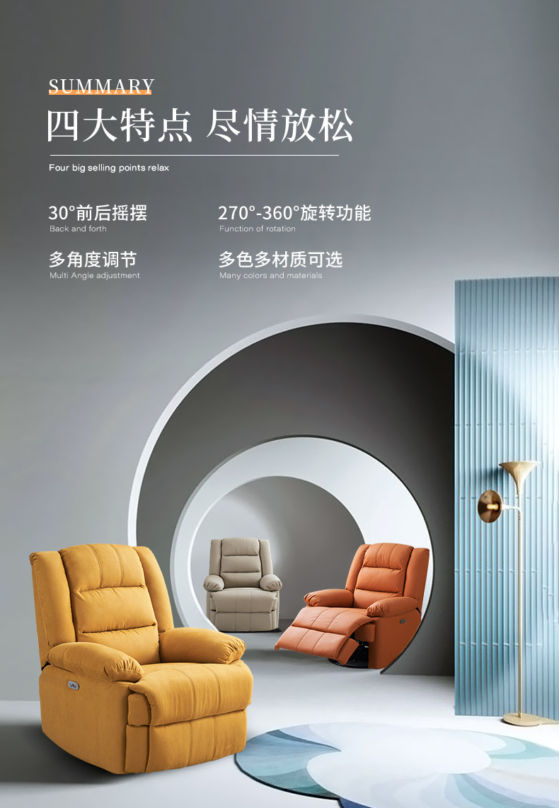 跨境单人多功能懒人太空沙发椅旋转客厅电动单人沙发摇椅可躺