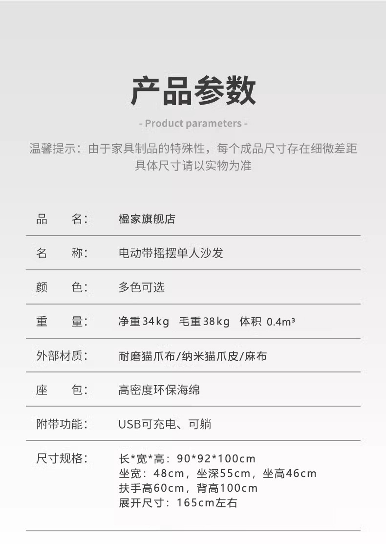 | electric sitting and lying + usb (without shaking + rotating)(电动坐躺+USB(不带摇+转)) | USD $186.97 | 194 piece available |