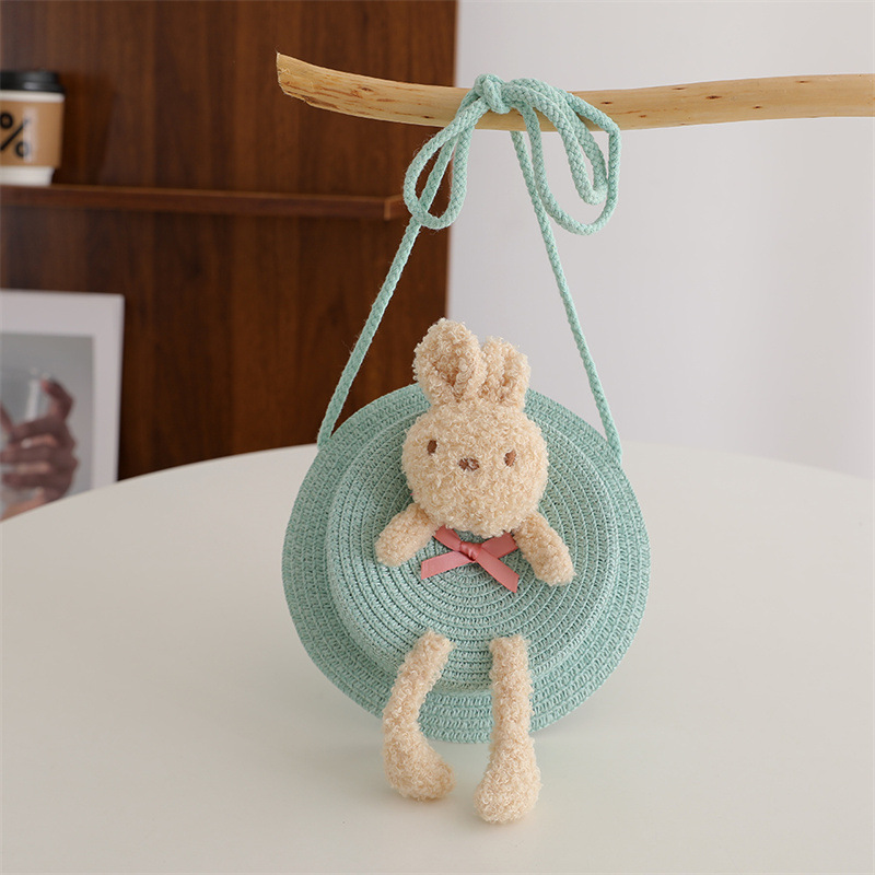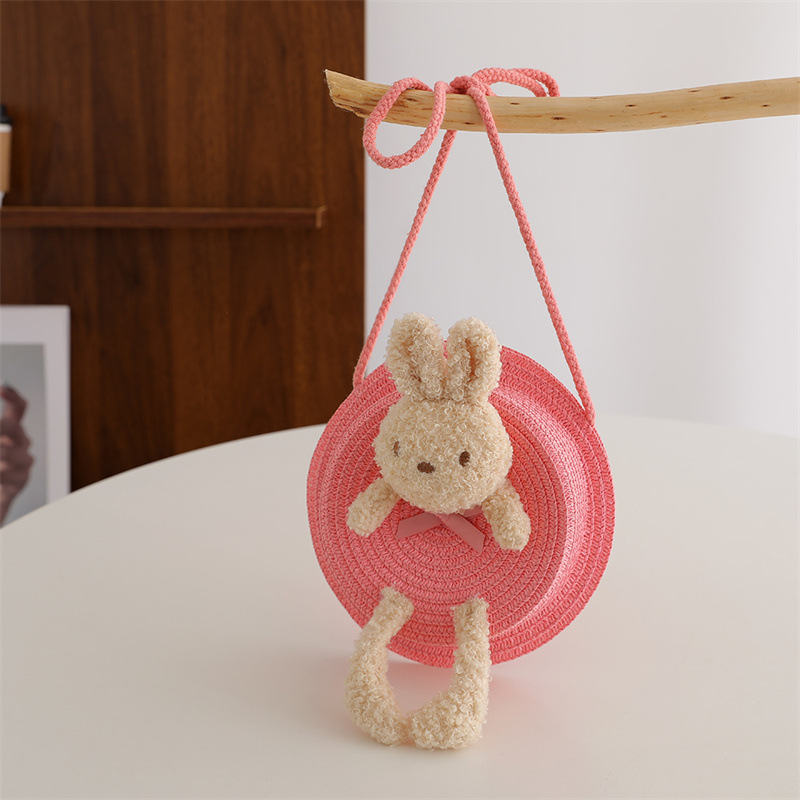 夏季儿童草编包淑女兔子鱼斜挎小包包2024新款卡通可爱零钱包批发