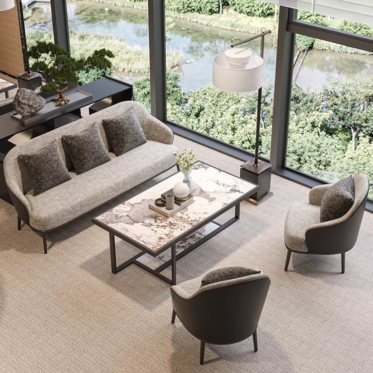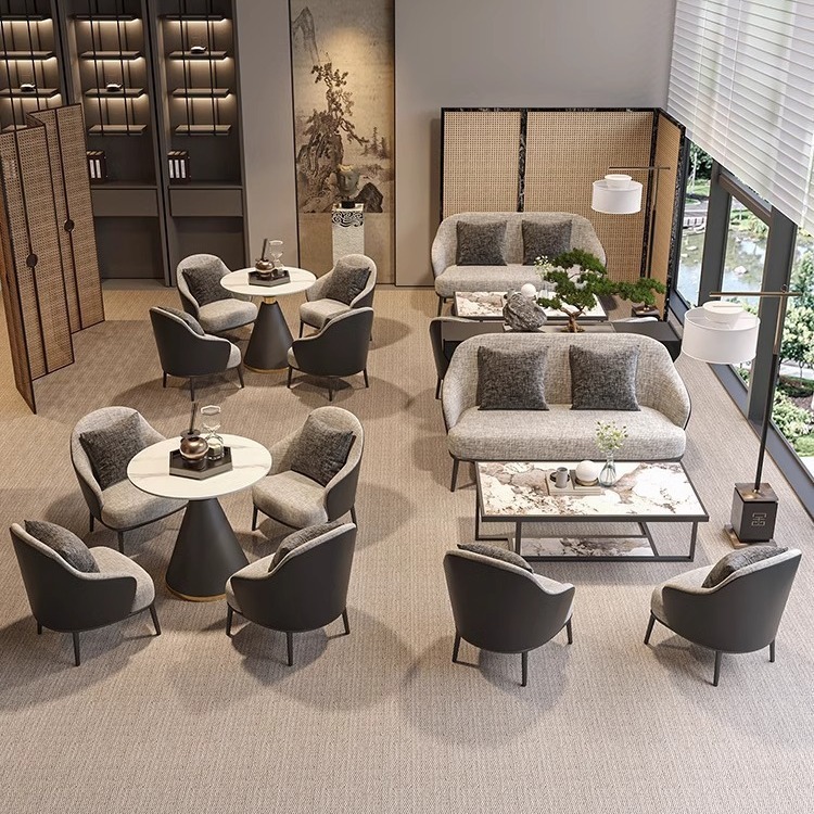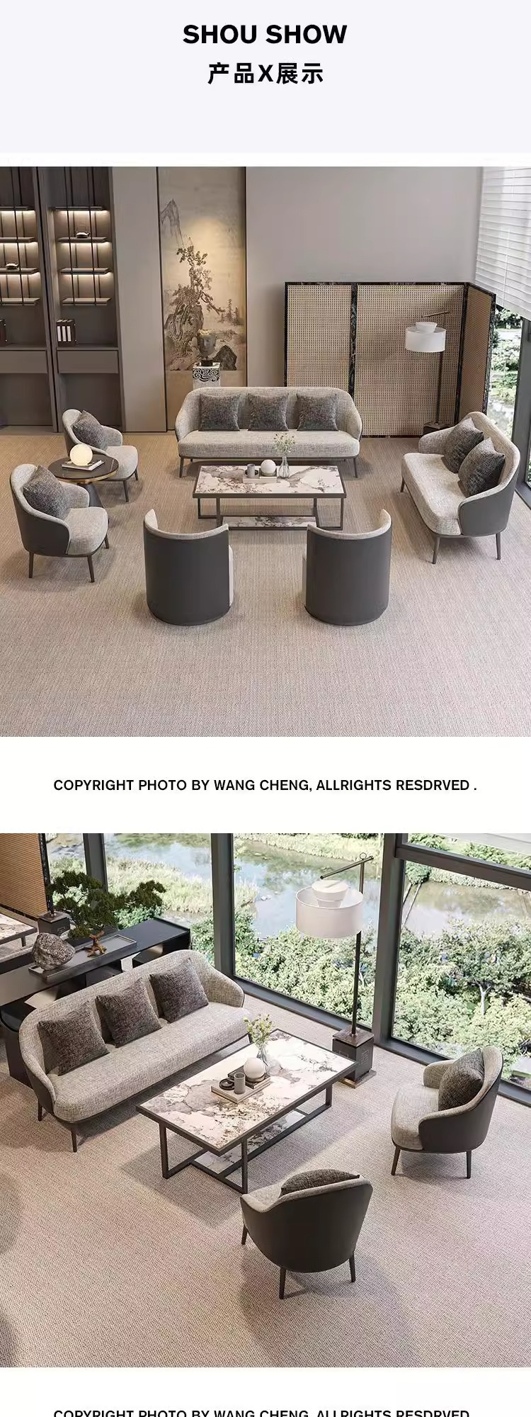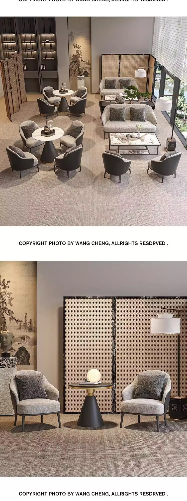 新中式休闲沙发椅三件套酒店民宿客房沙发茶几组合轻奢一桌2椅