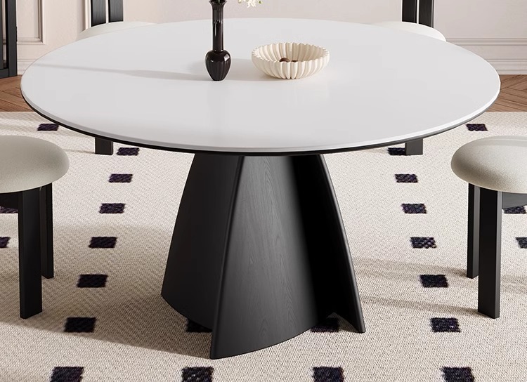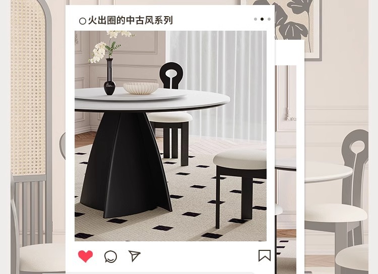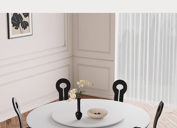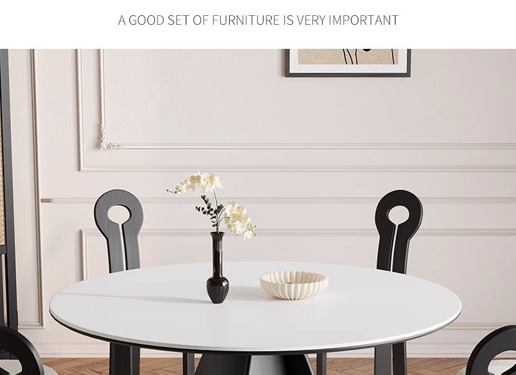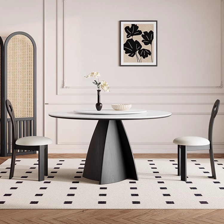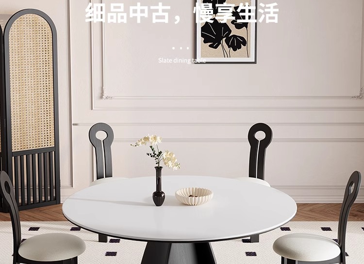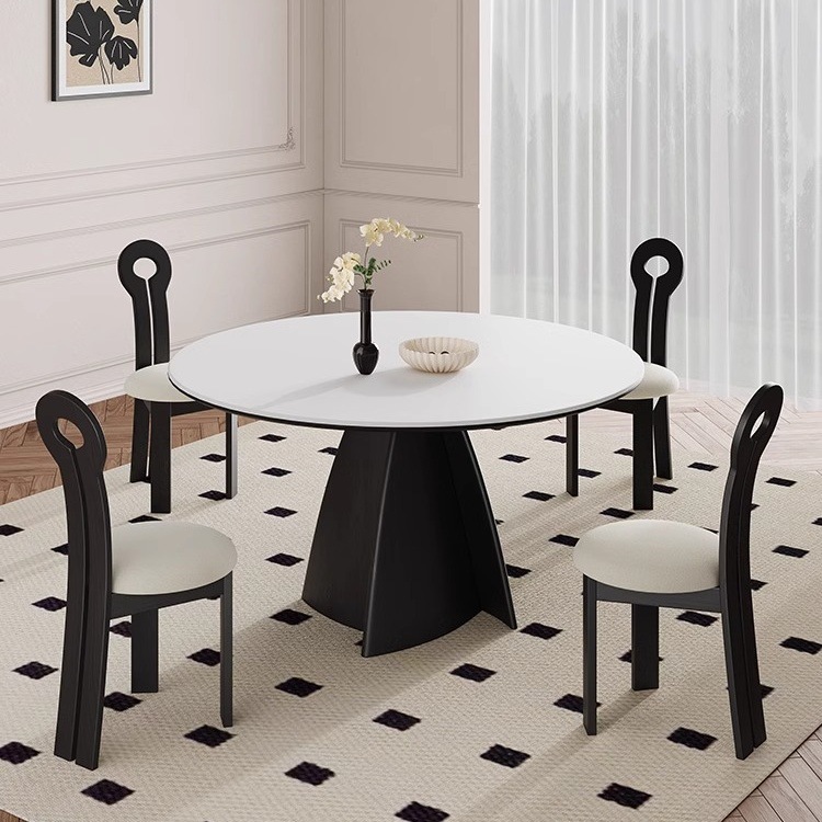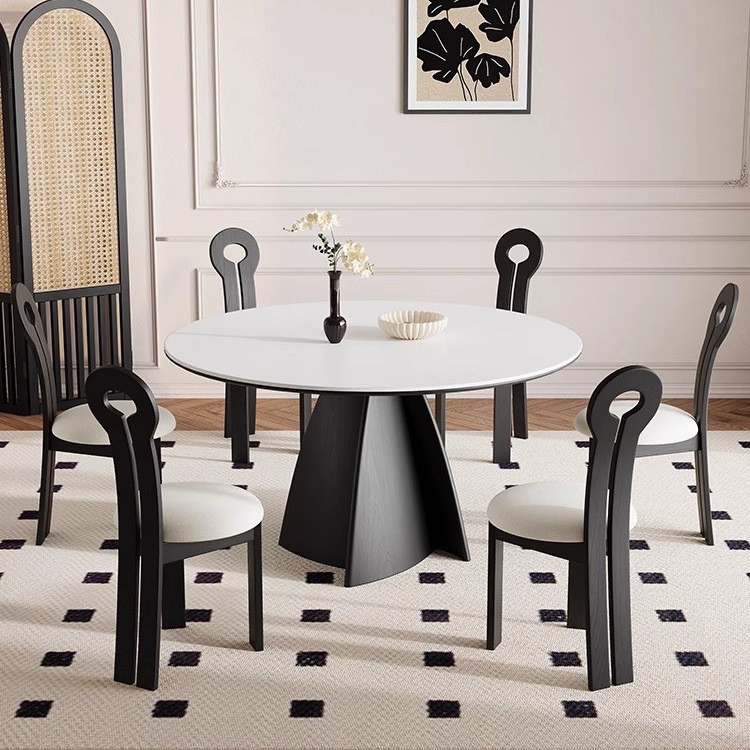 法式中古风圆形实木餐桌2024新款黑色美式家用小户型网红现代简约