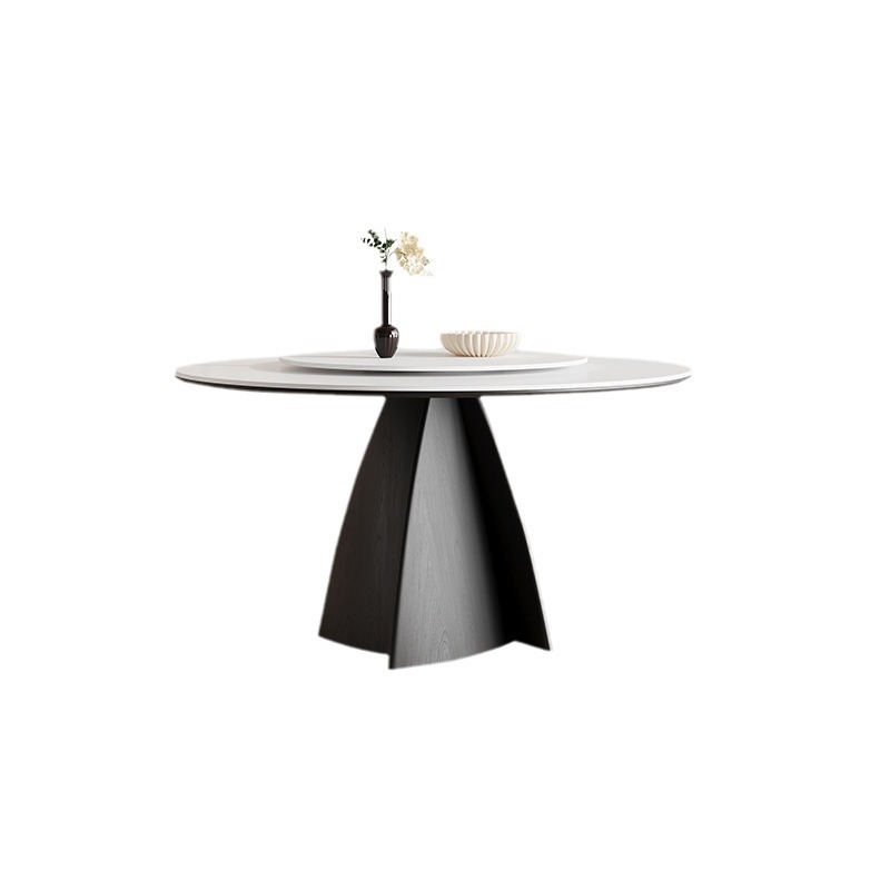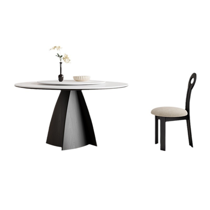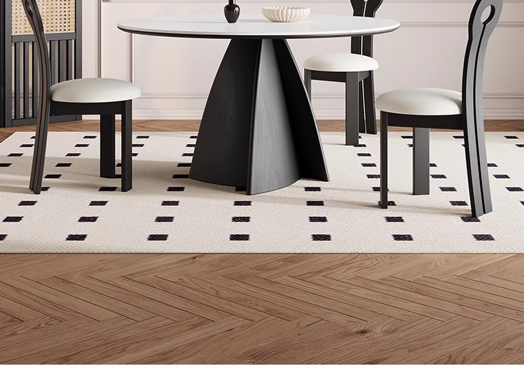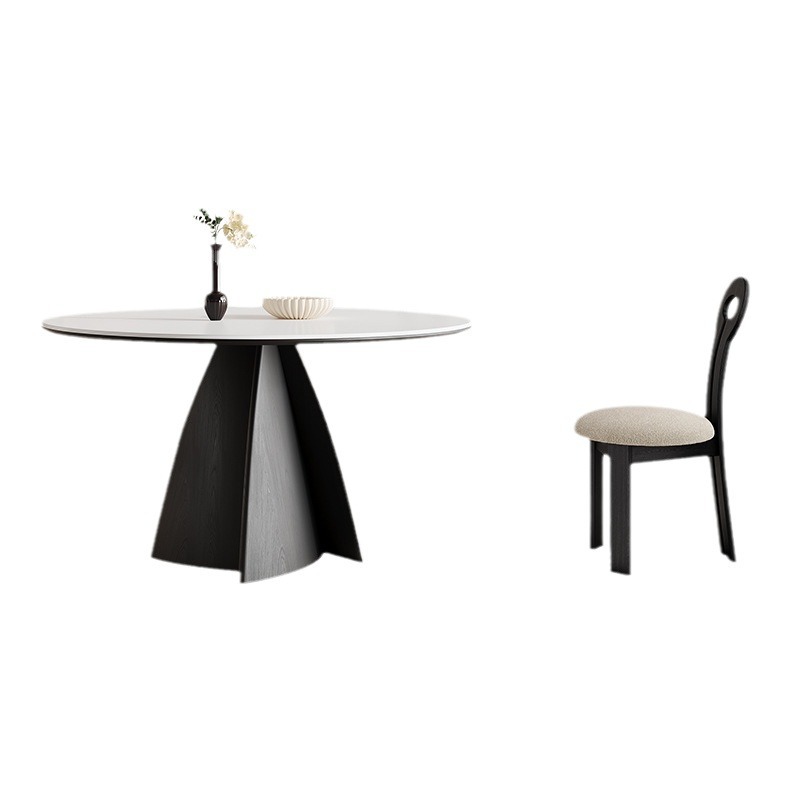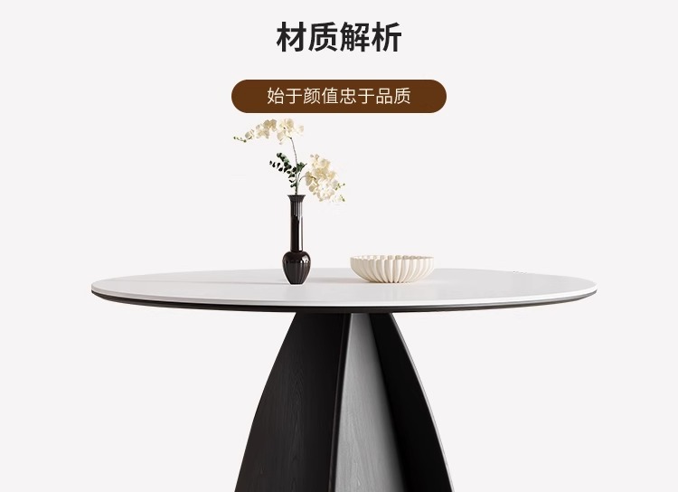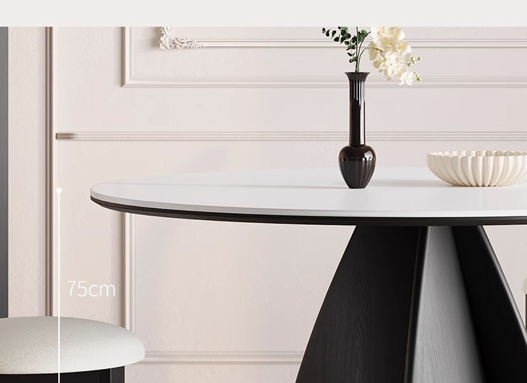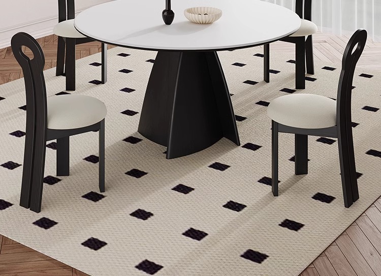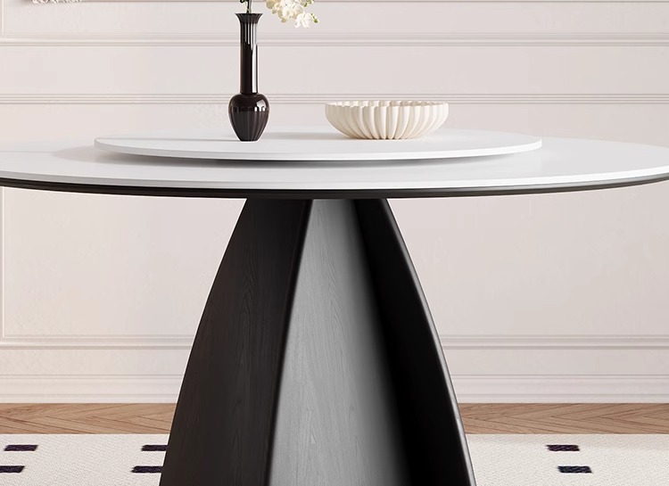法式中古风圆形实木餐桌2024新款黑色美式家用小户型网红现代简约