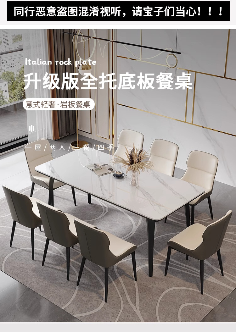 餐桌岩板轻奢餐桌椅意式家用小户型现代简约长方形饭桌依诺岩板
