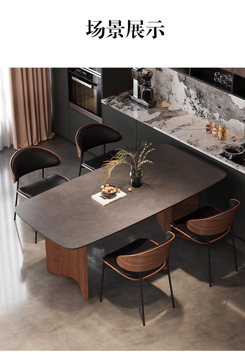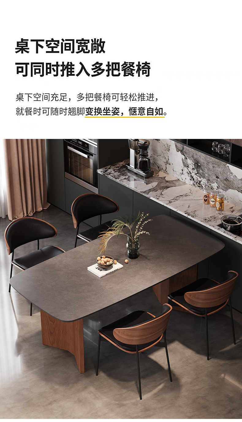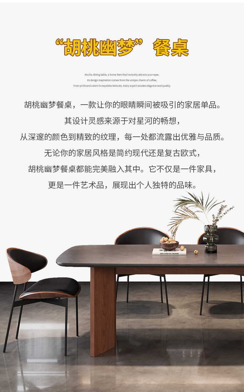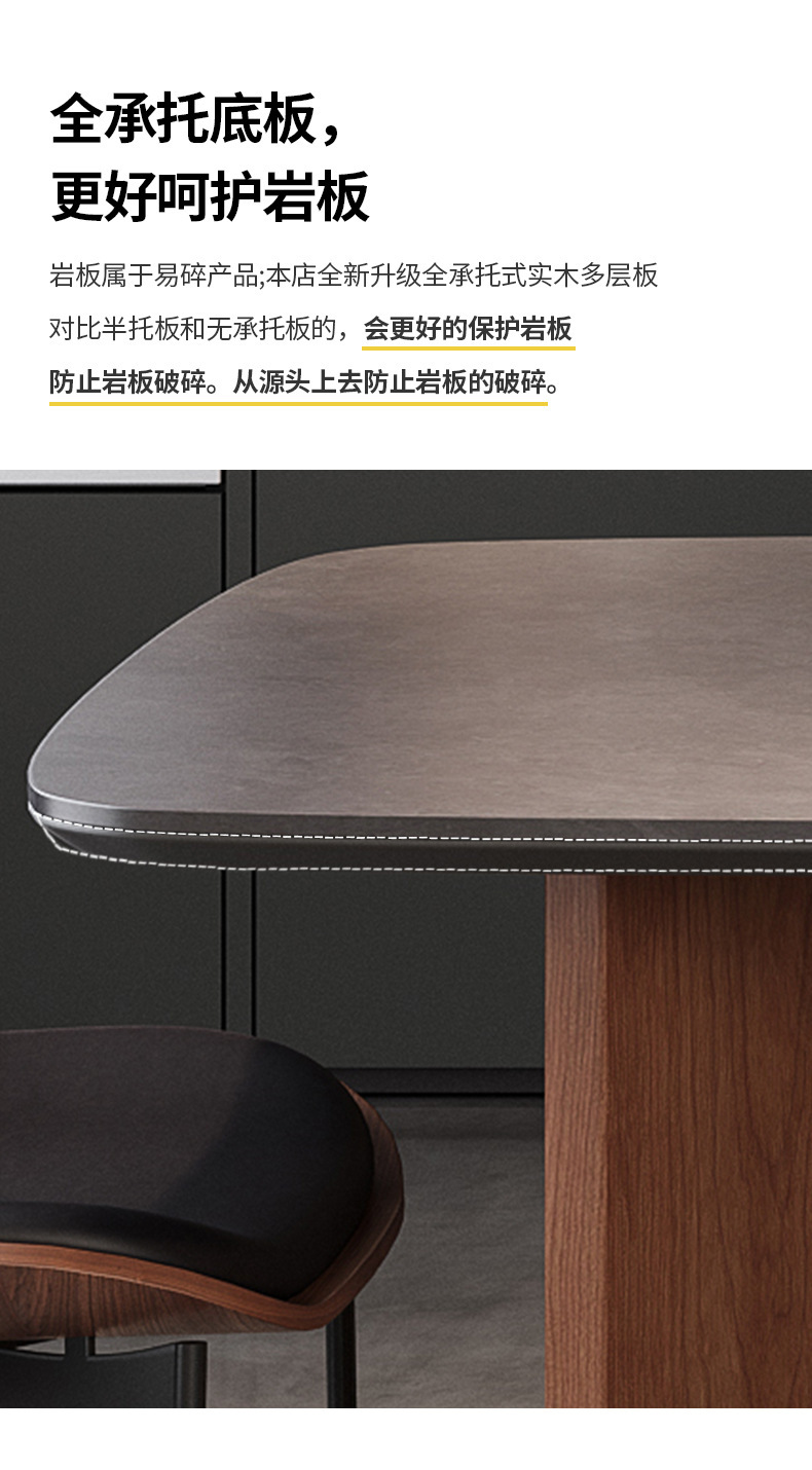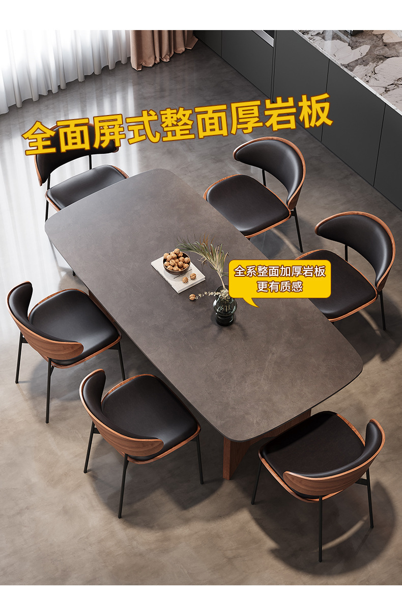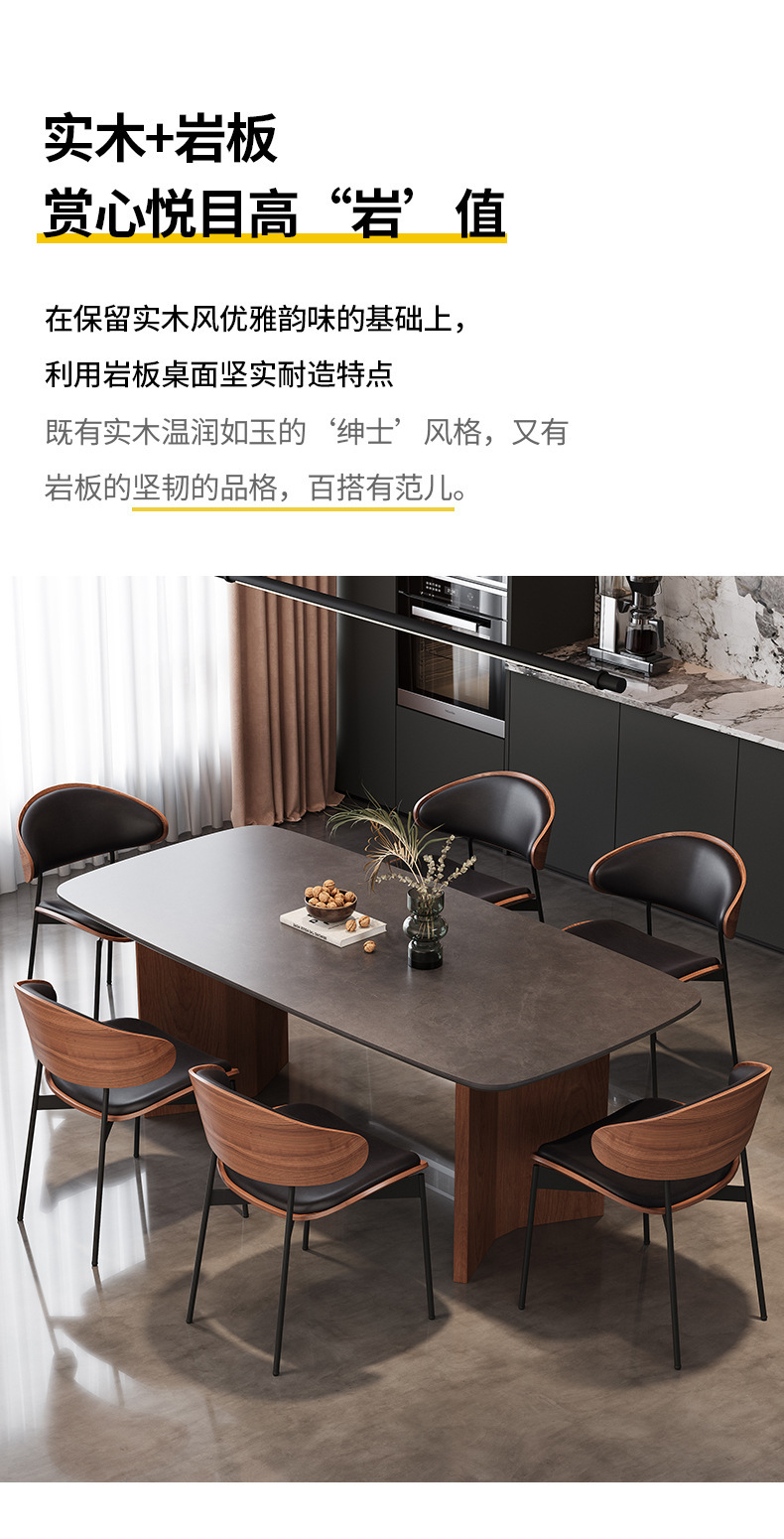 法式复古胡桃木色实木岩板餐桌客厅家用轻奢现代简约意式黑色饭桌
