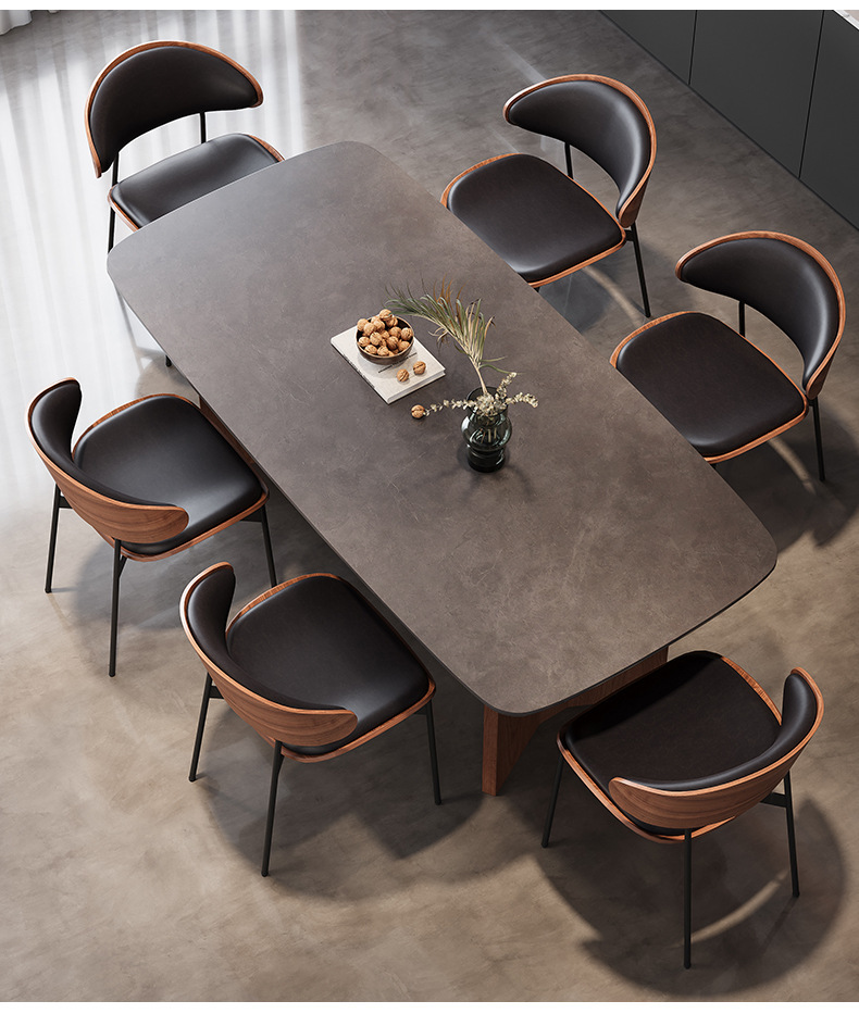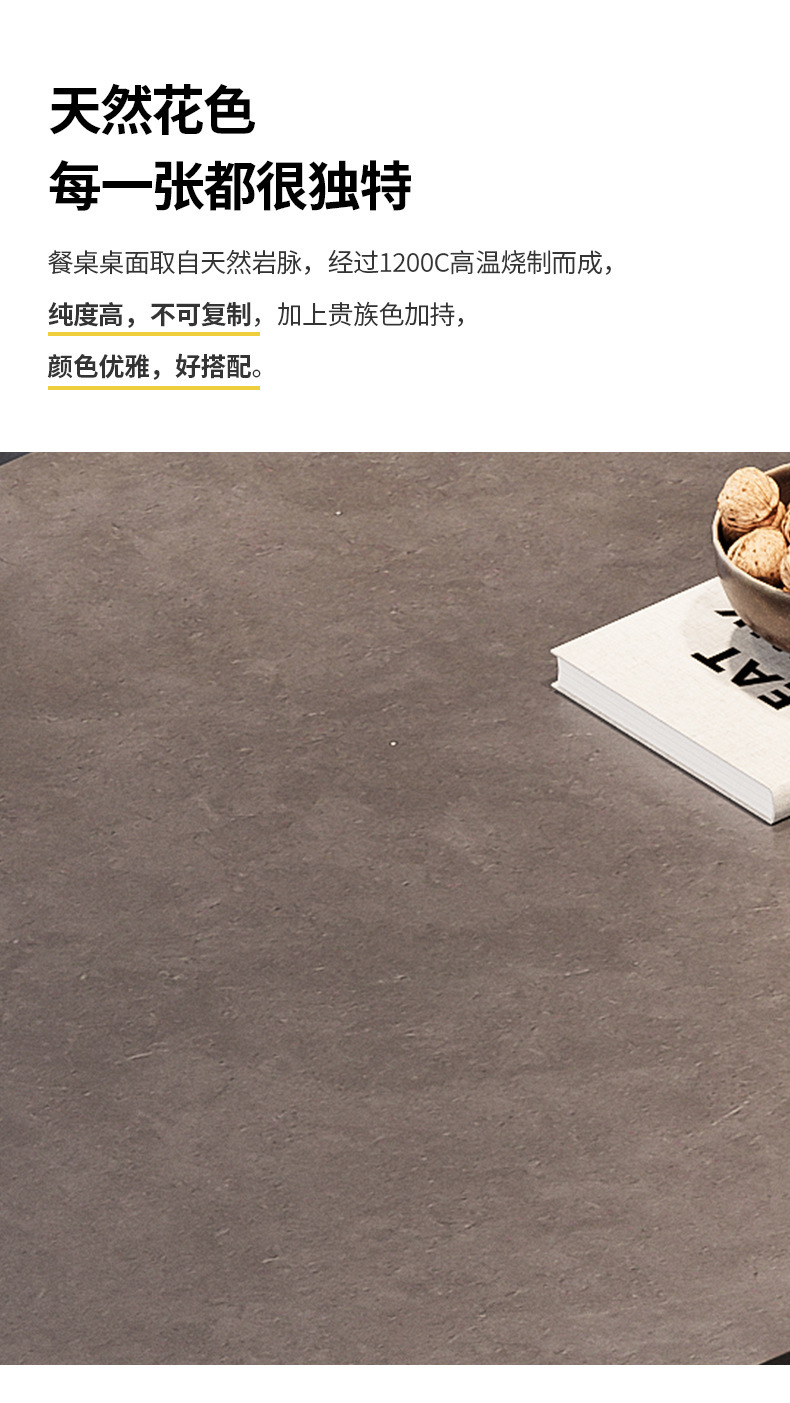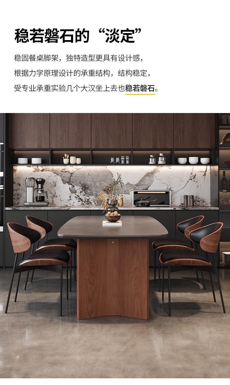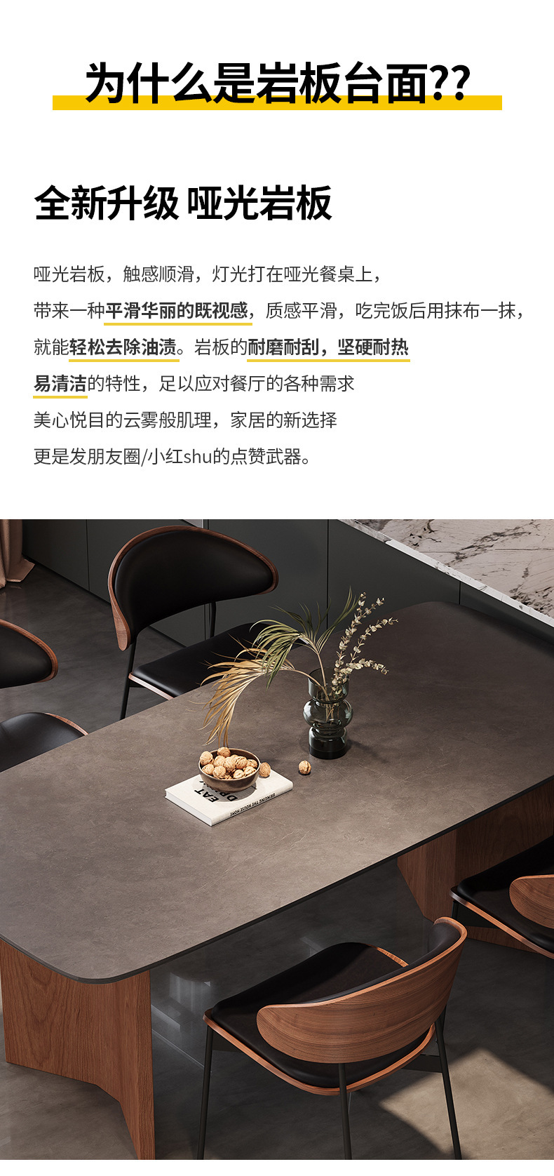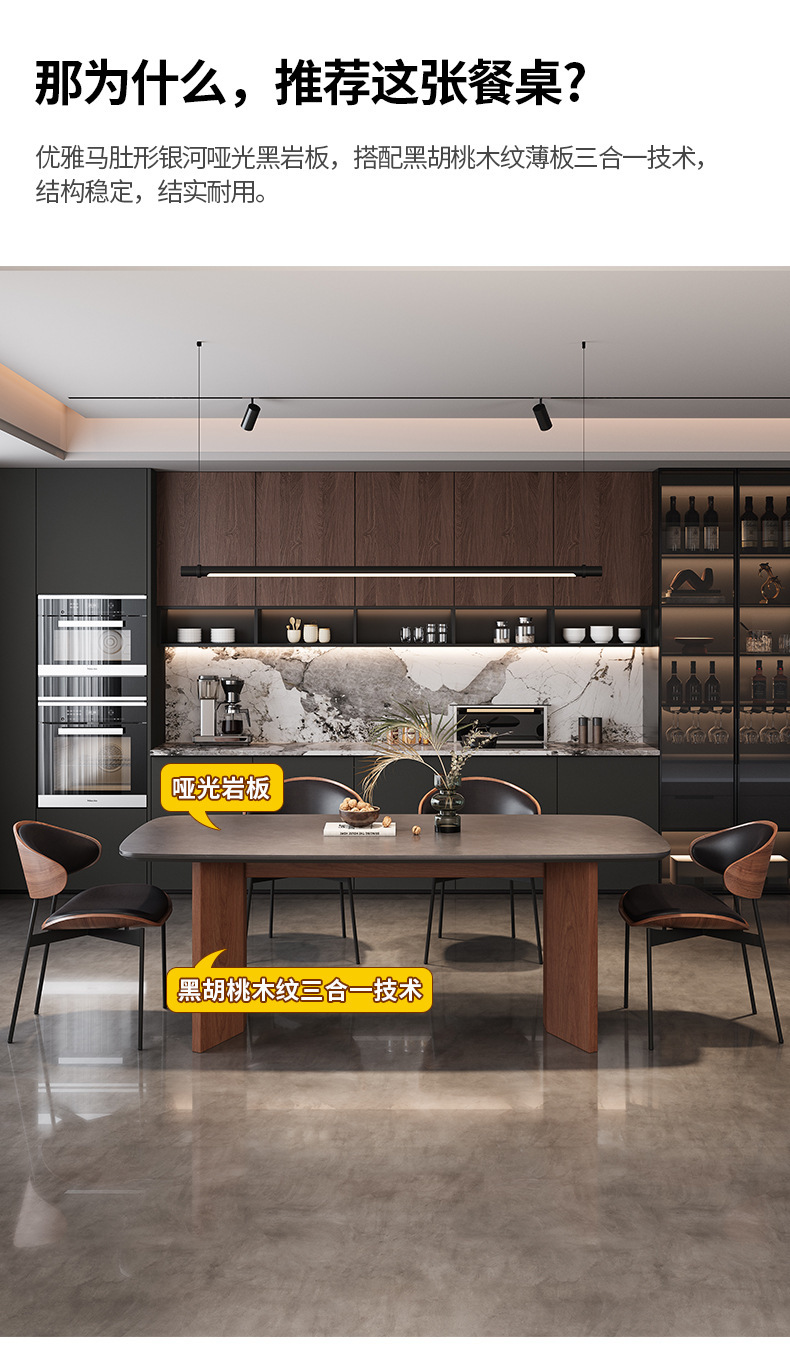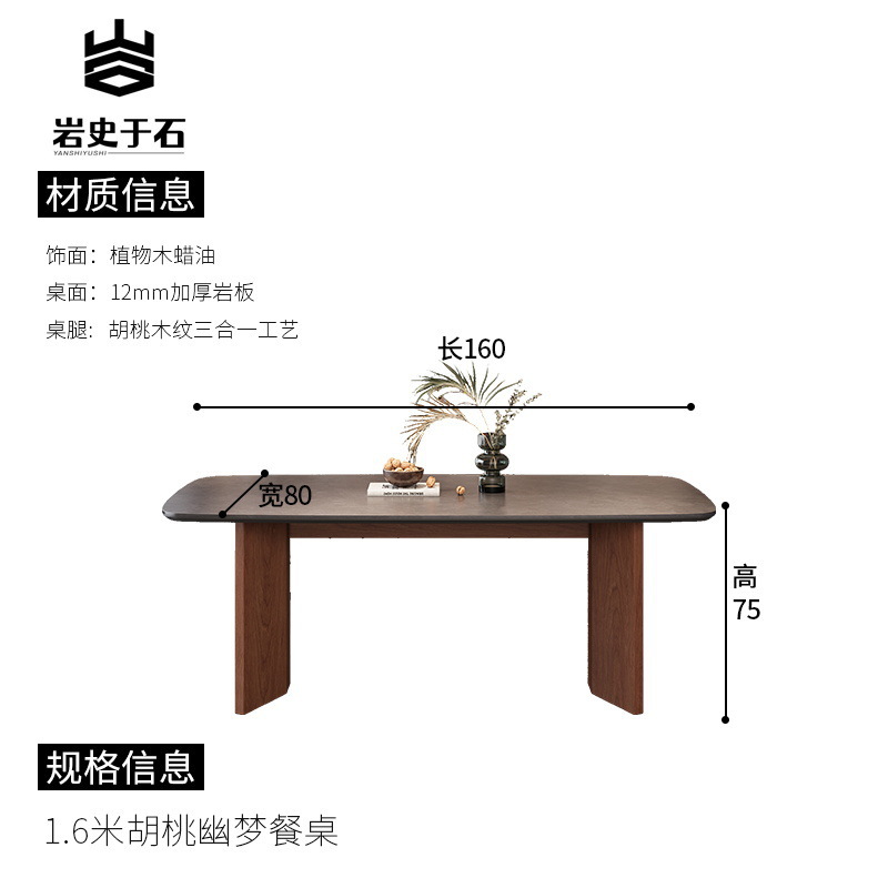 法式复古胡桃木色实木岩板餐桌客厅家用轻奢现代简约意式黑色饭桌