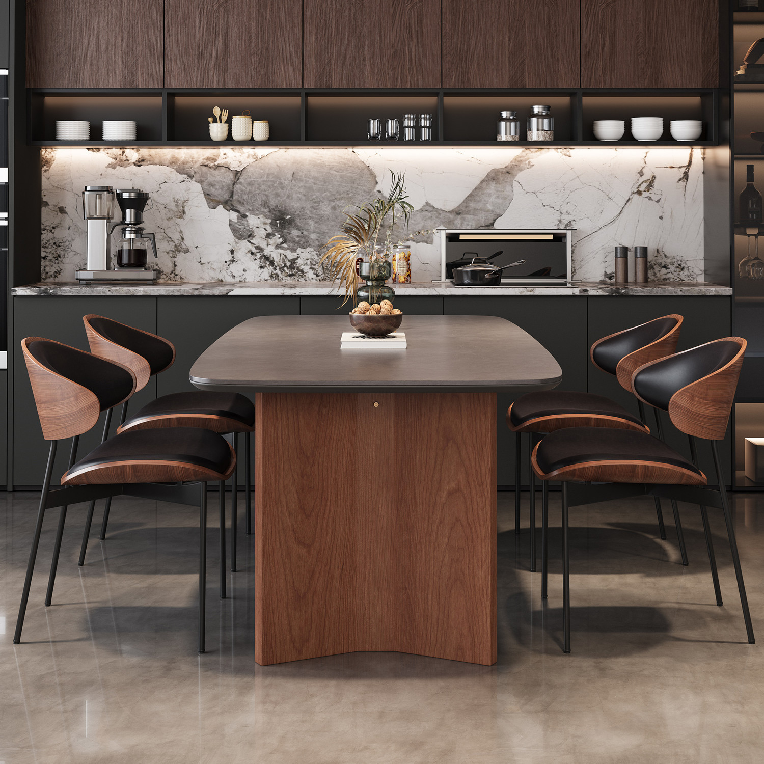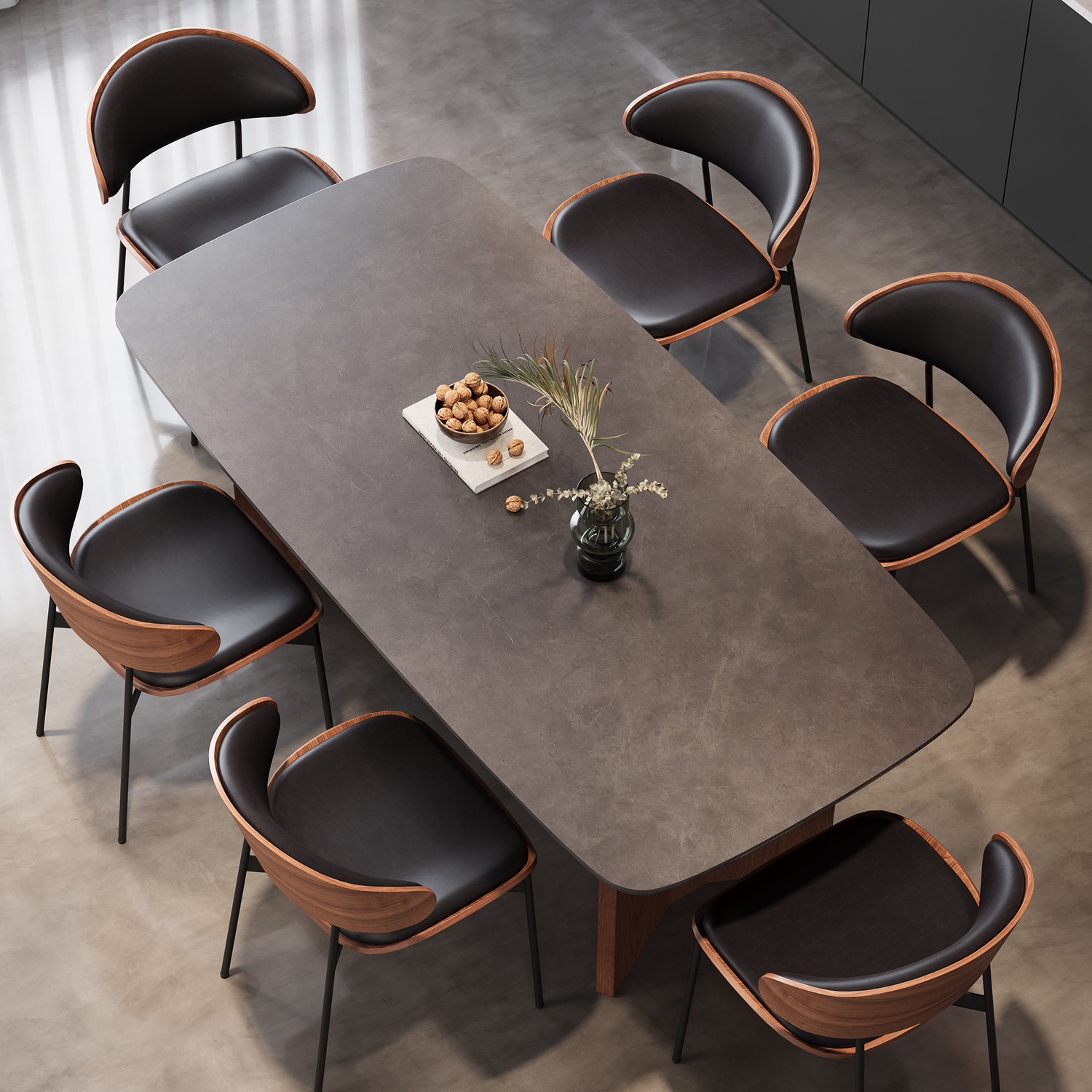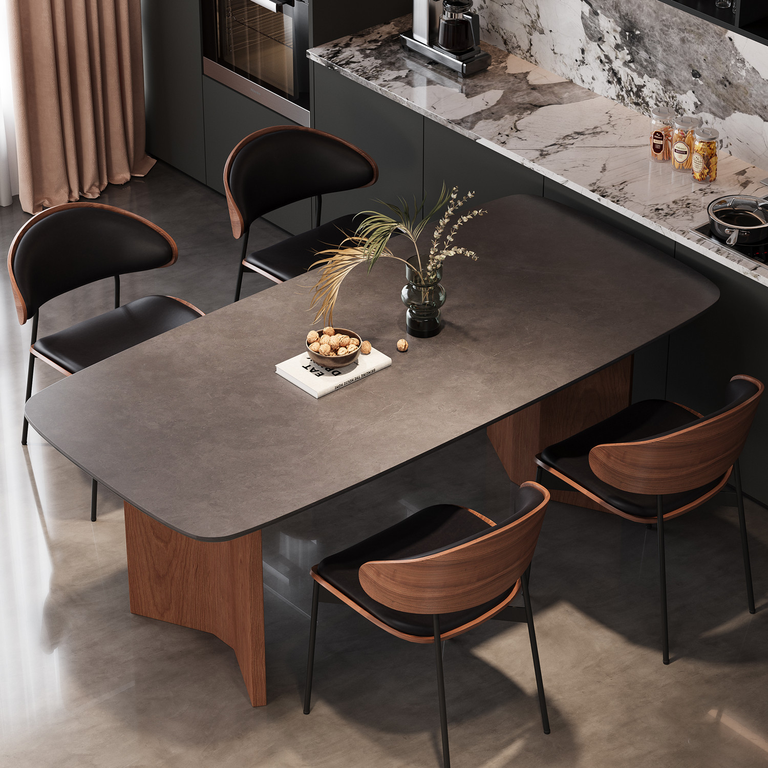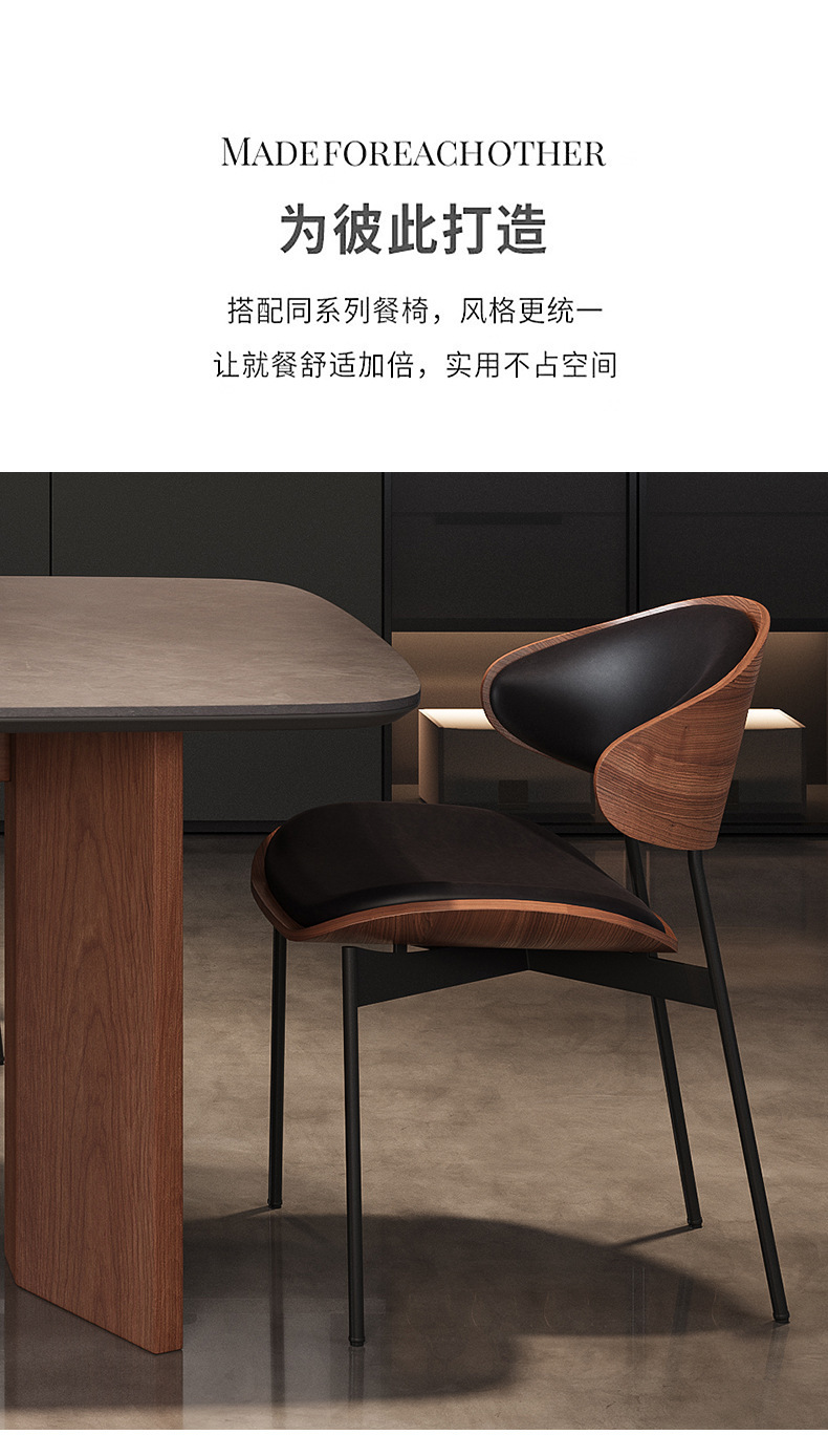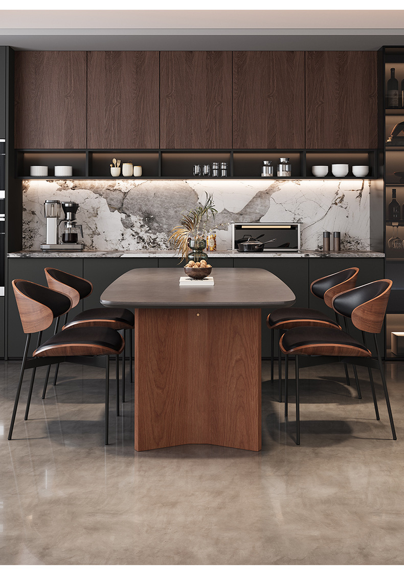 法式复古胡桃木色实木岩板餐桌客厅家用轻奢现代简约意式黑色饭桌