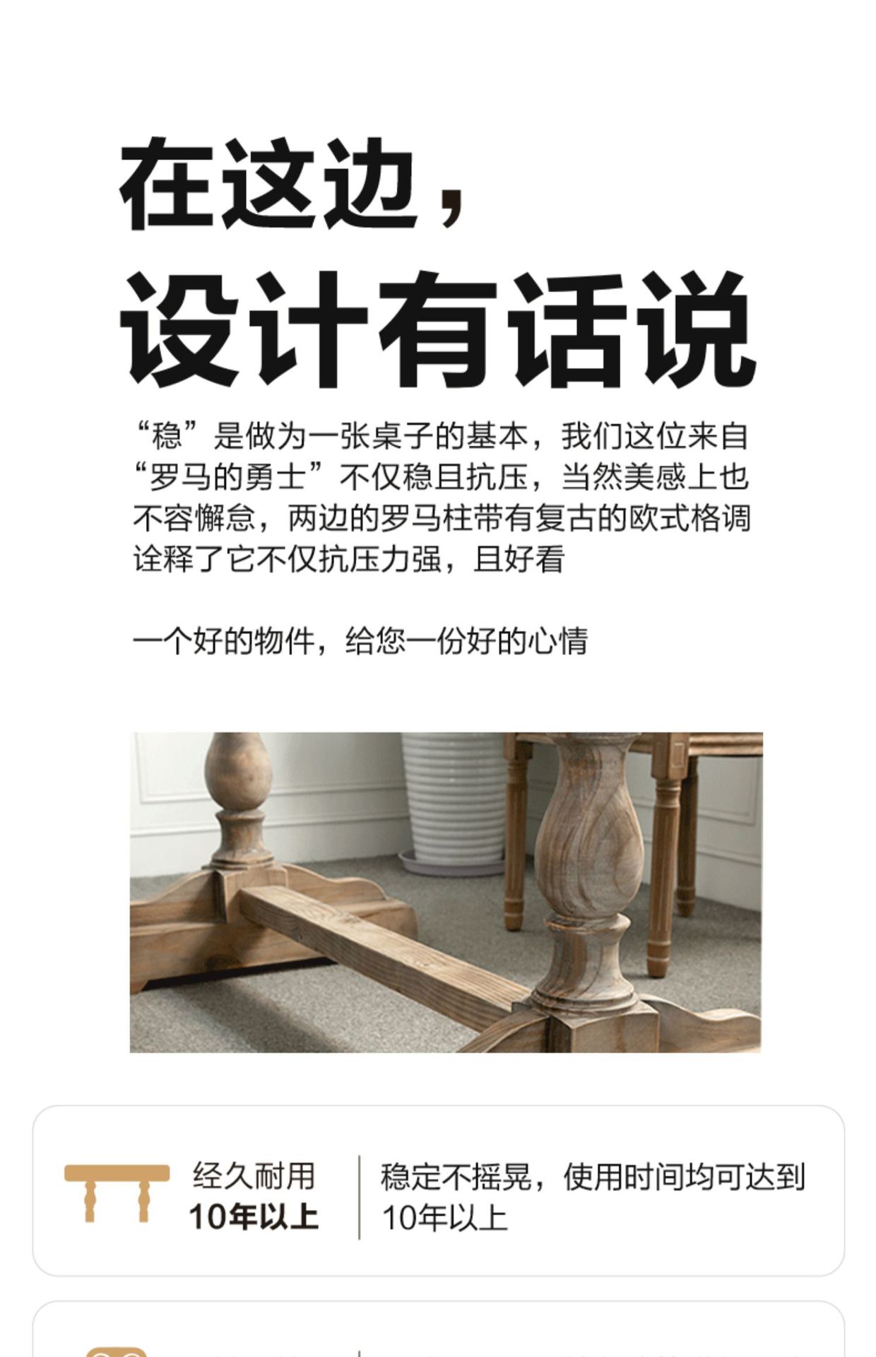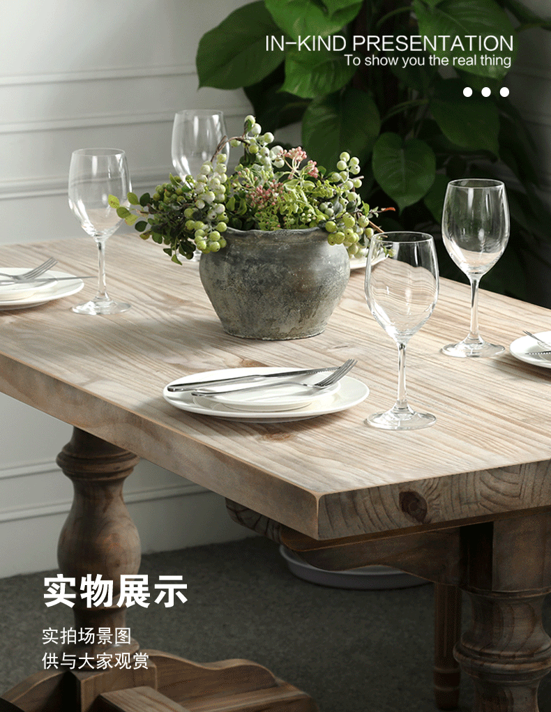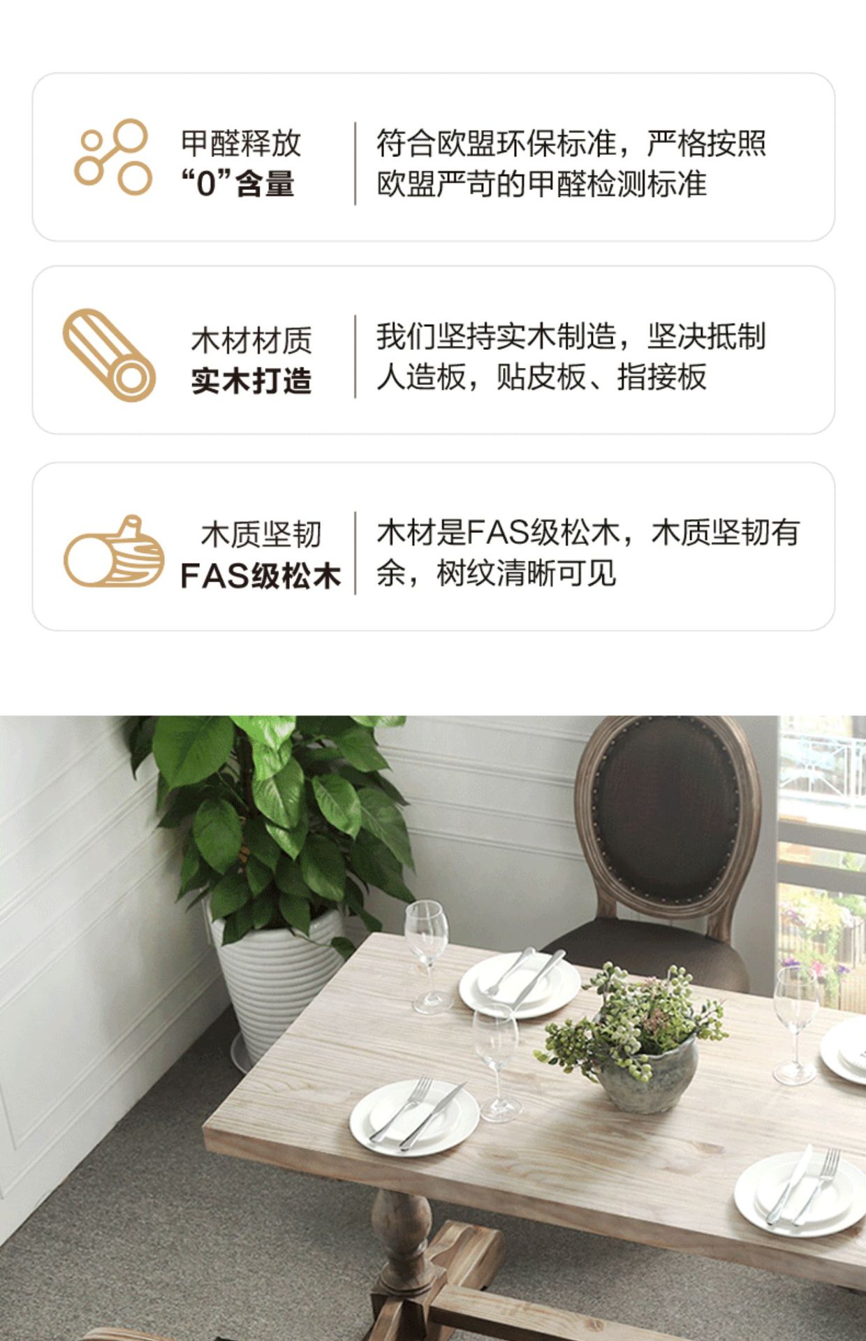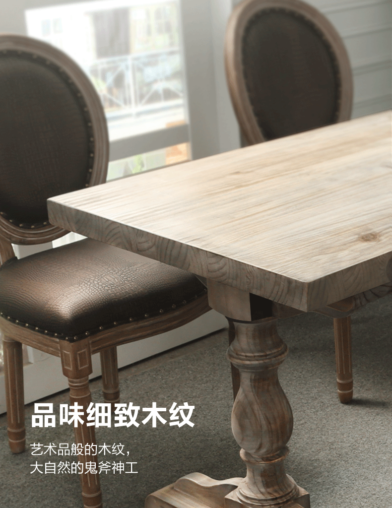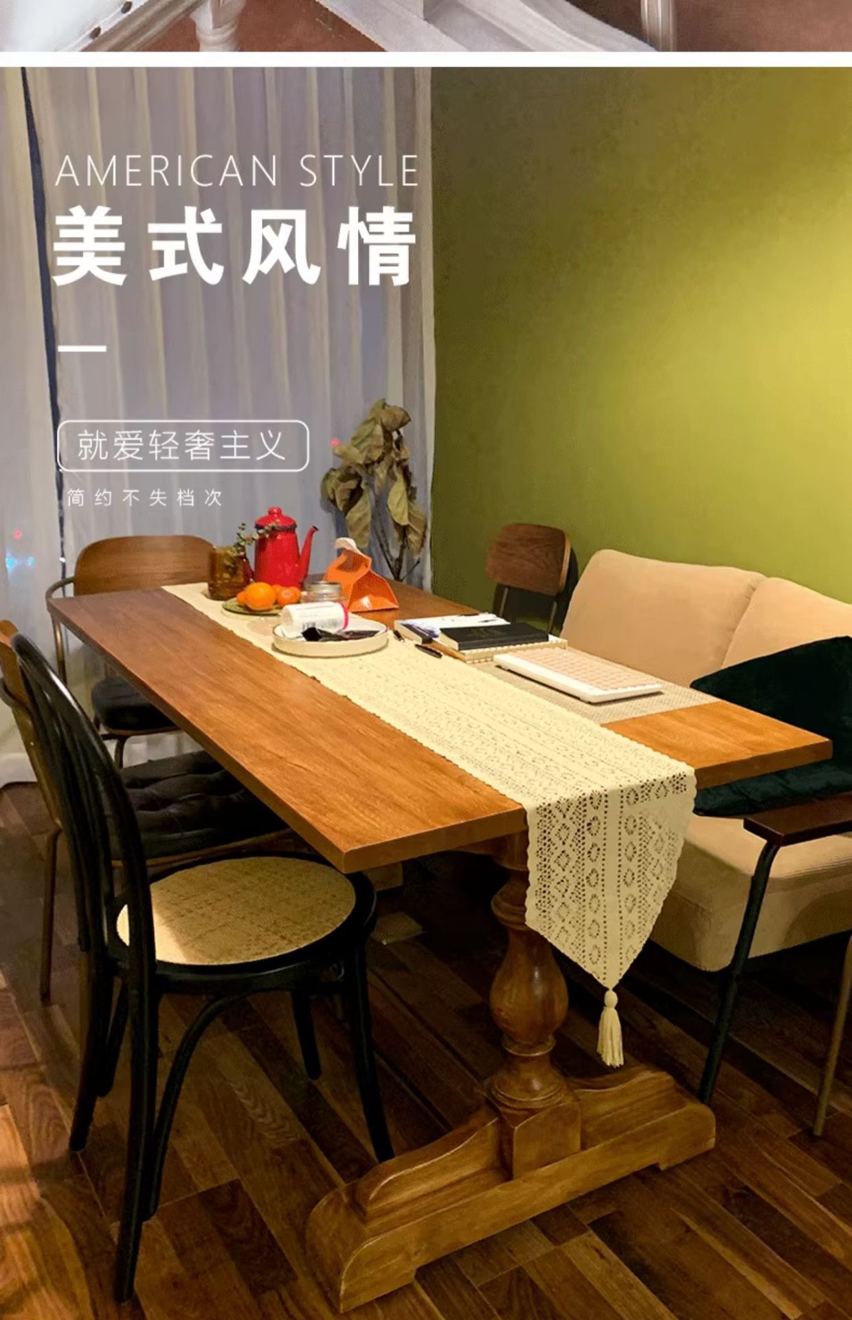 美式乡村实木餐桌复古做旧侘寂风民宿田园家用中古风法式吃饭桌子