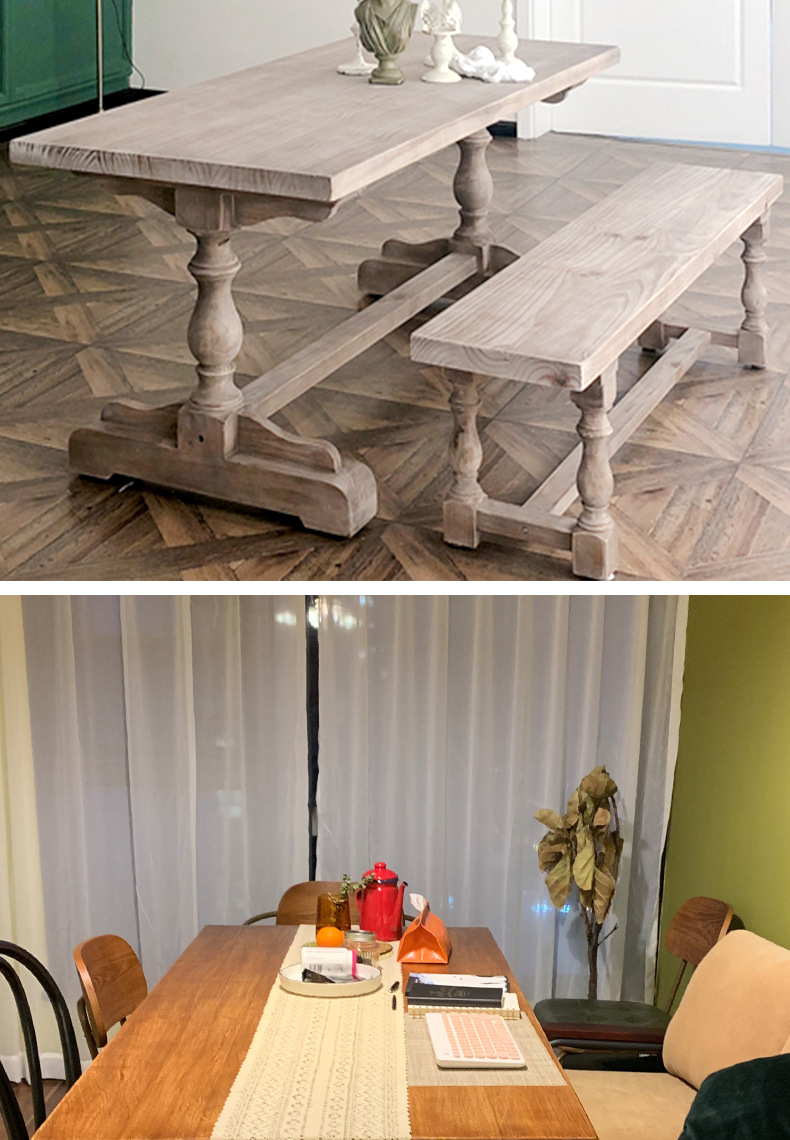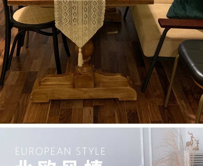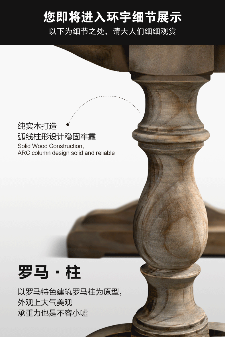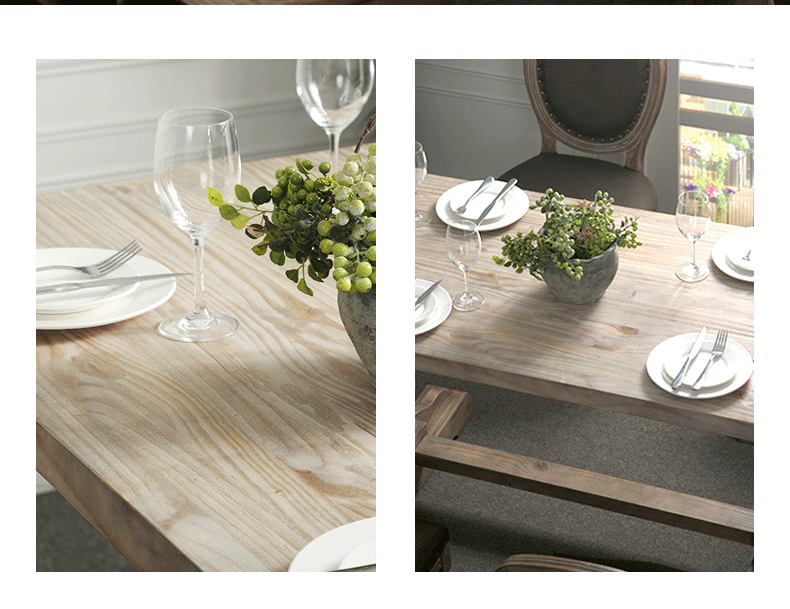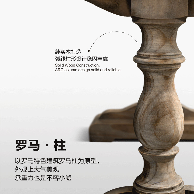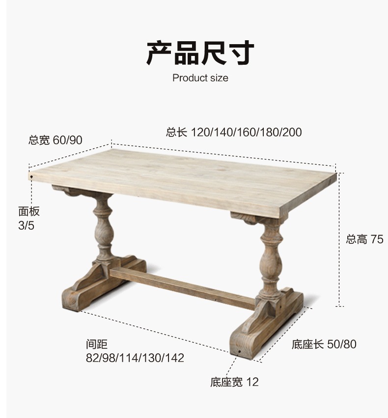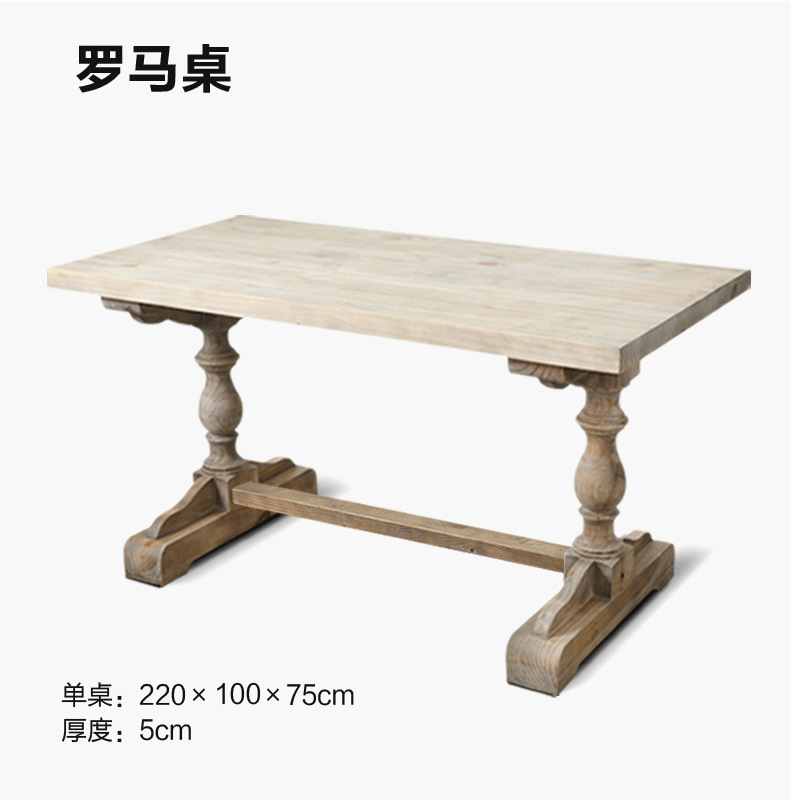 美式乡村实木餐桌复古做旧侘寂风民宿田园家用中古风法式吃饭桌子