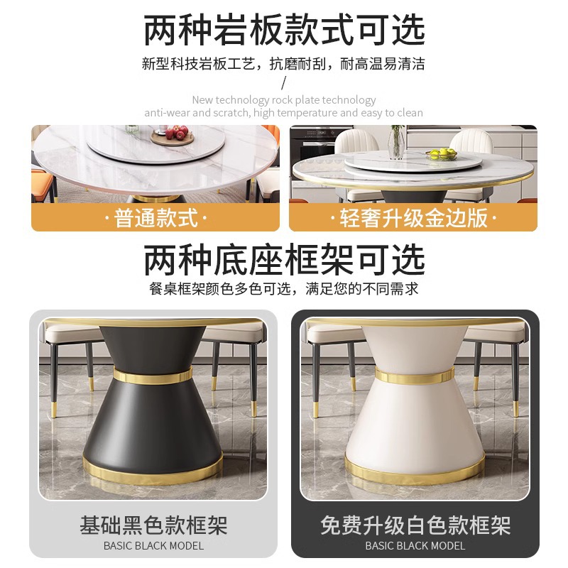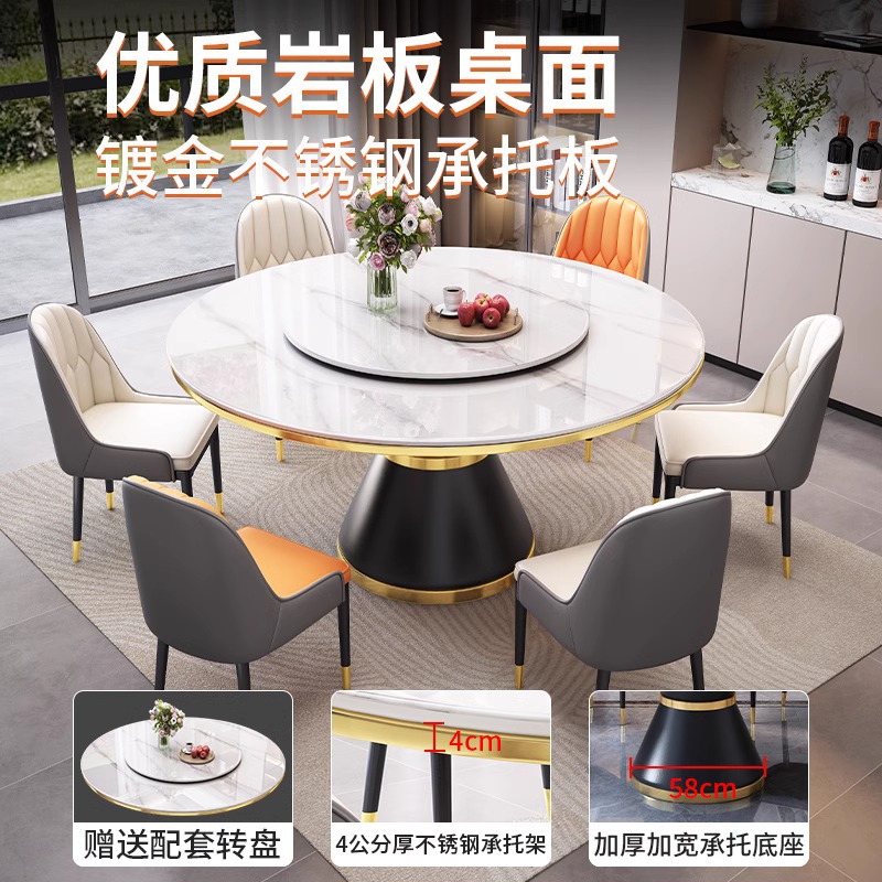 轻奢岩板餐桌椅一体餐桌家用高级感现代简约带转盘餐桌可旋转圆桌