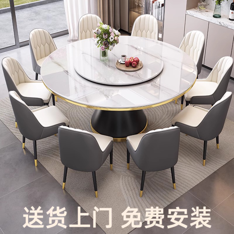 | 1.5 m [12mm stone plate] 1 table and 10 leather chairs-send turntable(1.5米【12mm岩板】1桌10皮椅--送转盘) | USD $434.54 | 1000 set available |