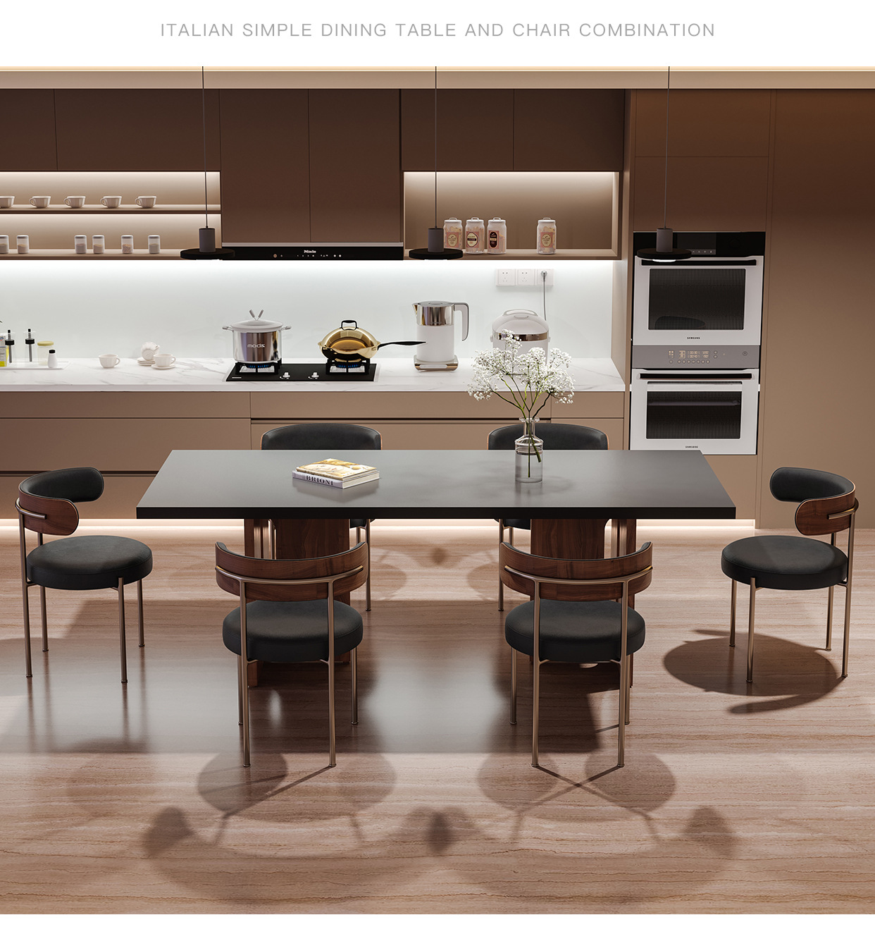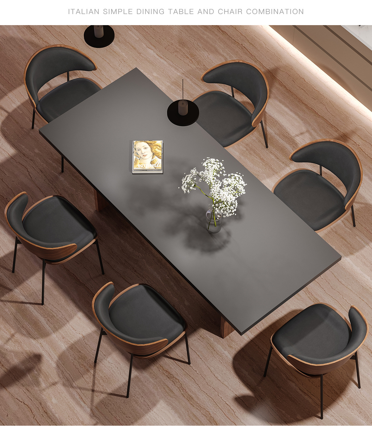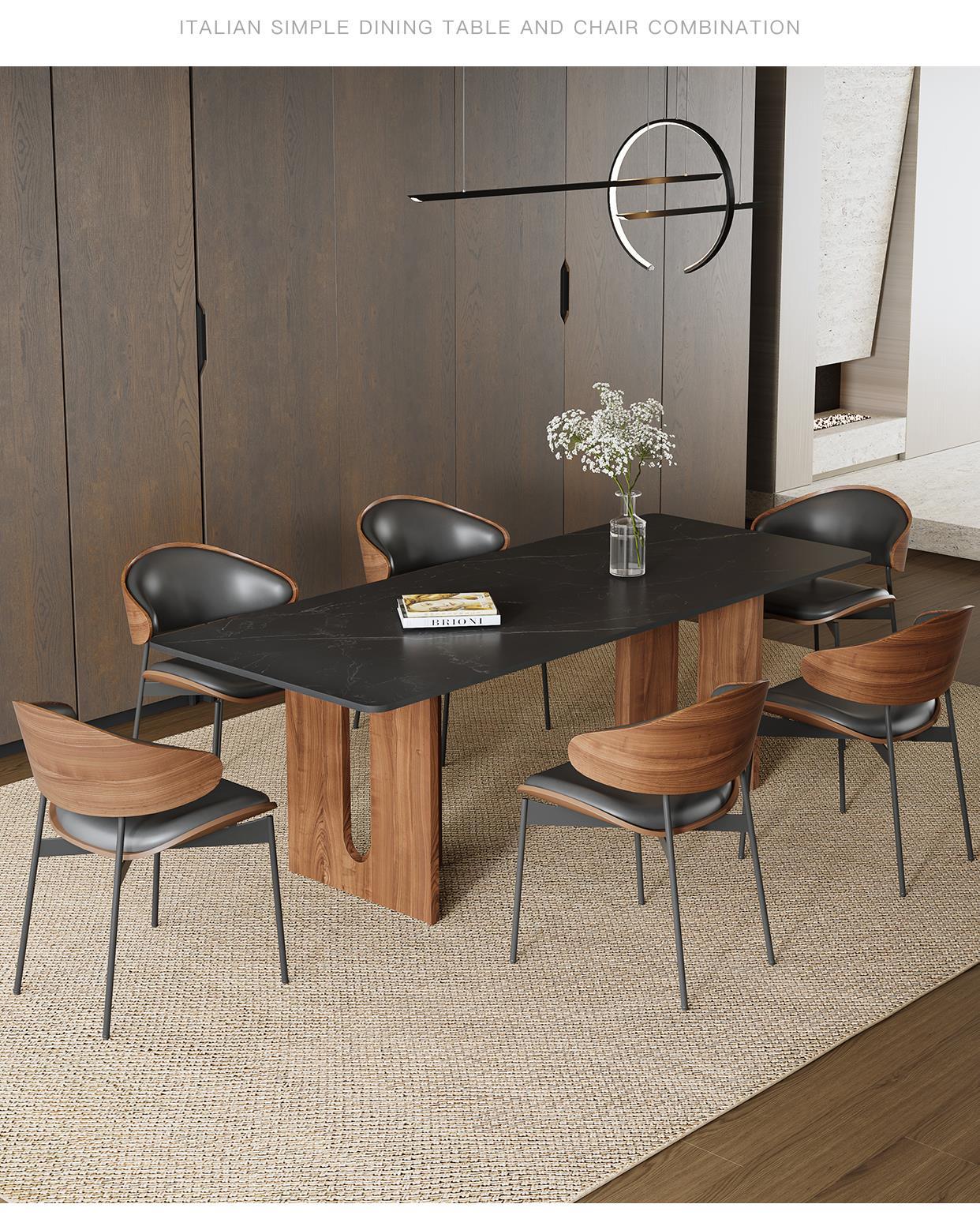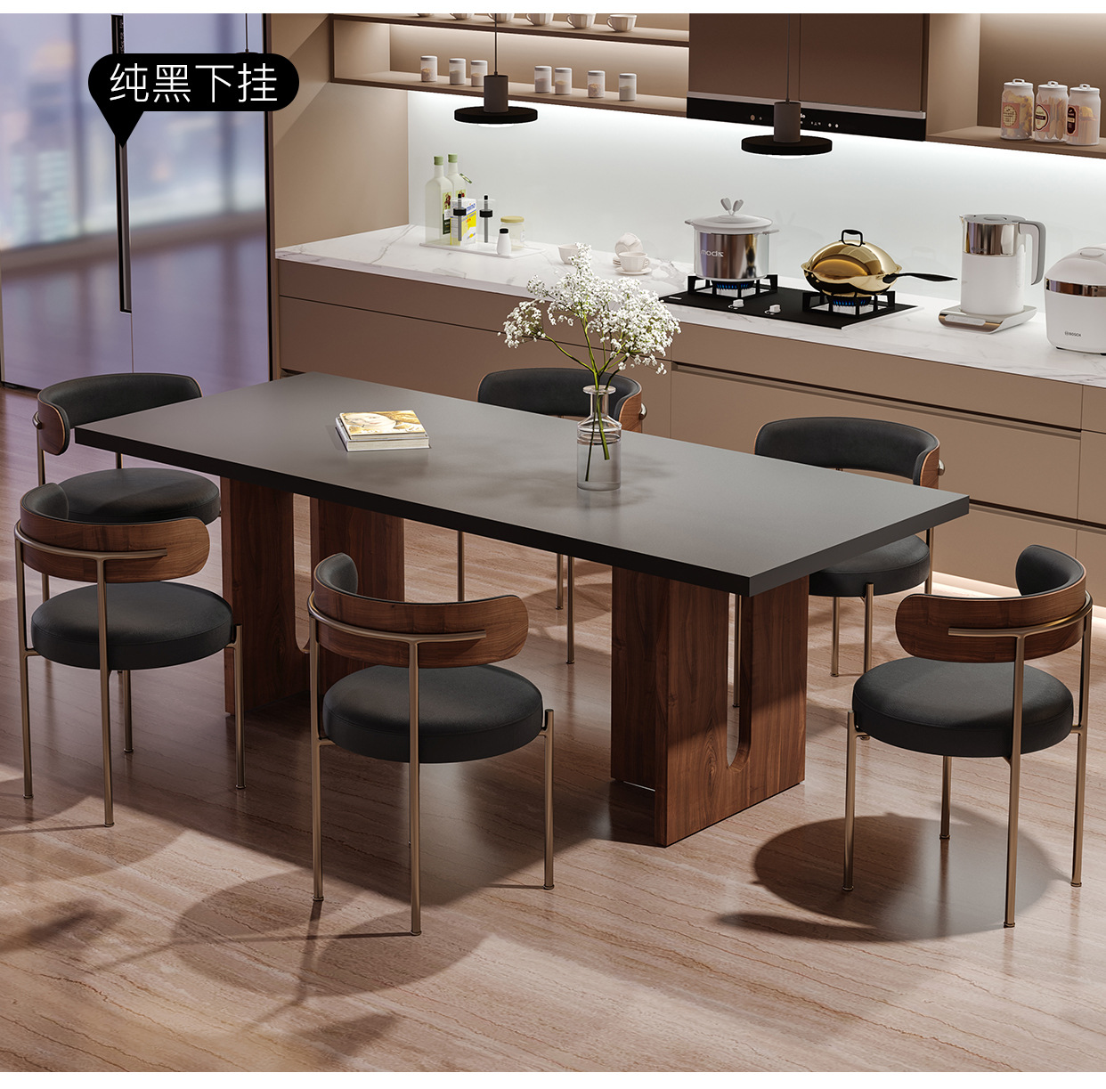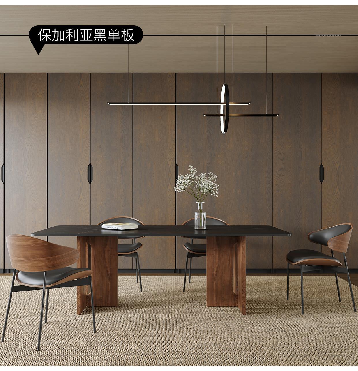 复古侘寂风黑胡桃色实木岩板意式极简设计师长方形餐桌椅组合家用