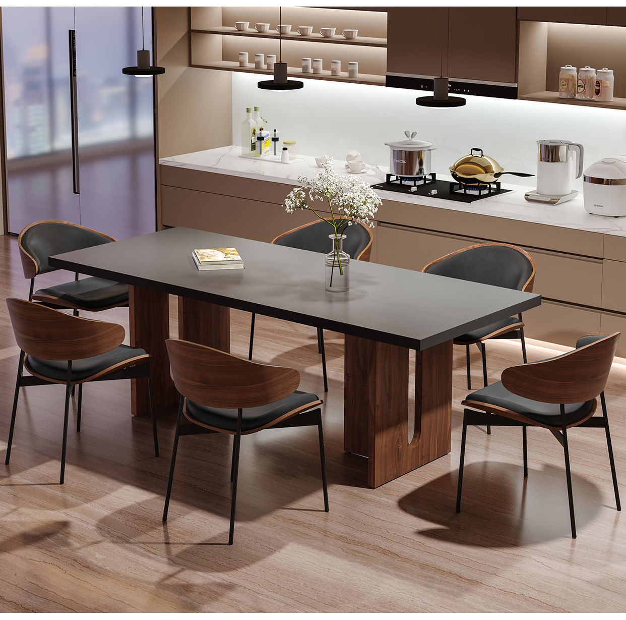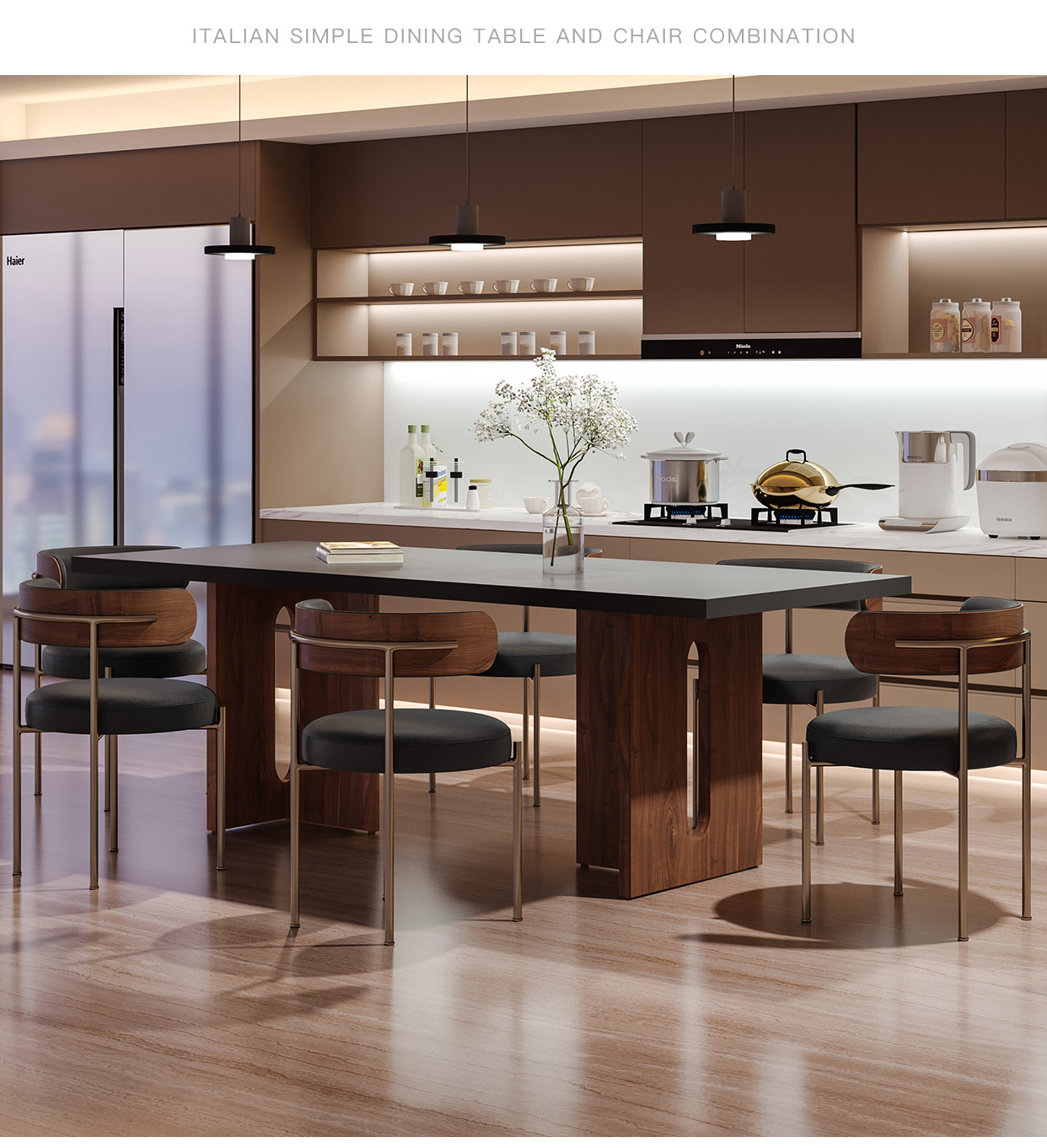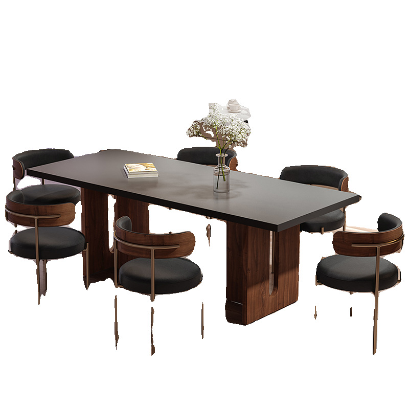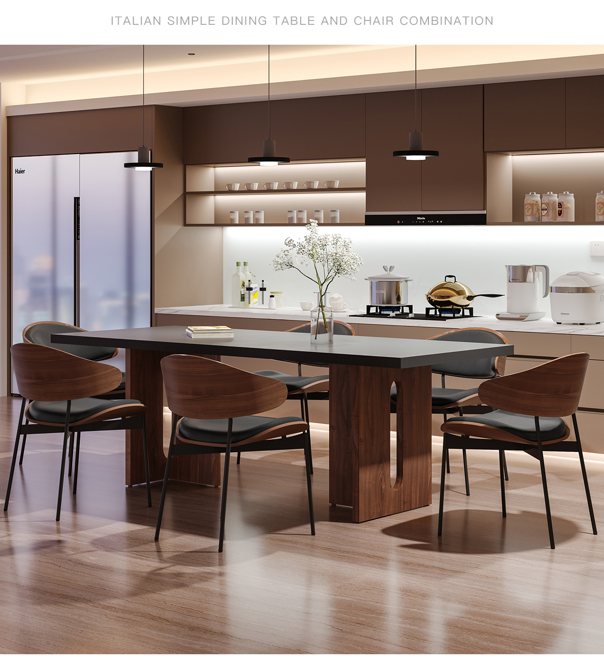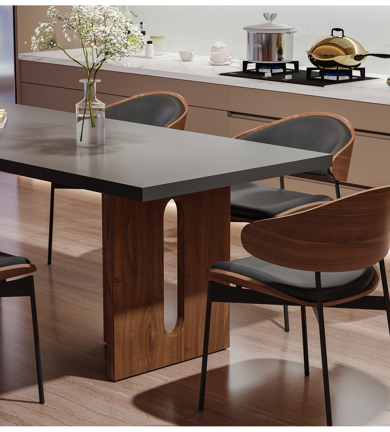 复古侘寂风黑胡桃色实木岩板意式极简设计师长方形餐桌椅组合家用