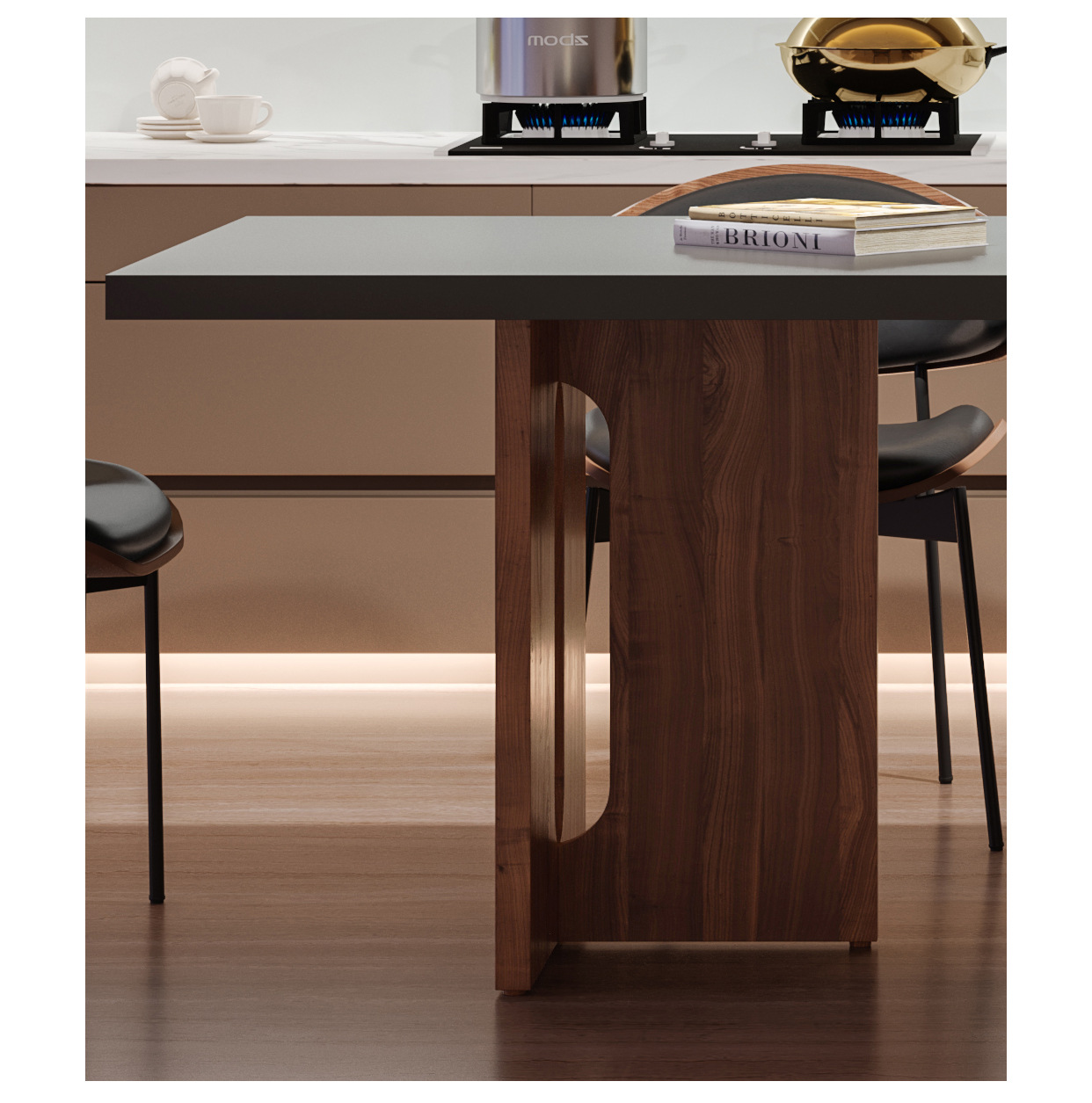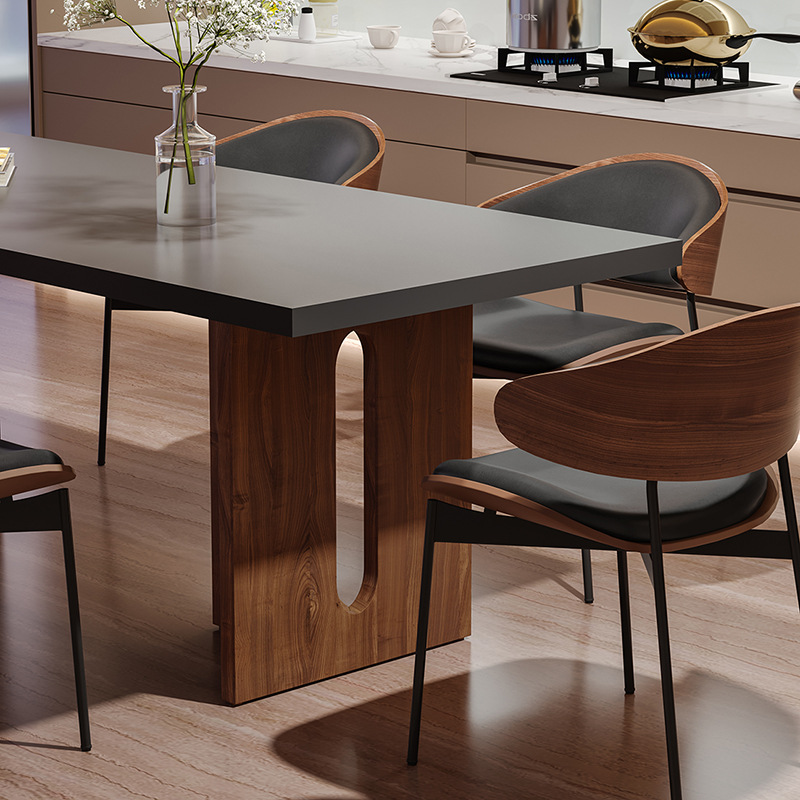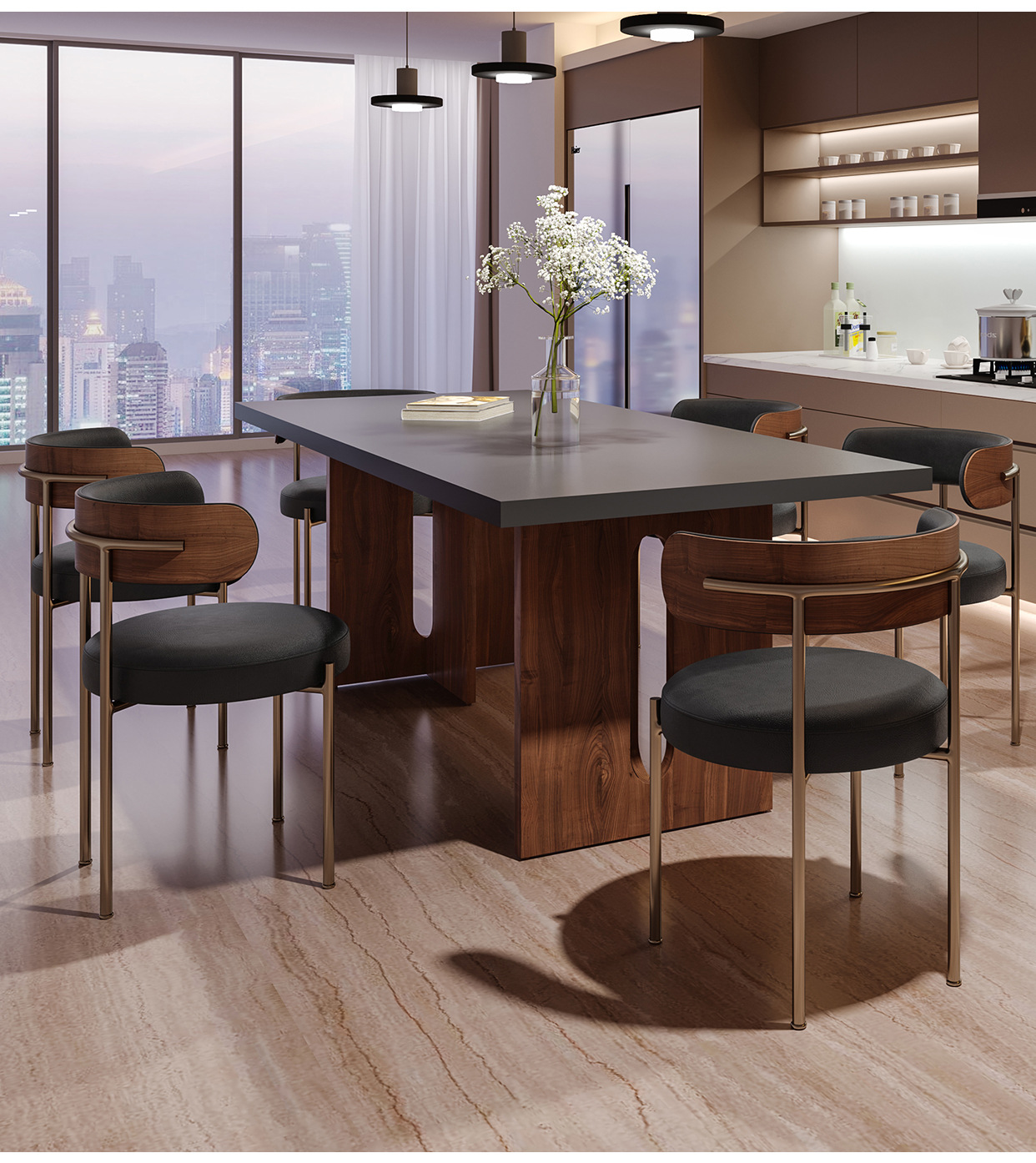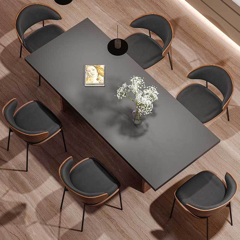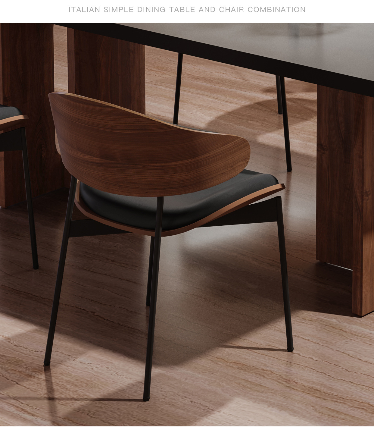 复古侘寂风黑胡桃色实木岩板意式极简设计师长方形餐桌椅组合家用