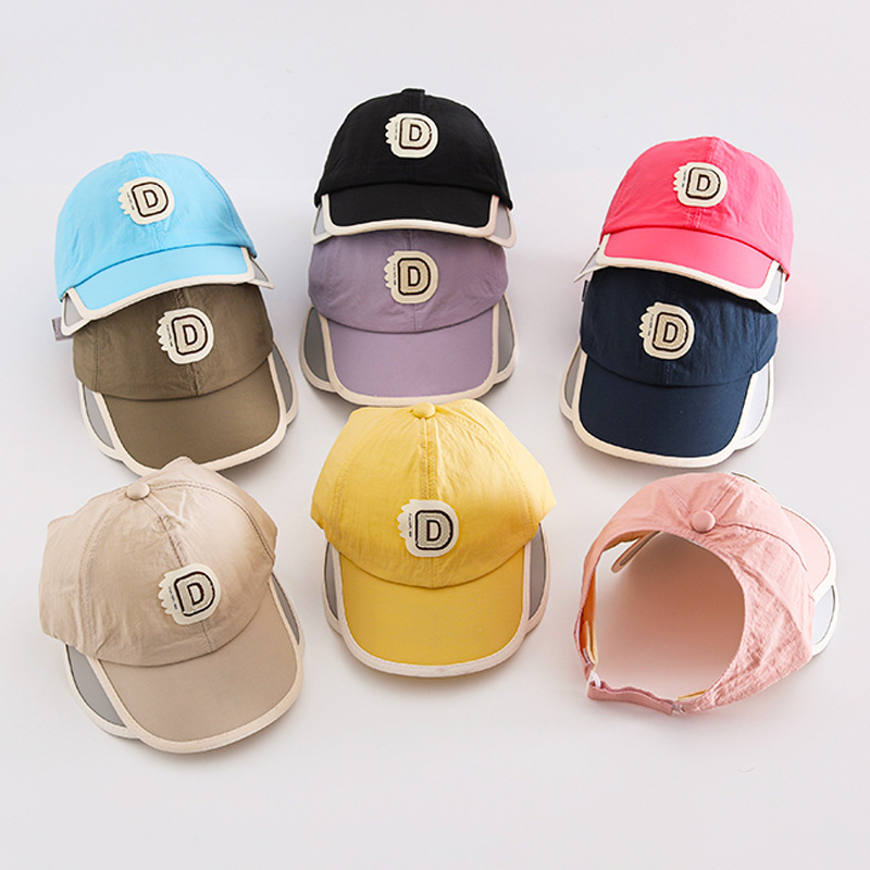 春季时尚字母D儿童鸭舌帽夏季遮阳半空顶男童女童速干轻薄棒球帽