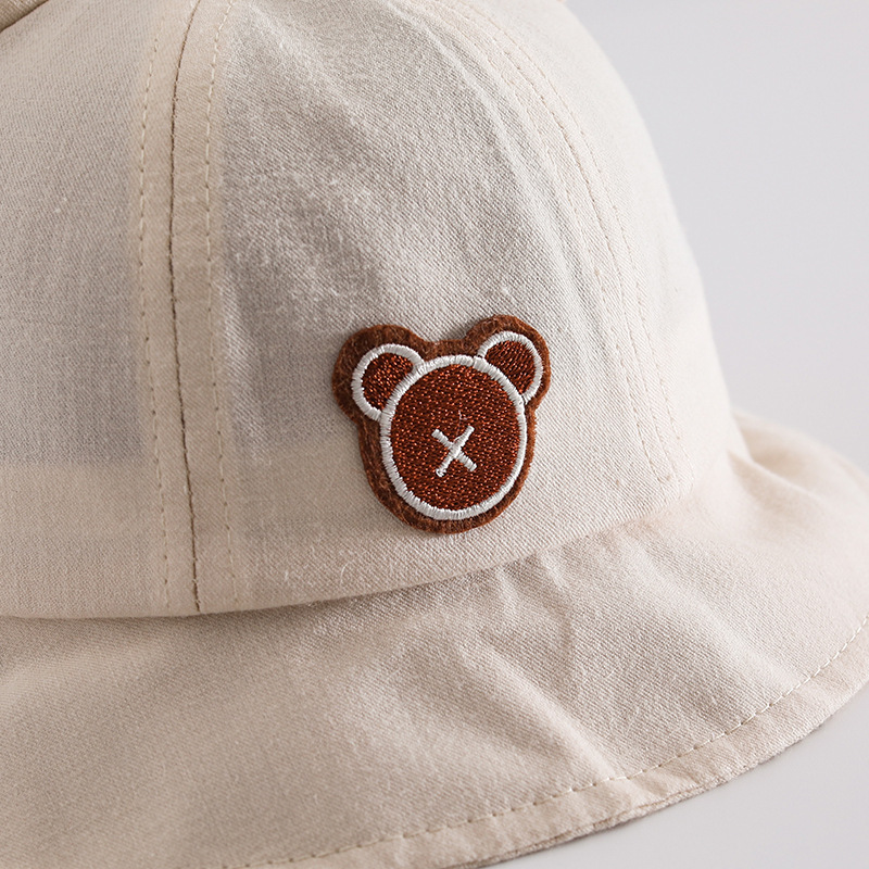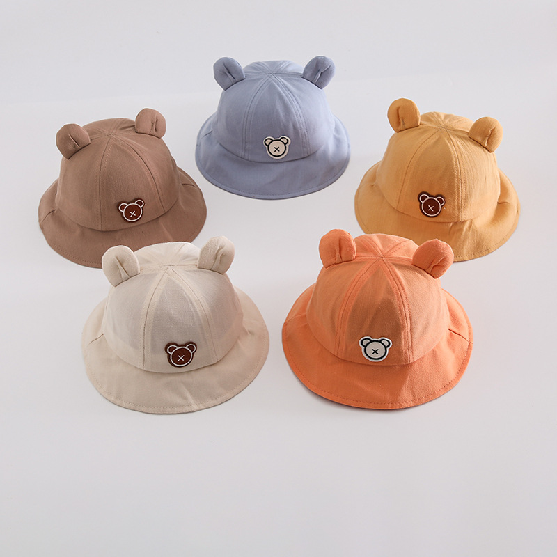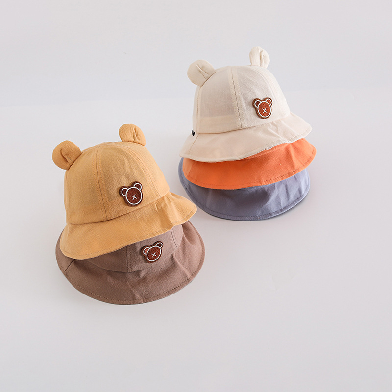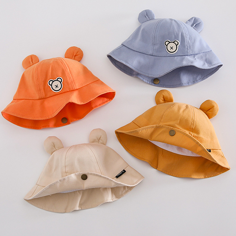 婴幼儿光渔夫帽春季宽檐遮阳儿童帽子可爱小熊翻边男女宝宝盆帽