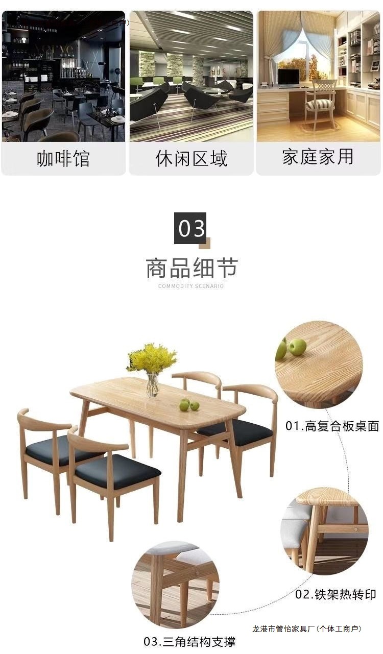北欧餐桌椅组合现代简约小户型吃饭桌饭店咖啡店奶茶店长方形桌椅