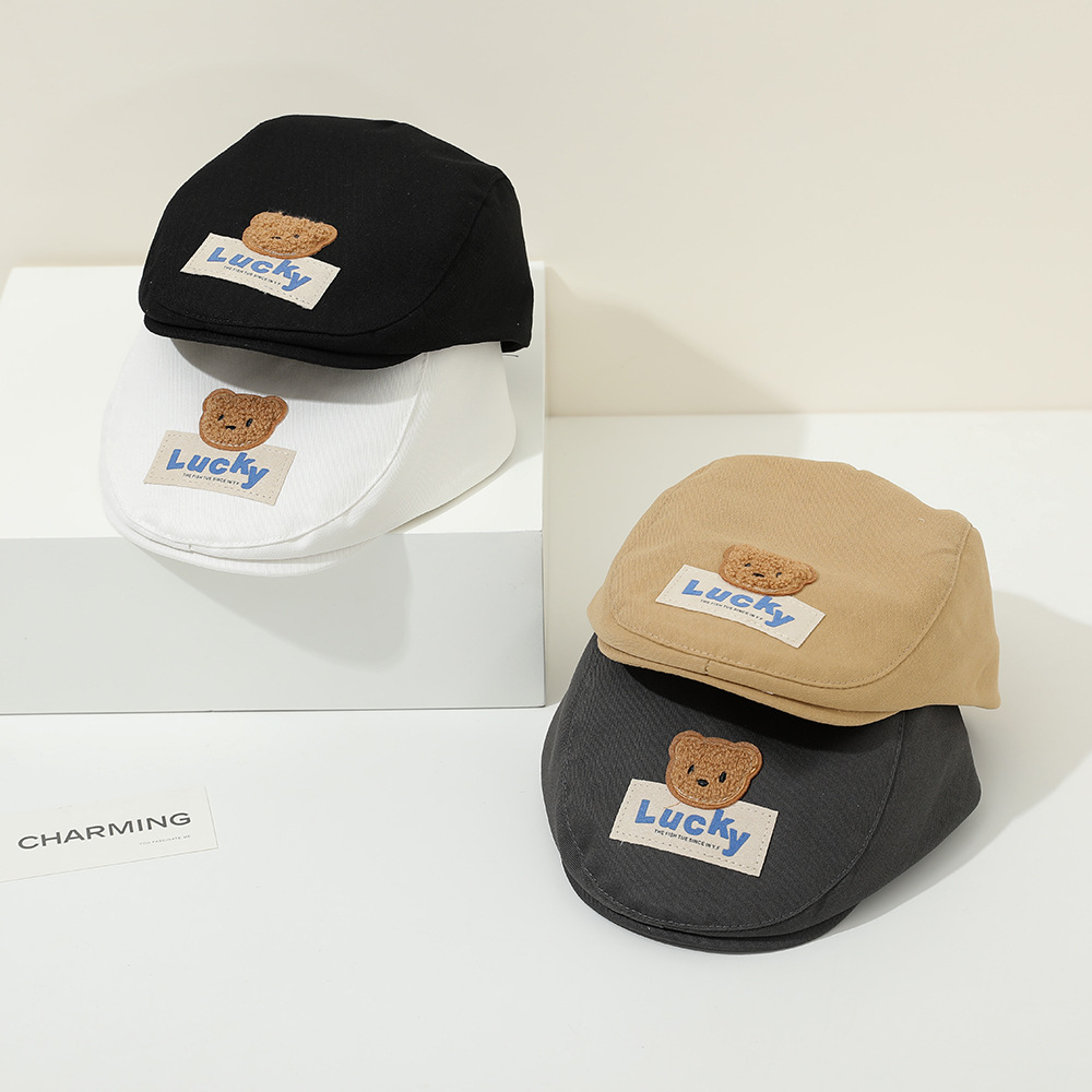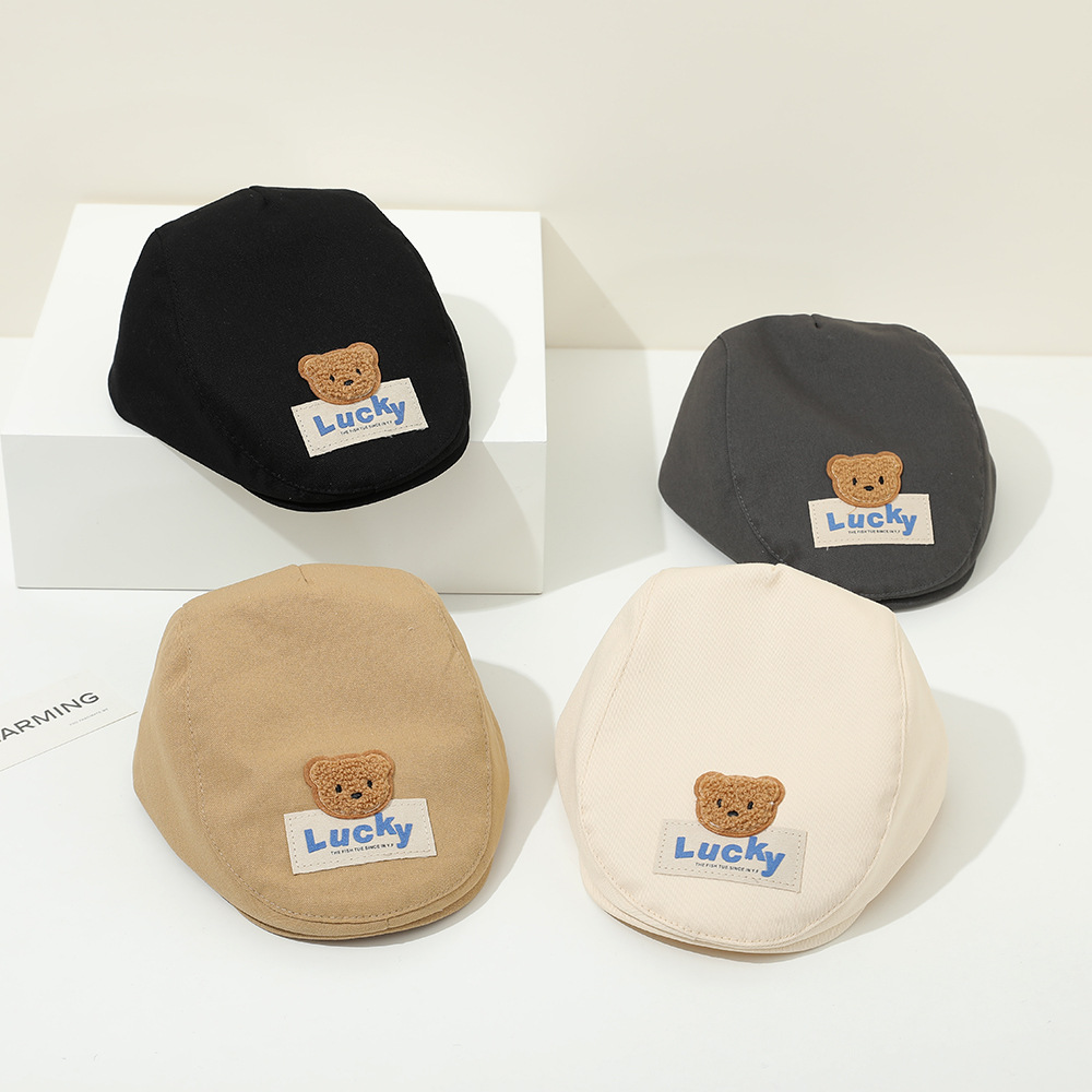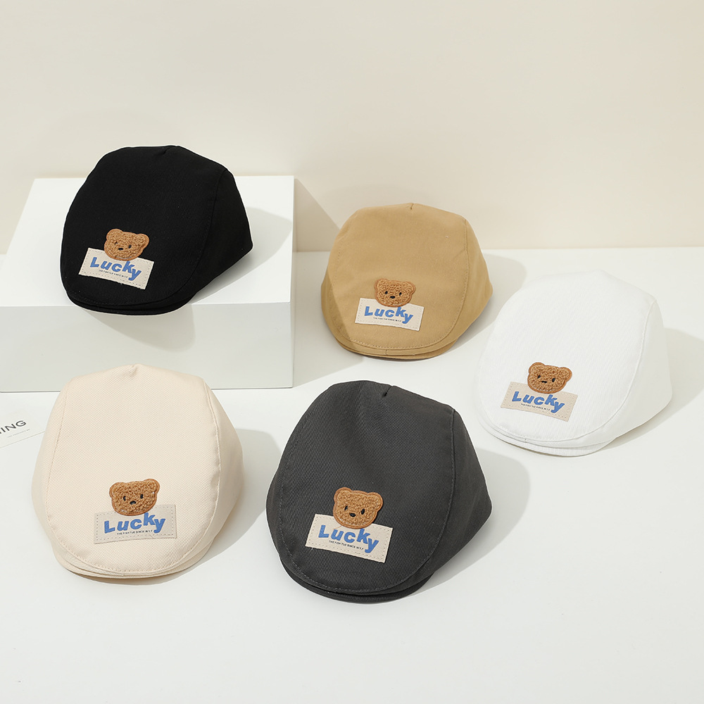 春季新款儿童帽子报童帽简约百搭鸭舌帽男女童宝宝lucky前进帽