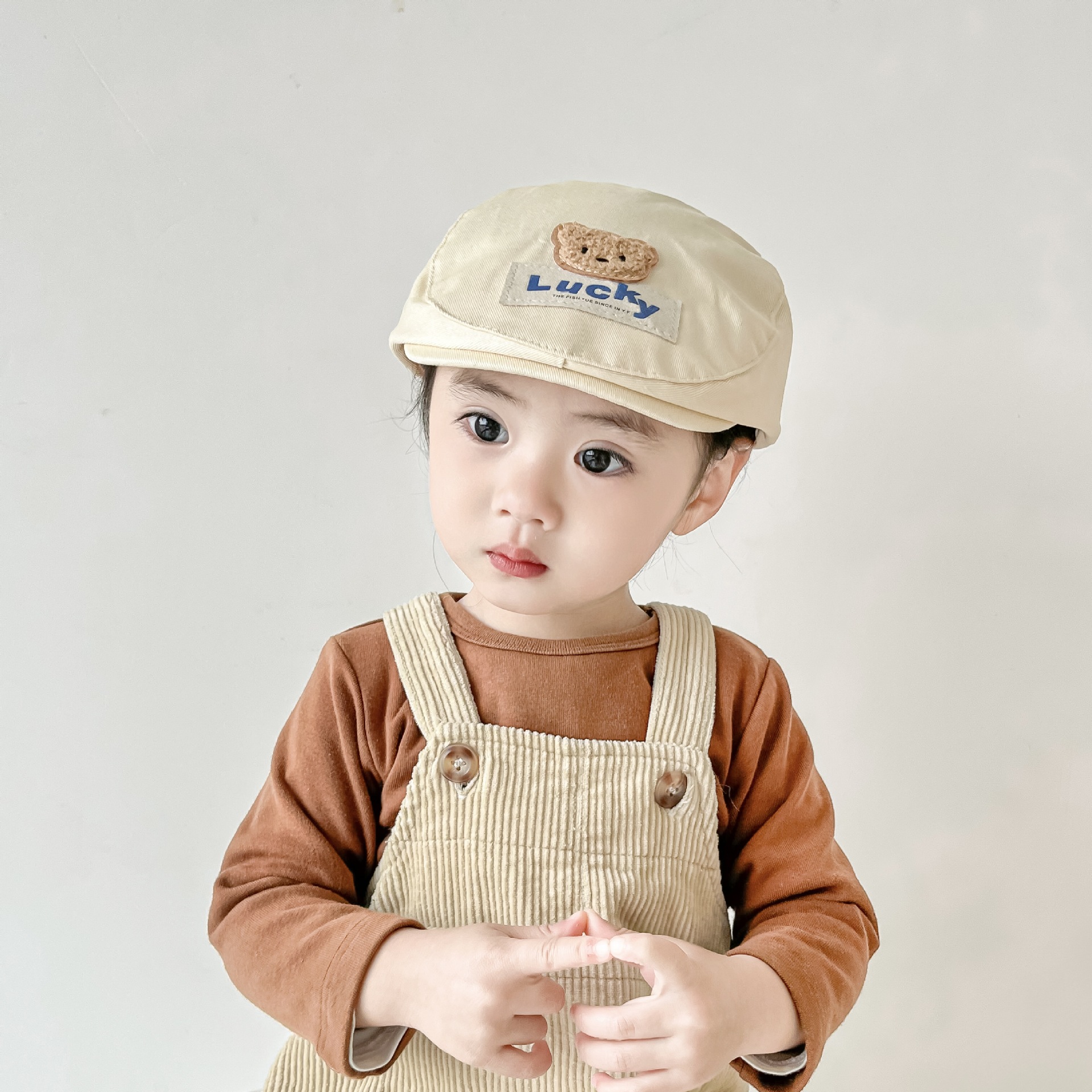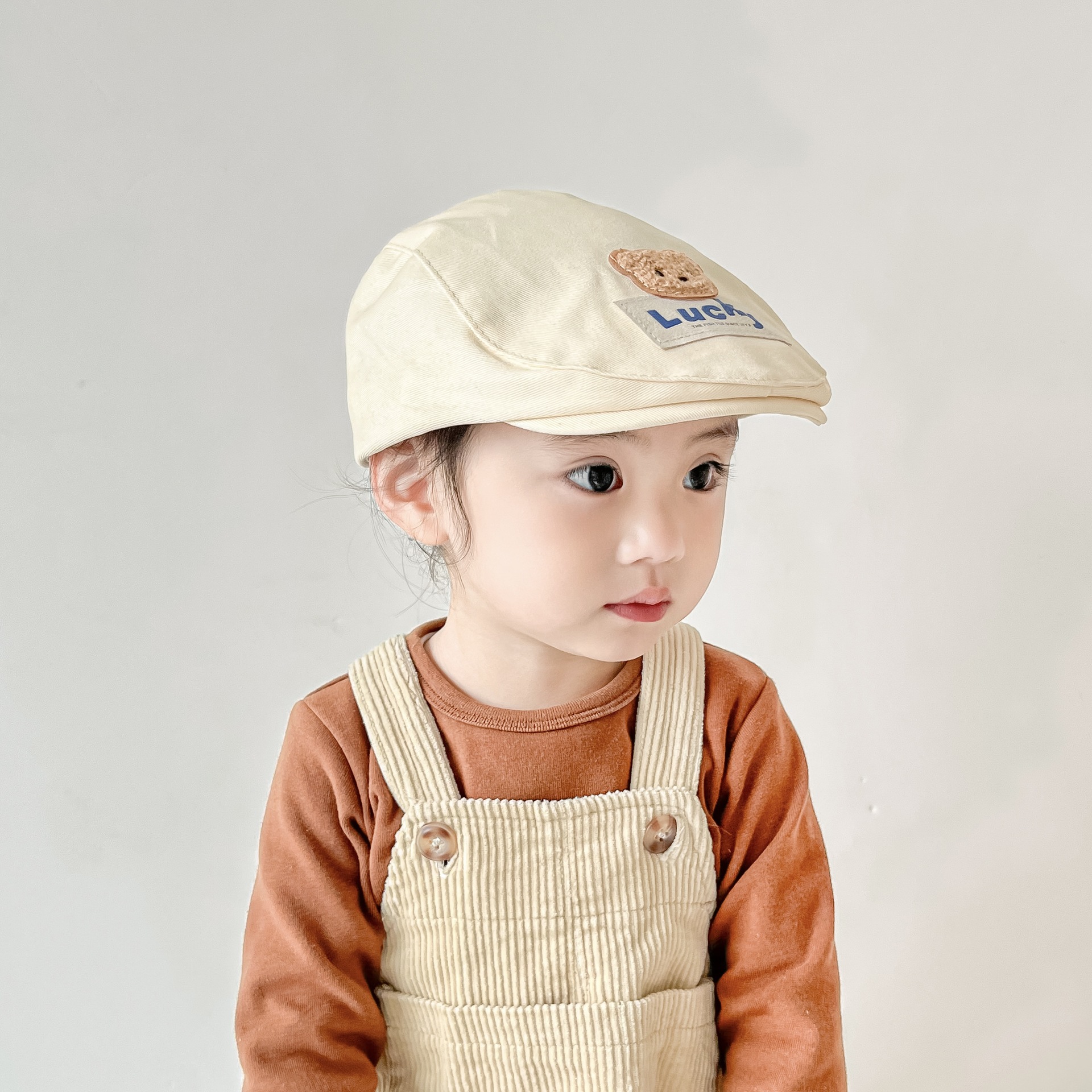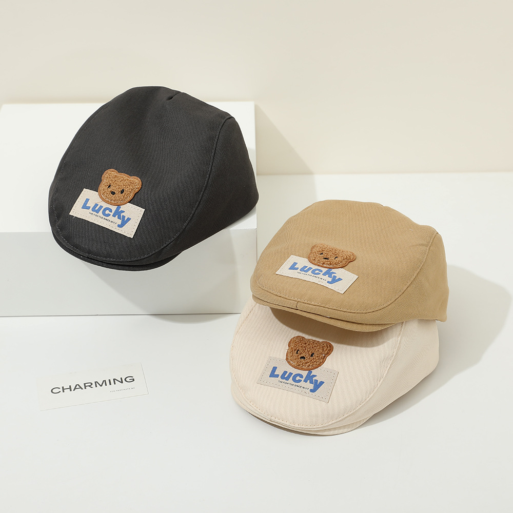 春季新款儿童帽子报童帽简约百搭鸭舌帽男女童宝宝lucky前进帽