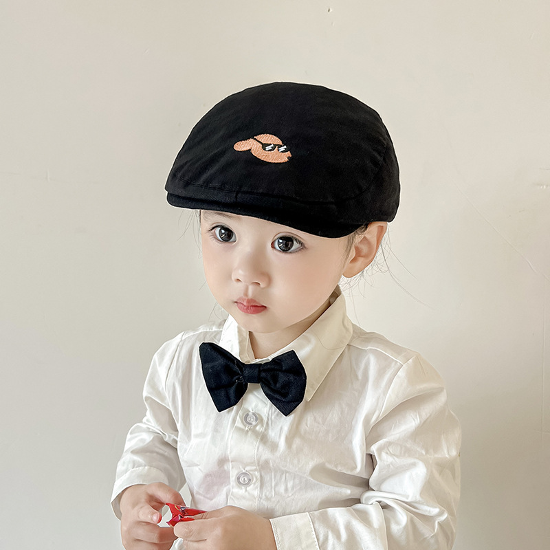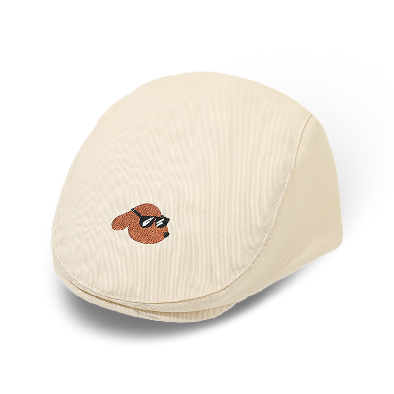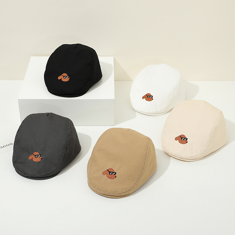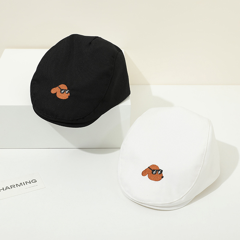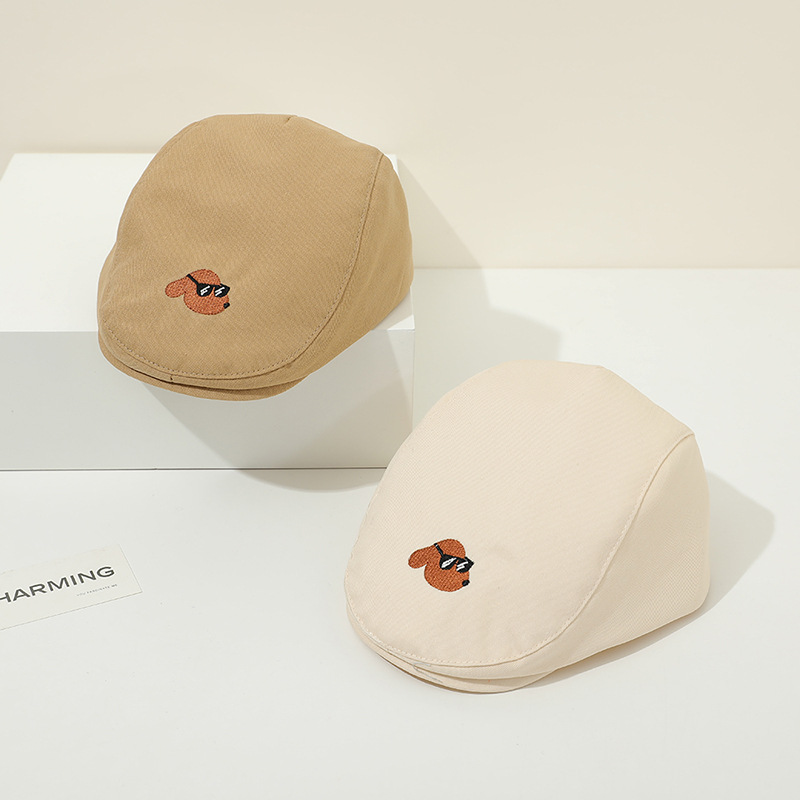 儿童帽子复古报童帽英伦短檐贝雷风鸭舌帽男女宝宝刺绣小狗前进帽