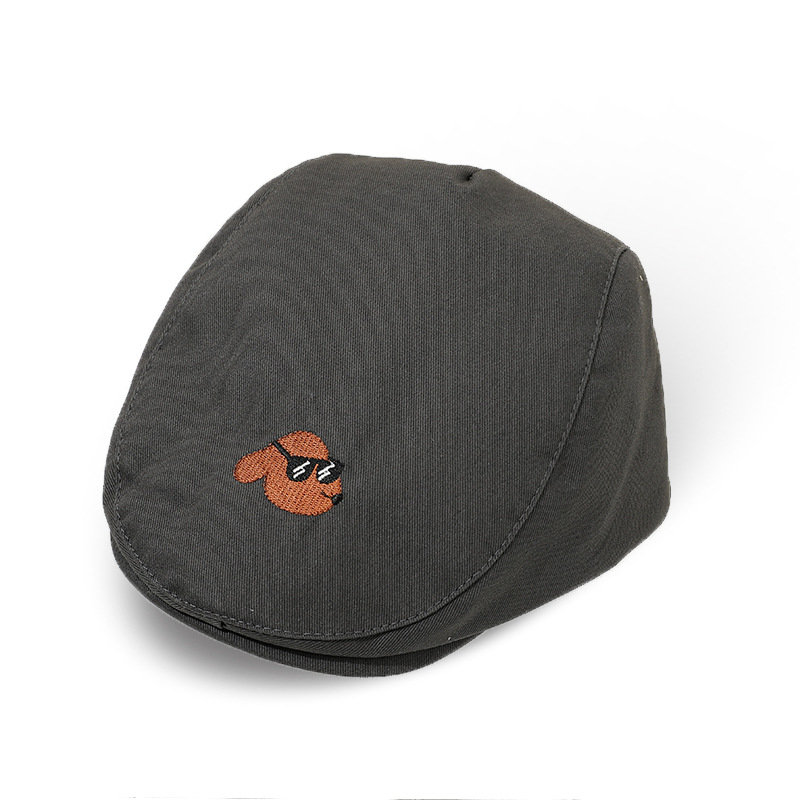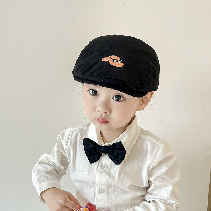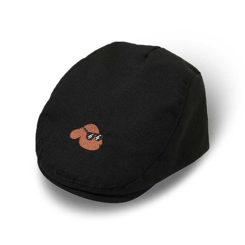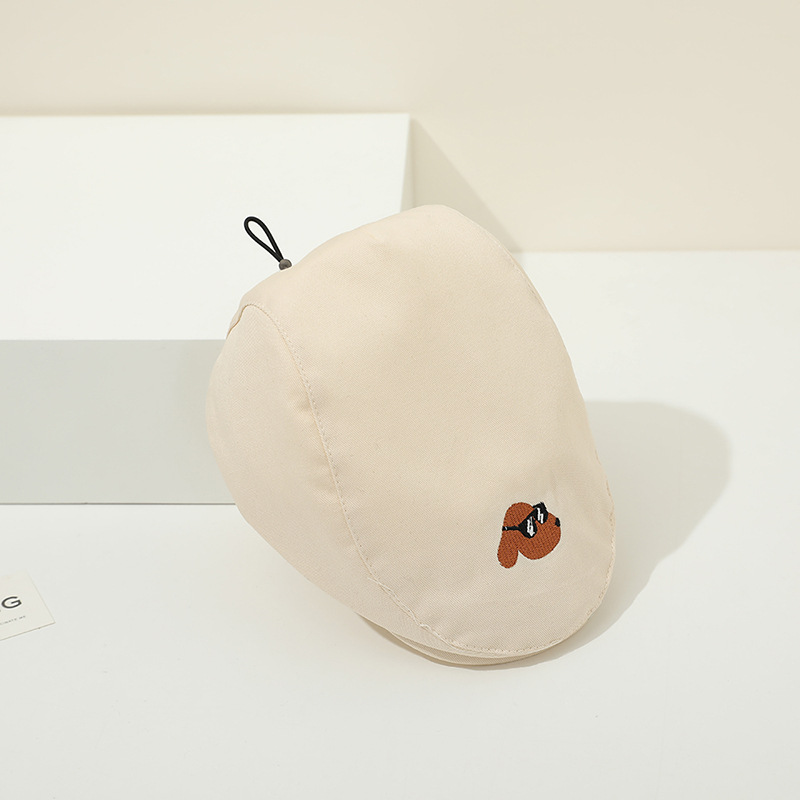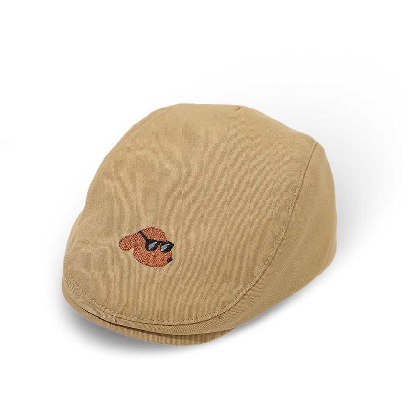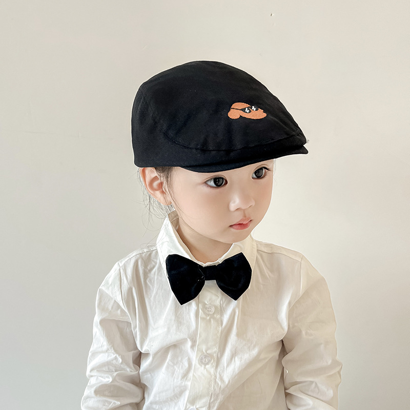 儿童帽子复古报童帽英伦短檐贝雷风鸭舌帽男女宝宝刺绣小狗前进帽