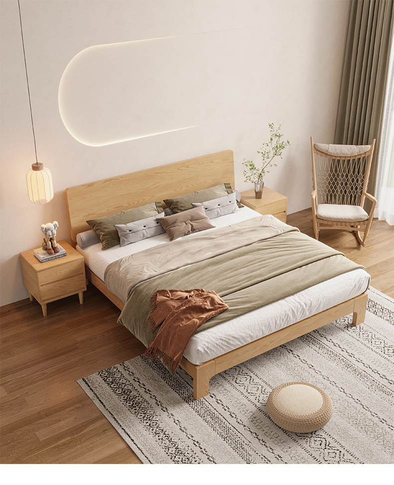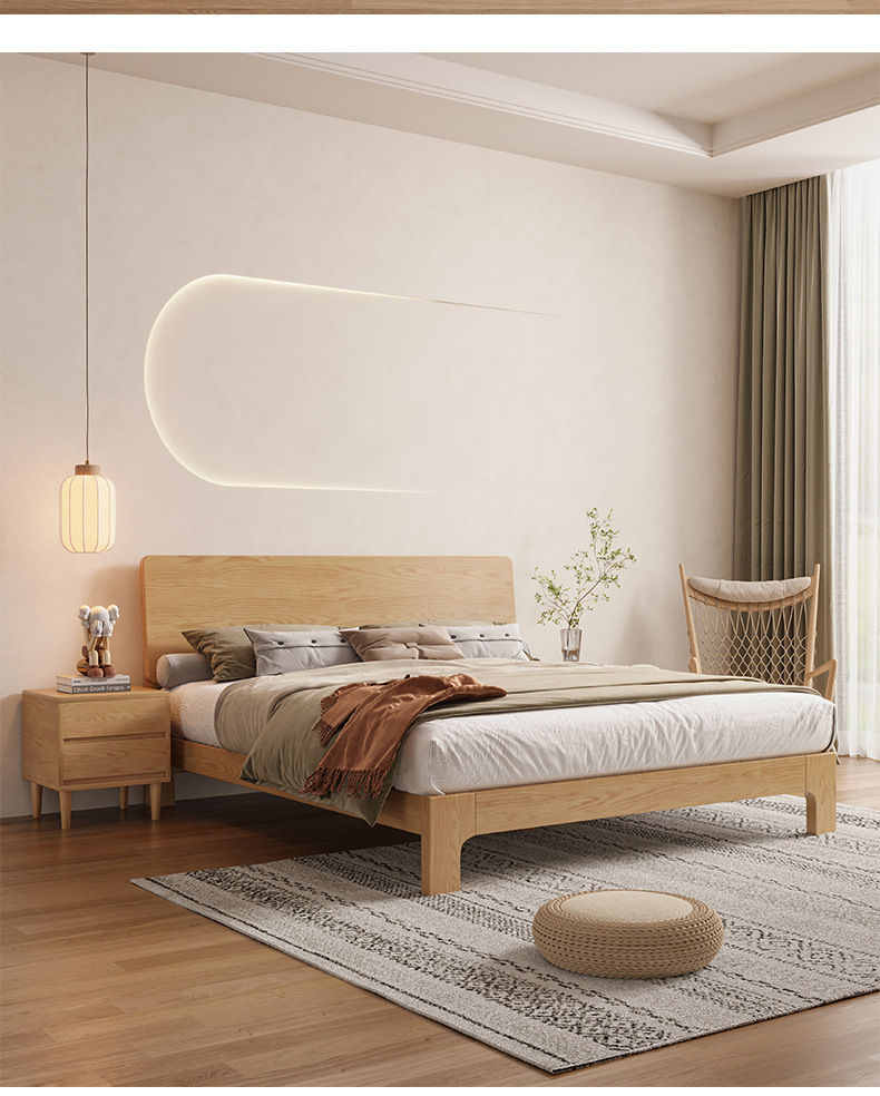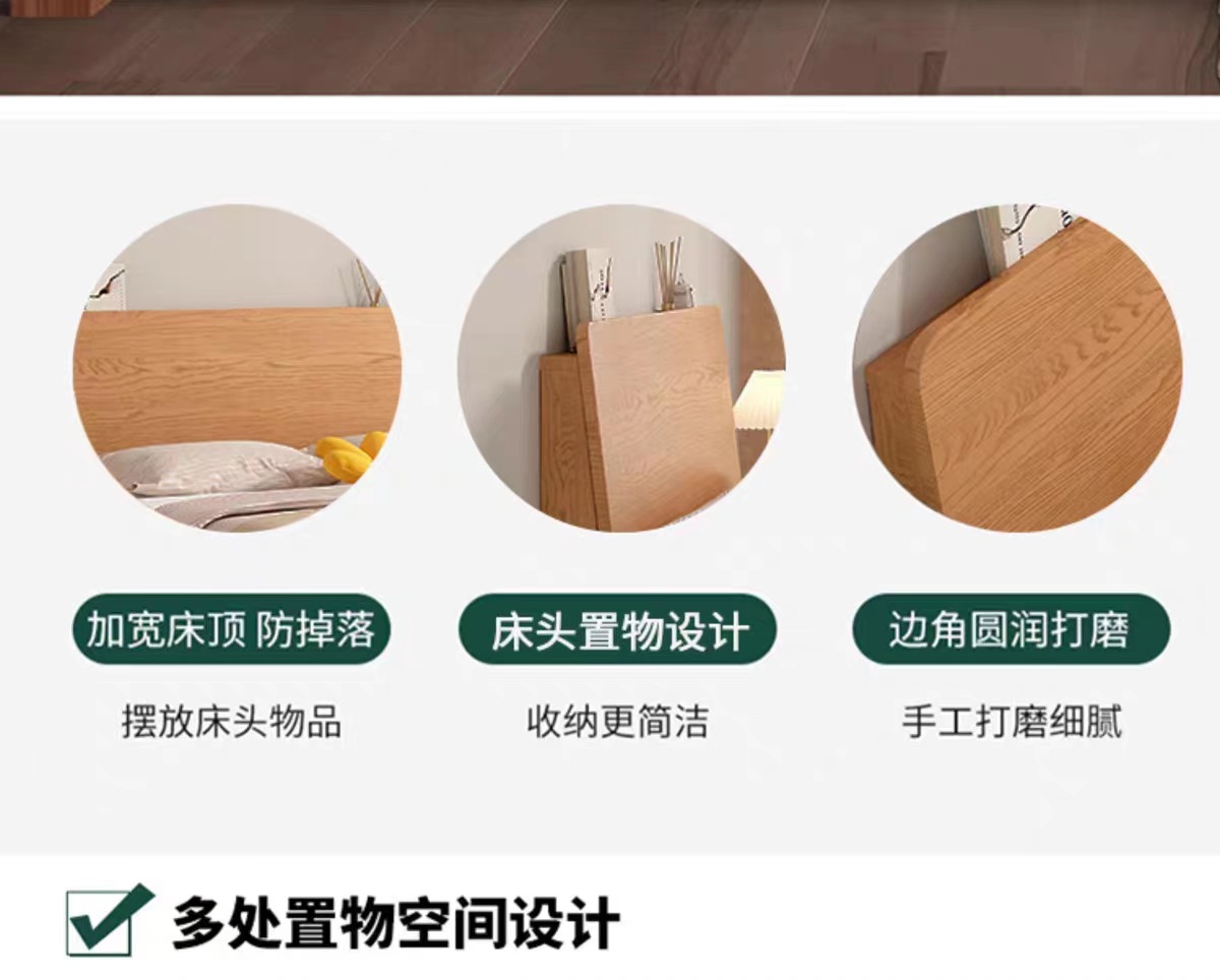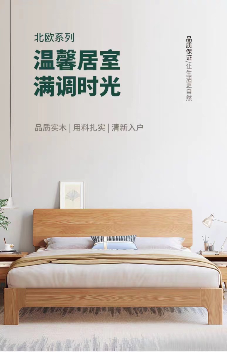 北欧实木床1.35米简约双人床1.2米小户型白蜡木日式原木民宿家具