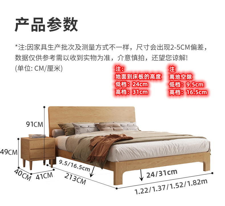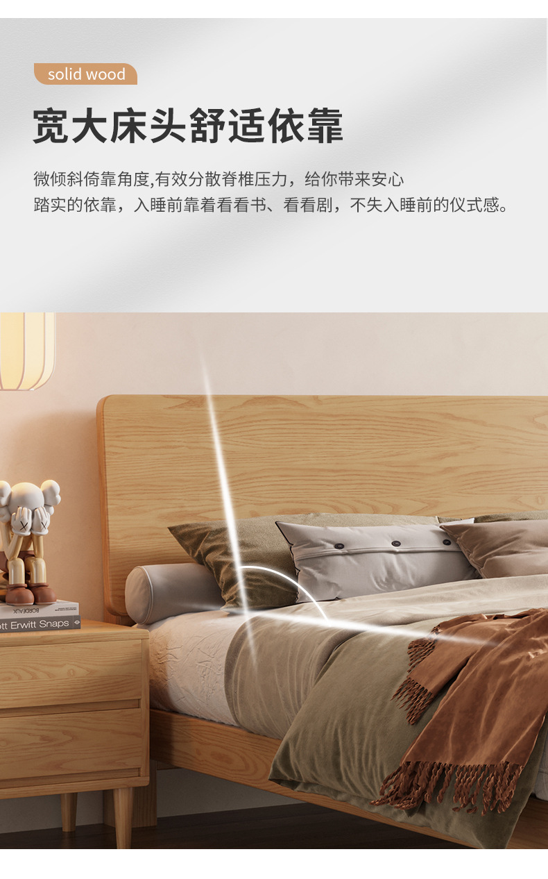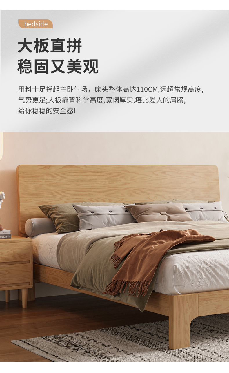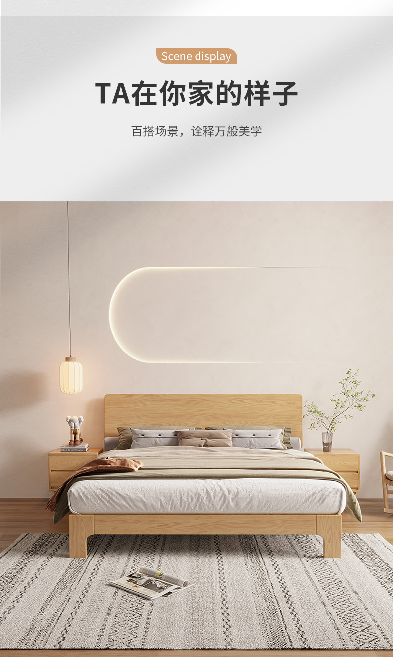 北欧实木床1.35米简约双人床1.2米小户型白蜡木日式原木民宿家具
