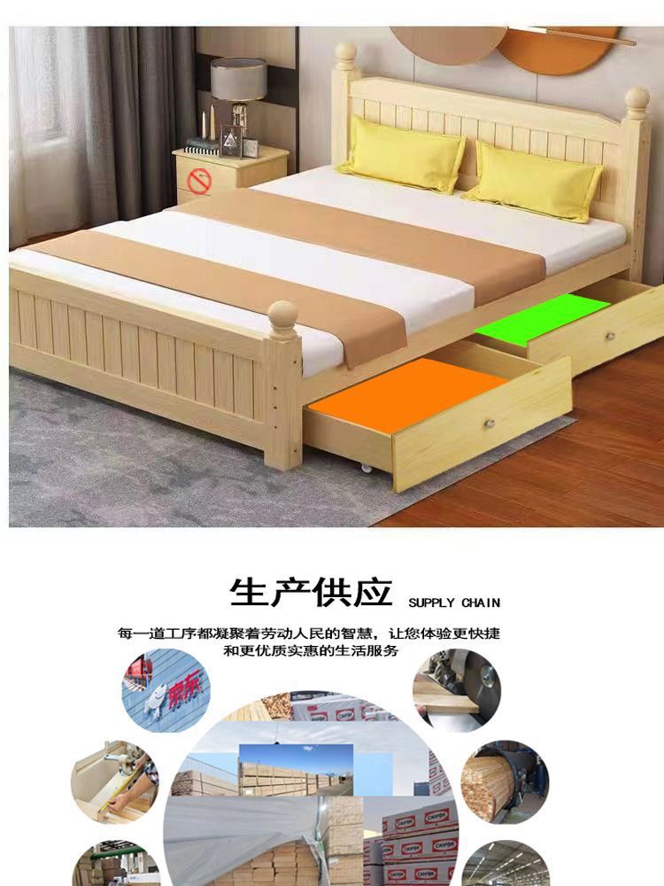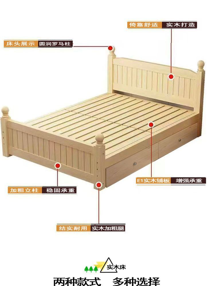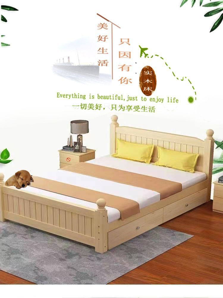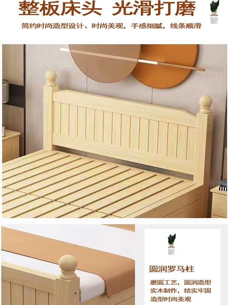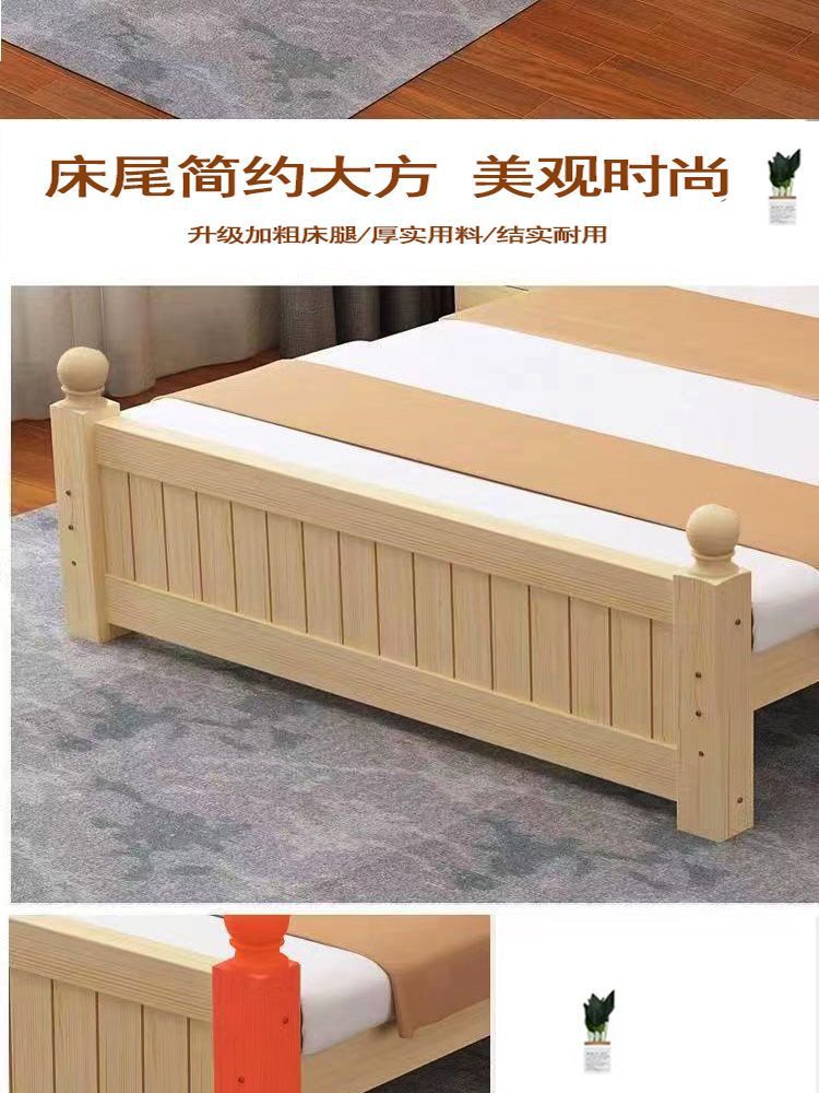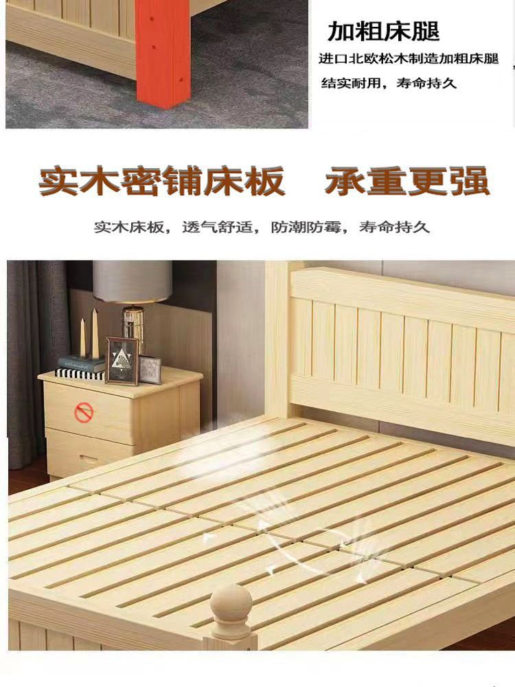 全实木床1.5m家用床双人1.8m现代简约经济型出租房1m单双人简易床