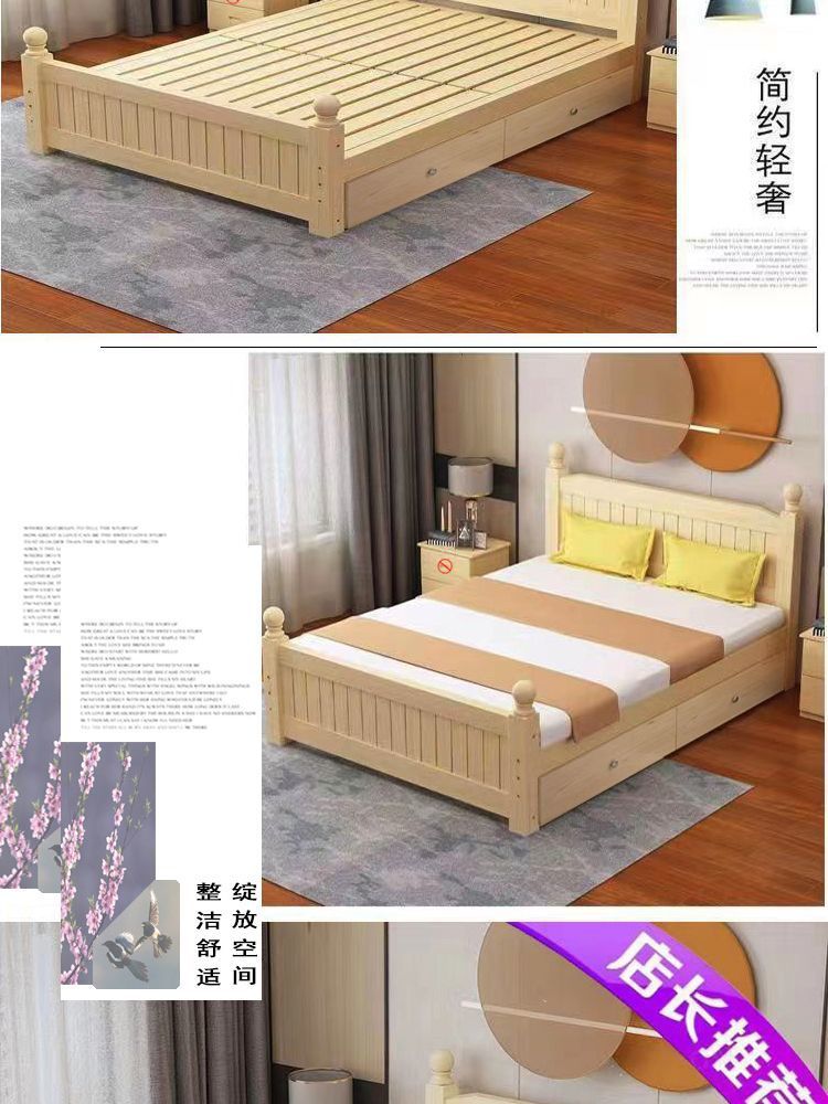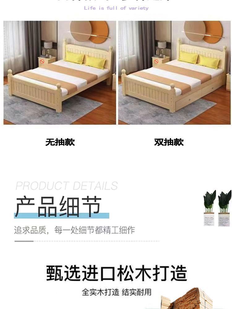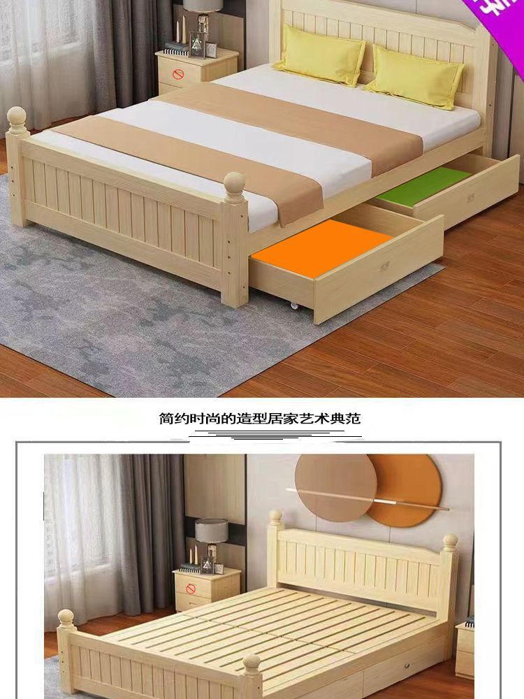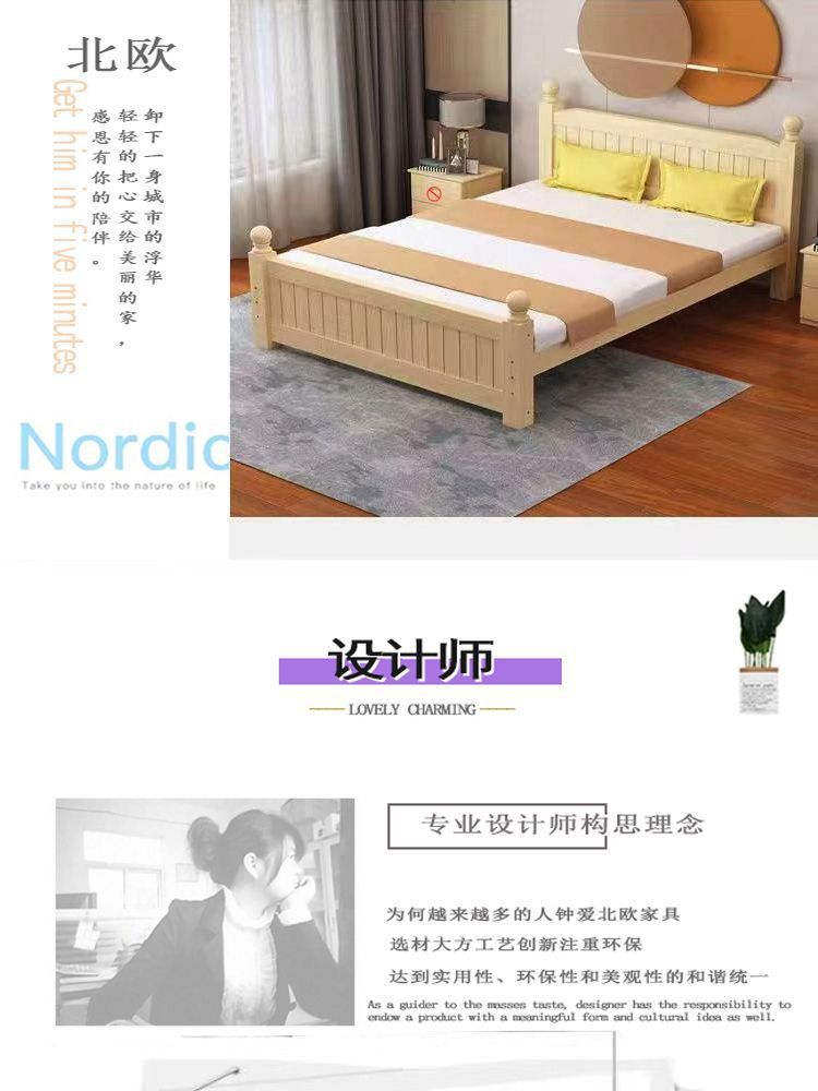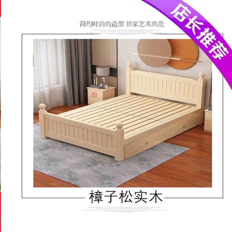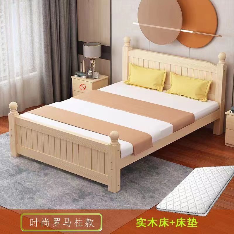 全实木床1.5m家用床双人1.8m现代简约经济型出租房1m单双人简易床