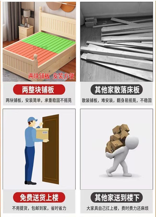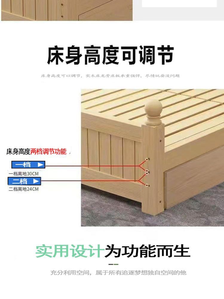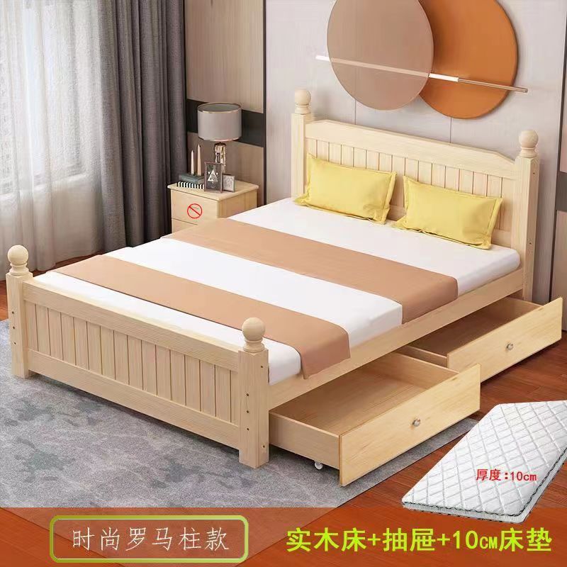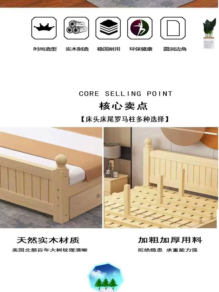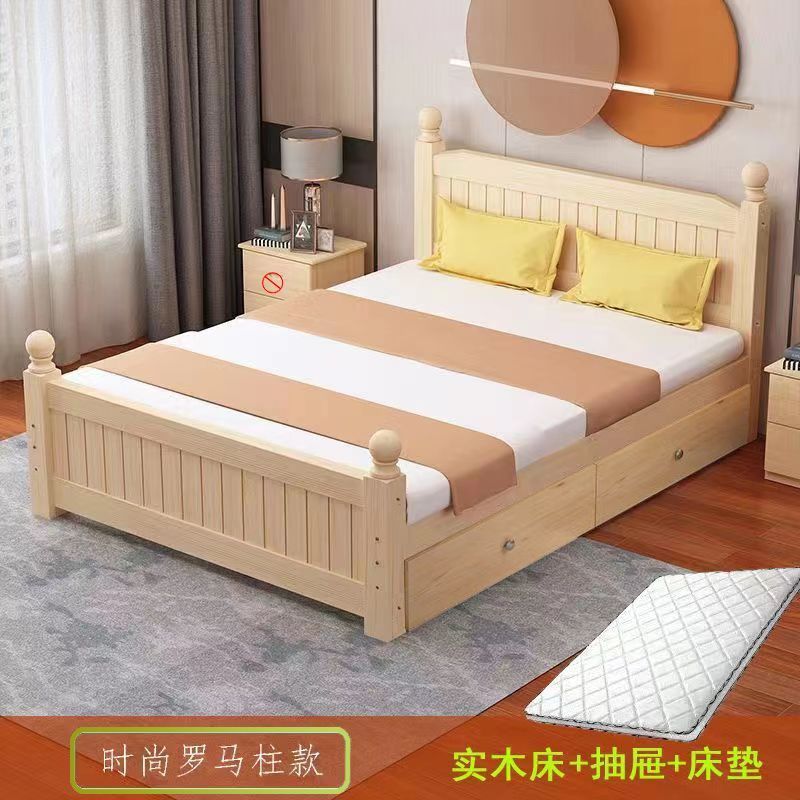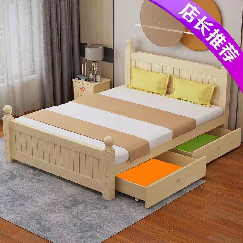 全实木床1.5m家用床双人1.8m现代简约经济型出租房1m单双人简易床