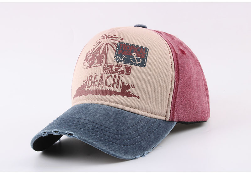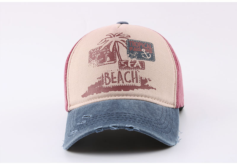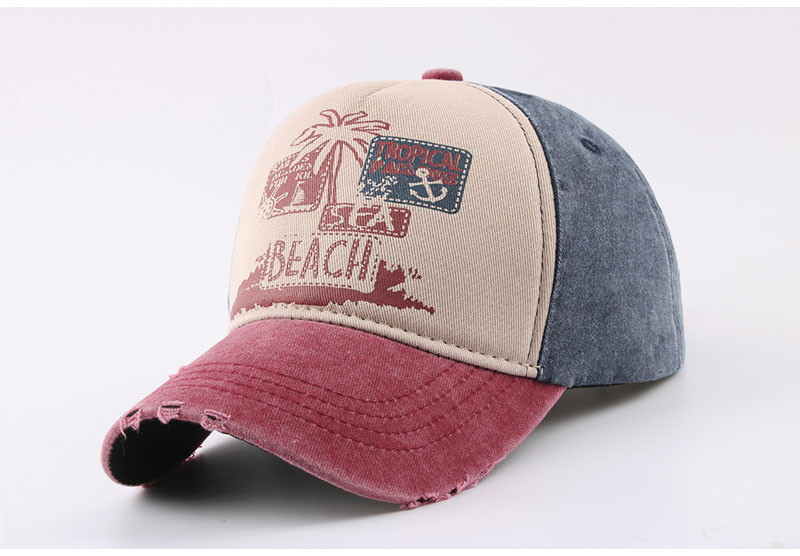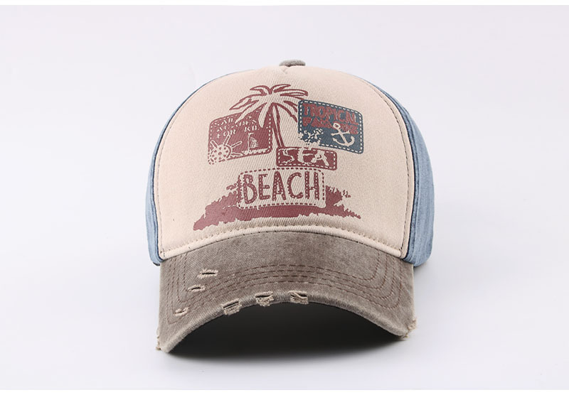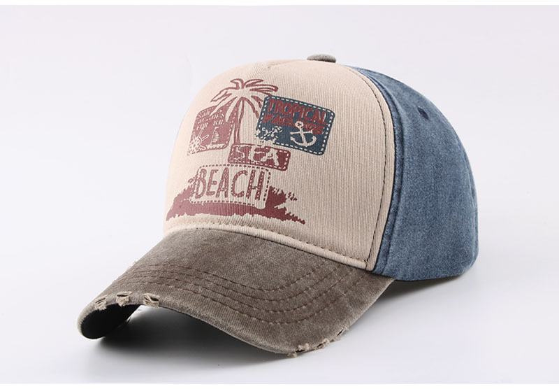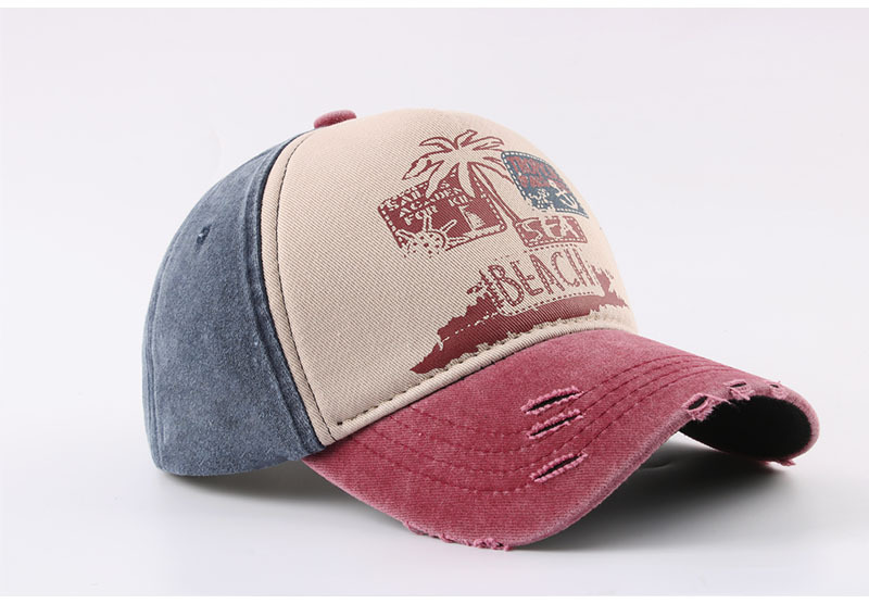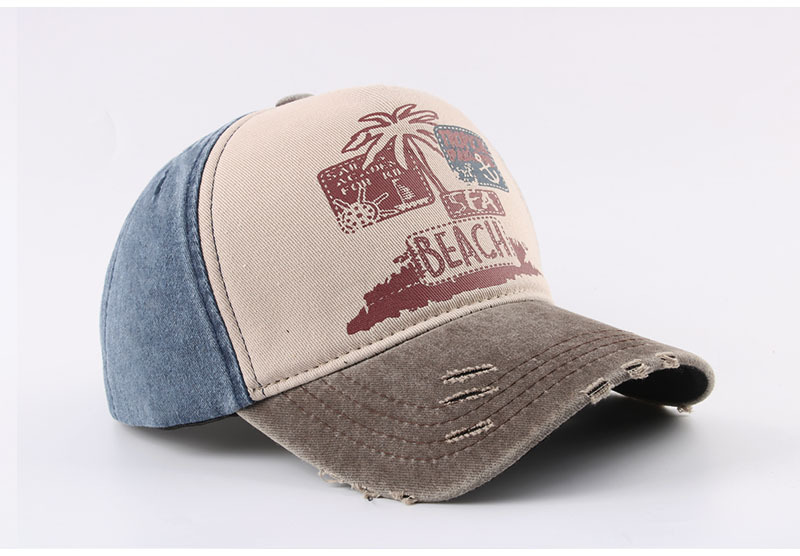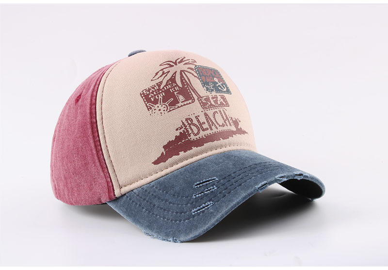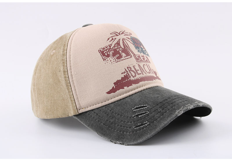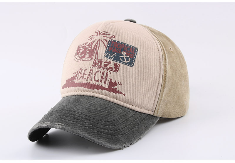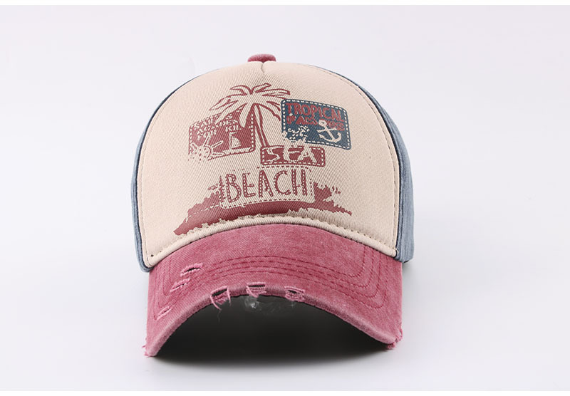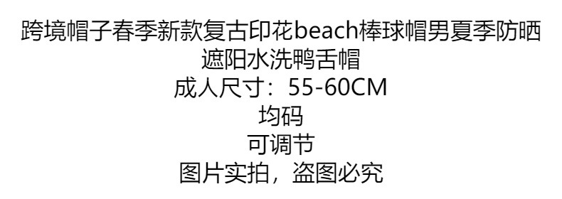 跨境帽子春季新款复古印花beach棒球帽男夏季防晒遮阳水洗鸭舌帽