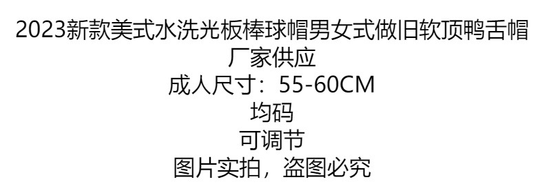 2023新款美式水洗棒球帽男女式做旧软顶鸭舌帽春季防晒遮阳帽子