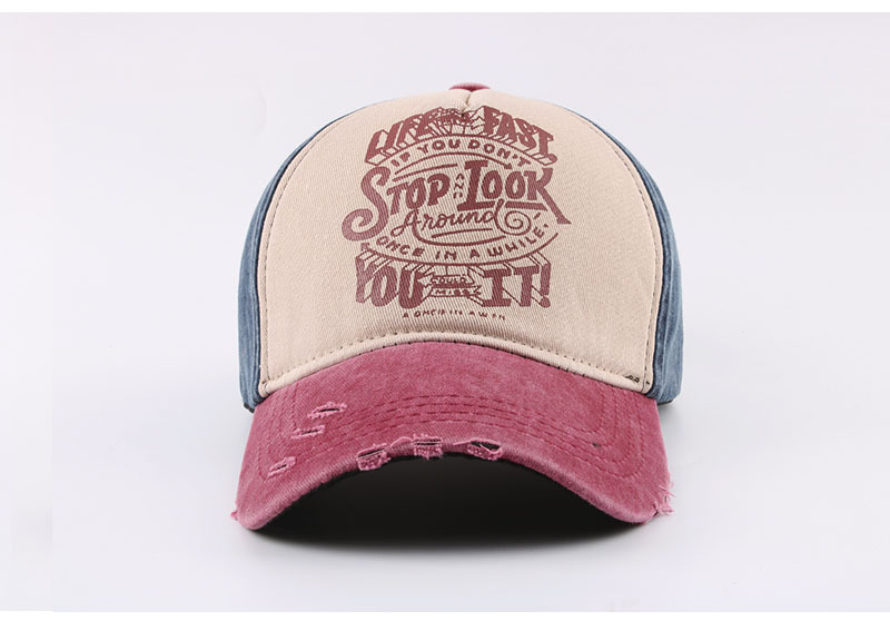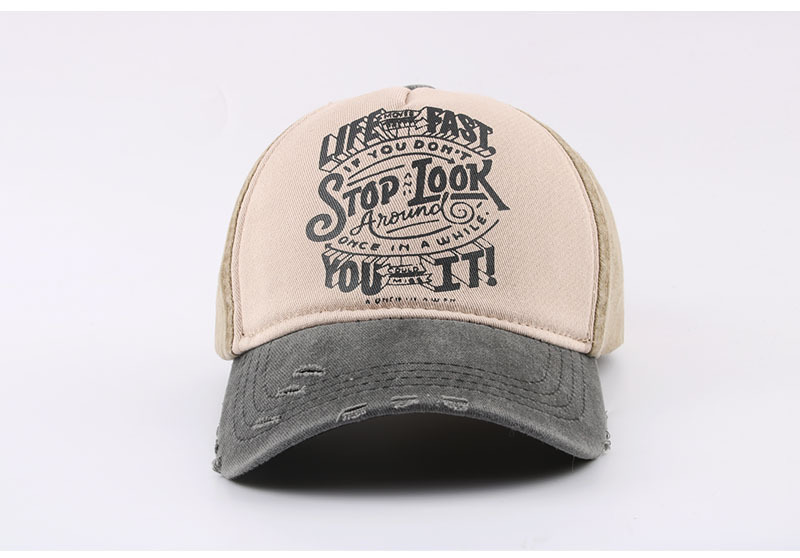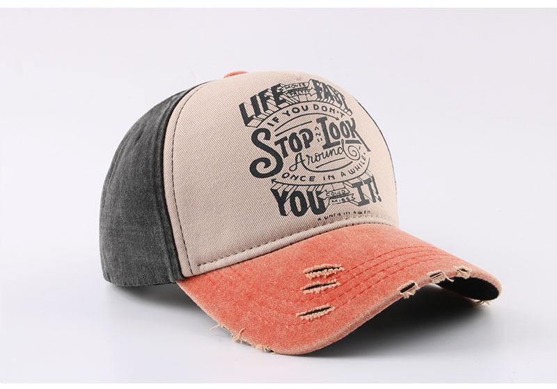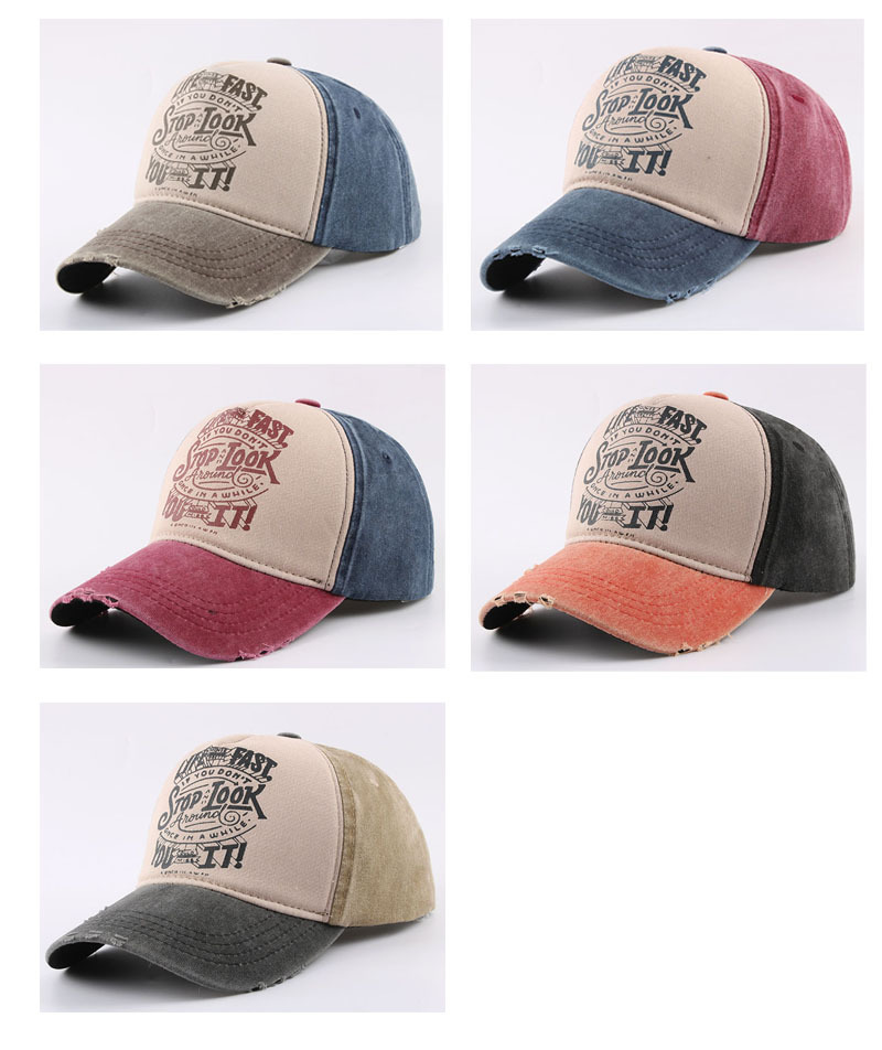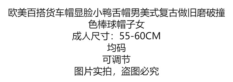 欧美百搭货车帽显脸小鸭舌帽男美式复古做旧磨破撞色棒球帽子女