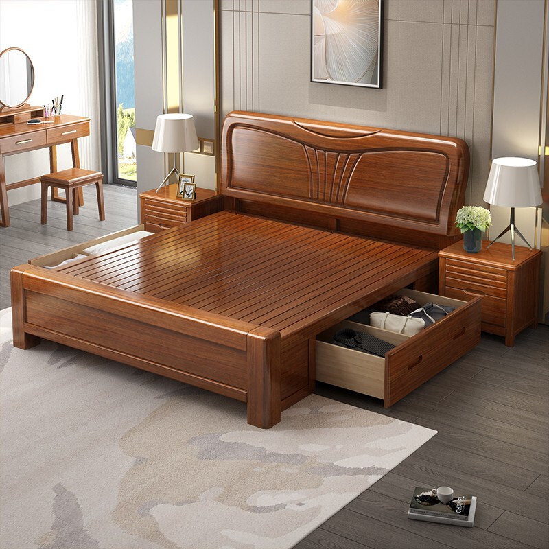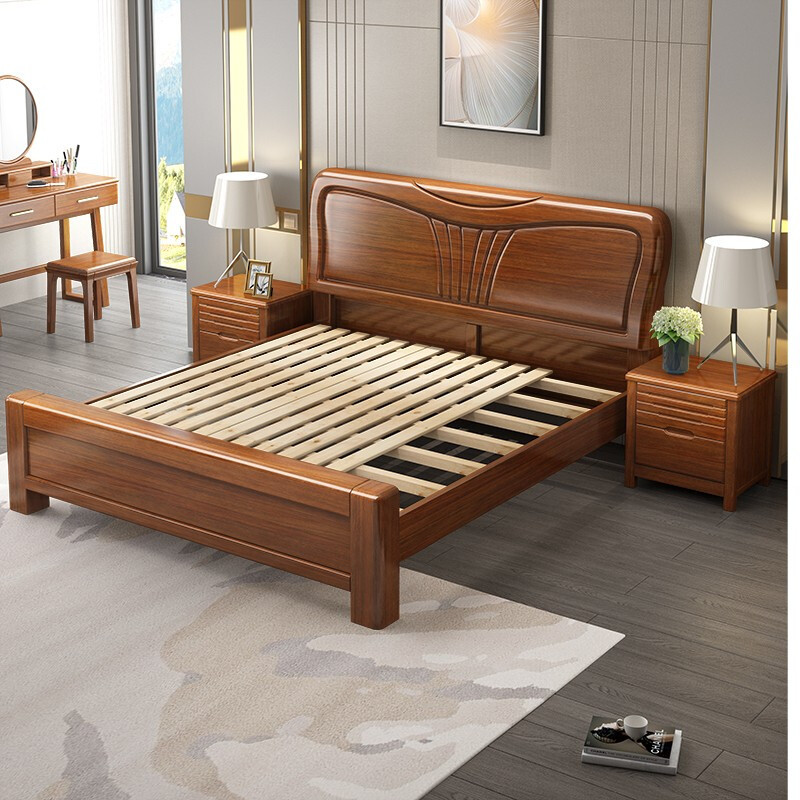 中式胡桃木床卧室实木批发家具双人床现代简约主卧1.8米1.5米婚床