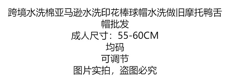 亚马逊跨境帽子男士春夏季新款鸭舌帽欧美印花复古做旧棒球帽批发