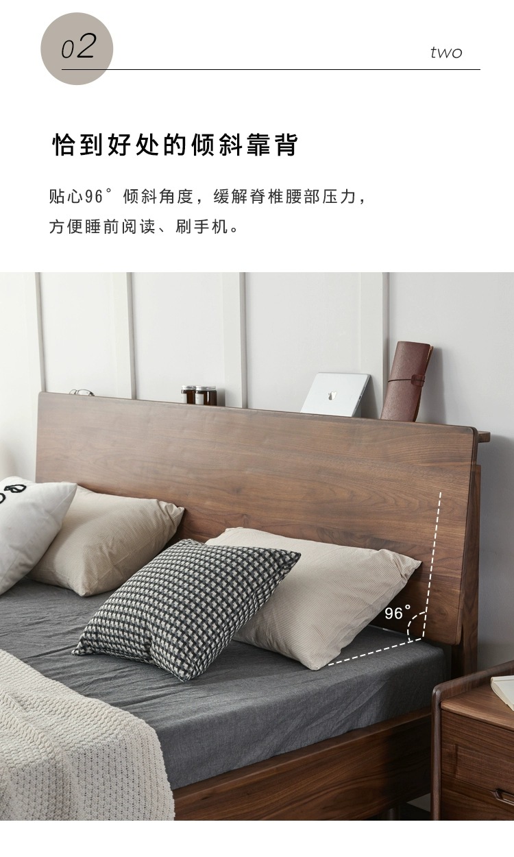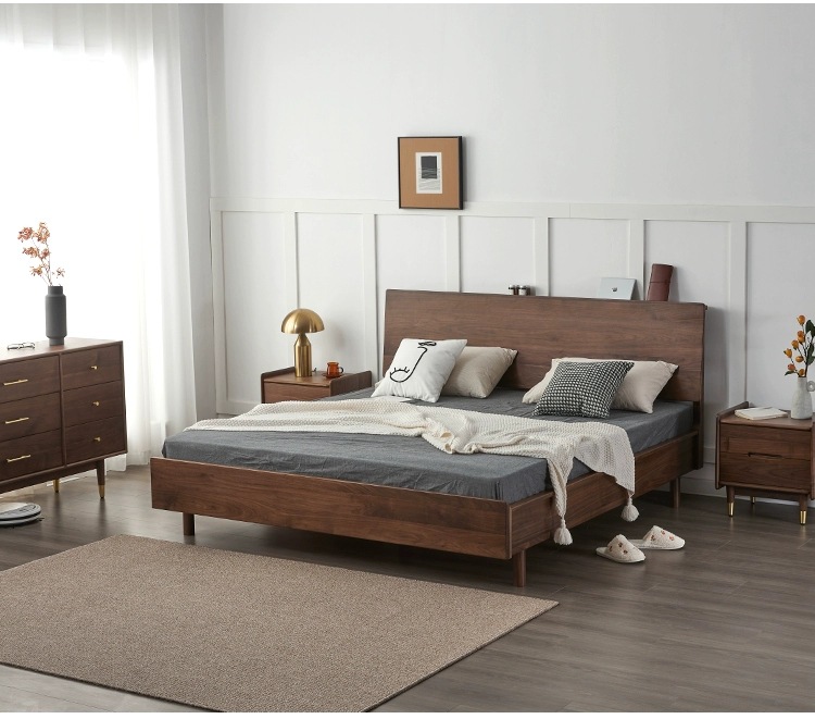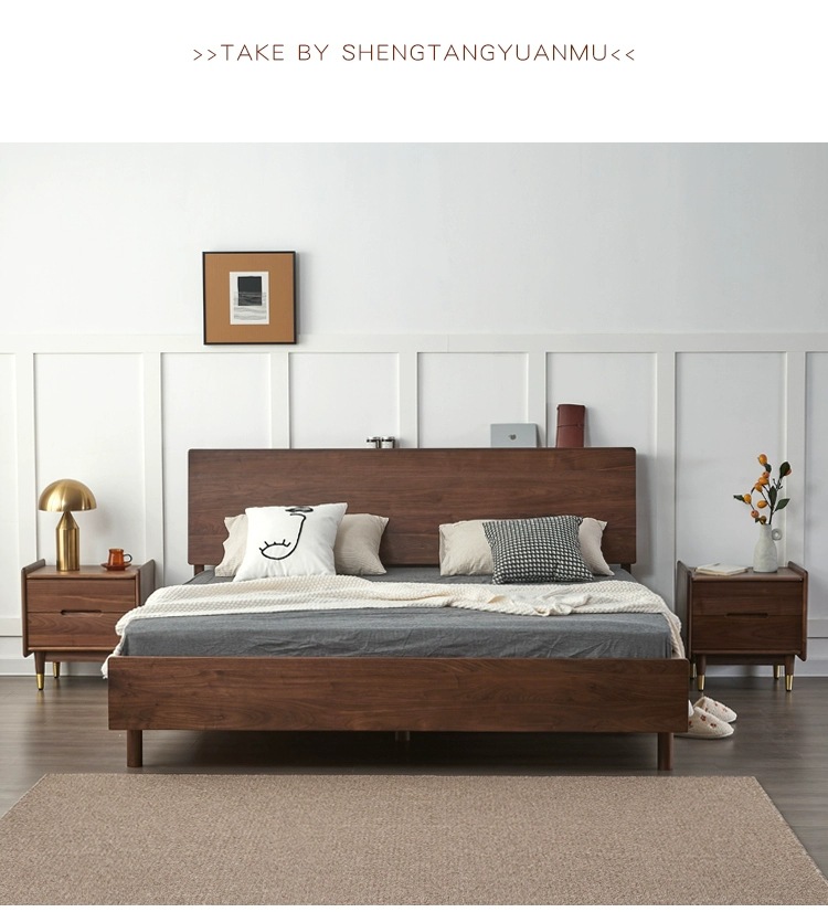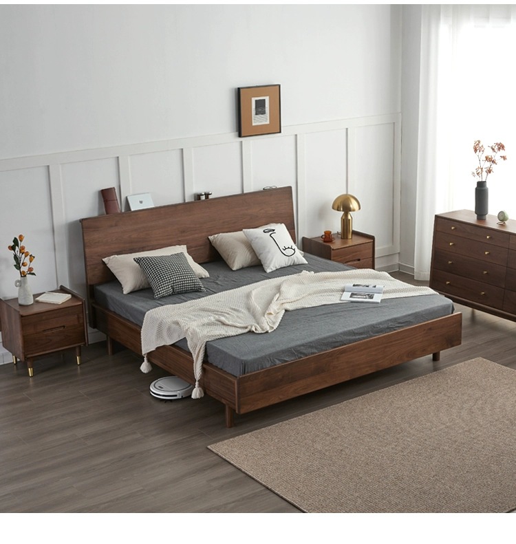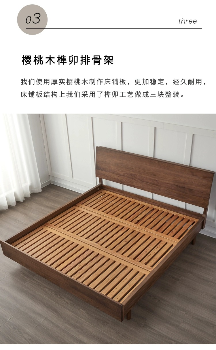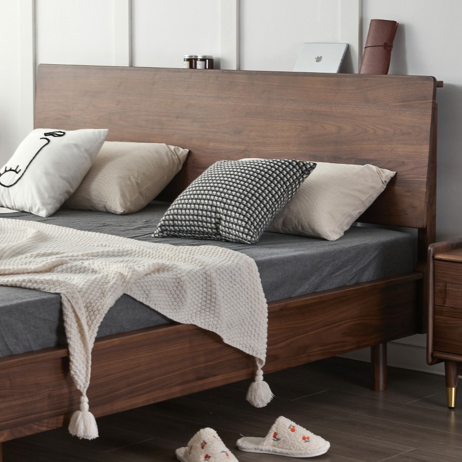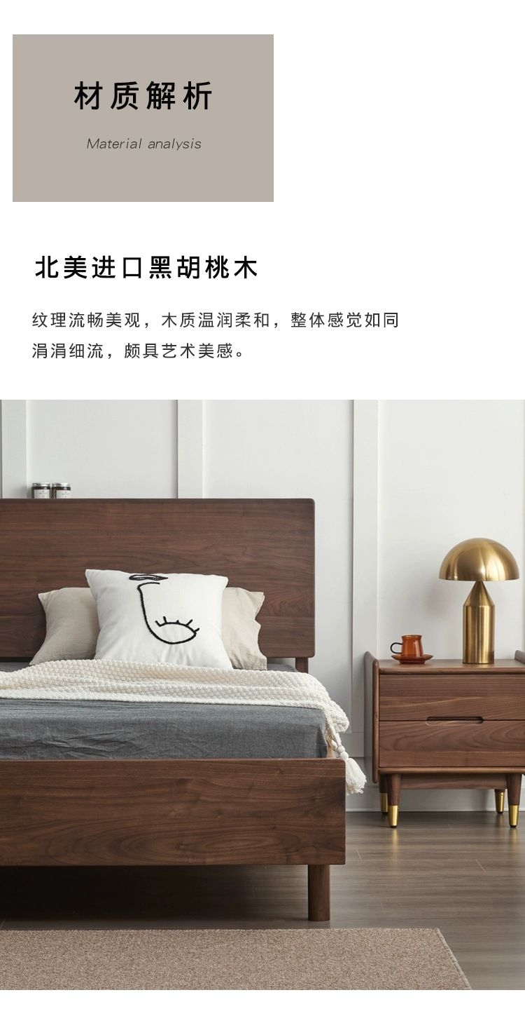 北美黑胡桃实木双人床现代简约樱桃木原木主卧家用婚床北欧2米床