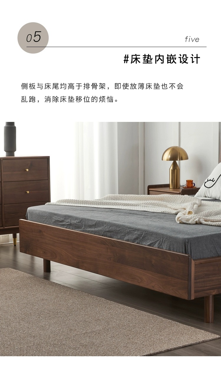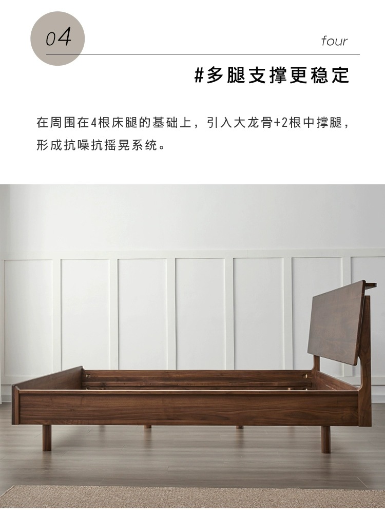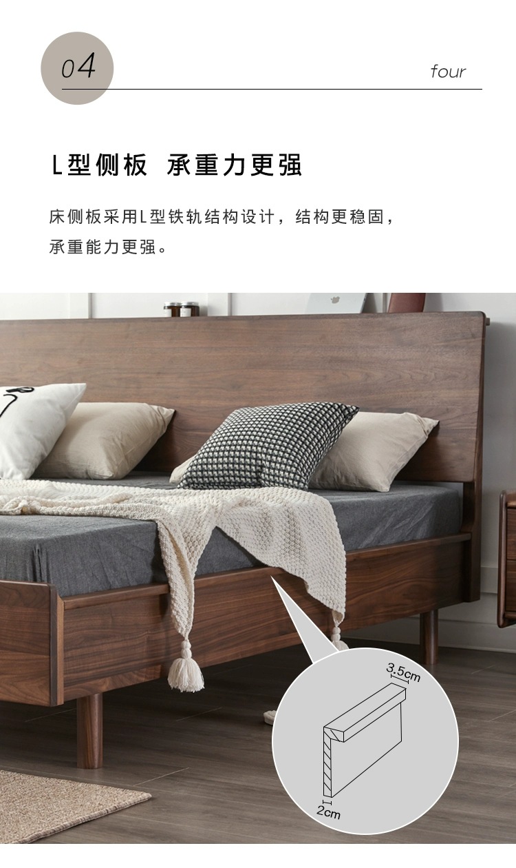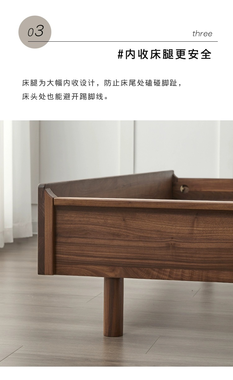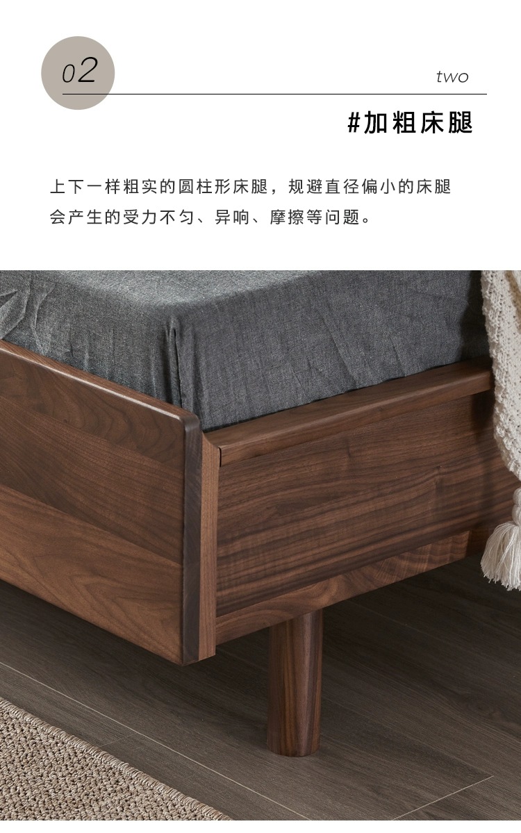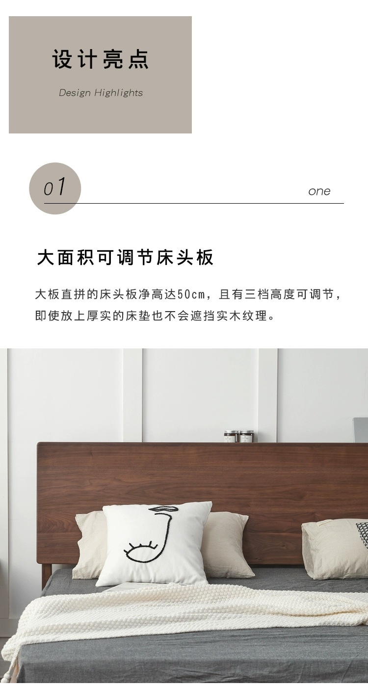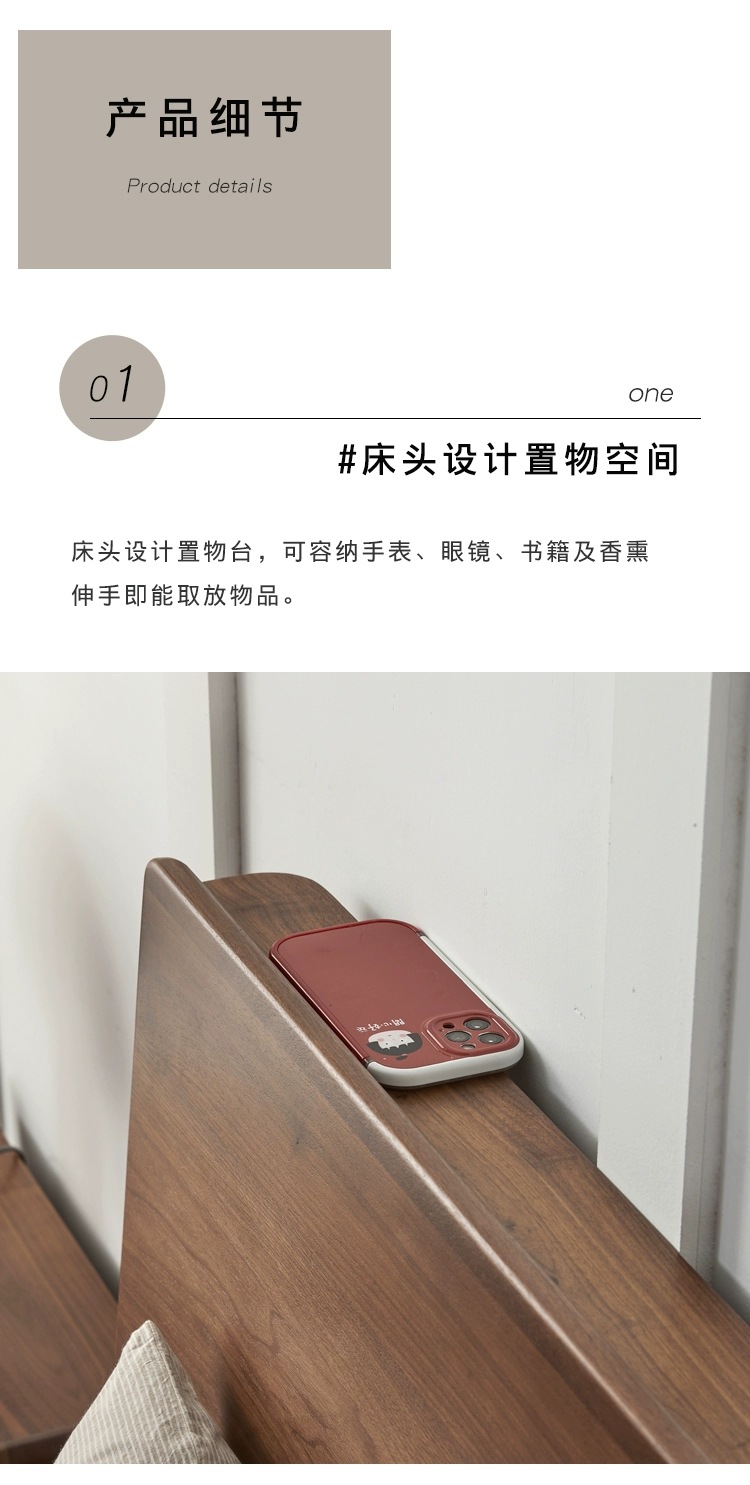 北美黑胡桃实木双人床现代简约樱桃木原木主卧家用婚床北欧2米床