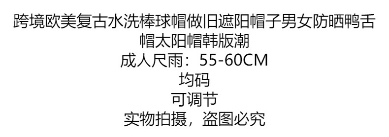 跨境欧美复古水洗棒球帽做旧遮阳帽子男女防晒鸭舌帽太阳帽韩版潮