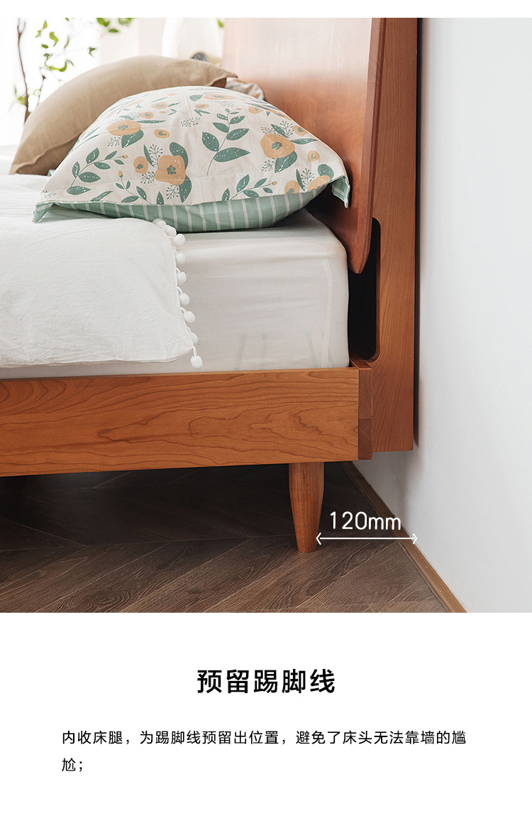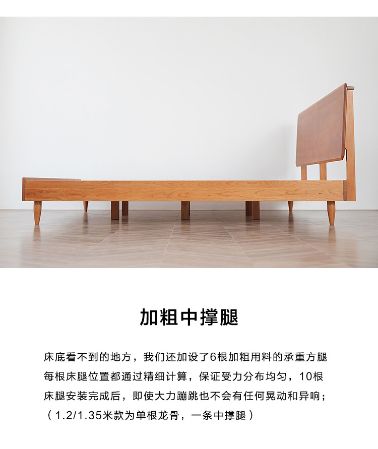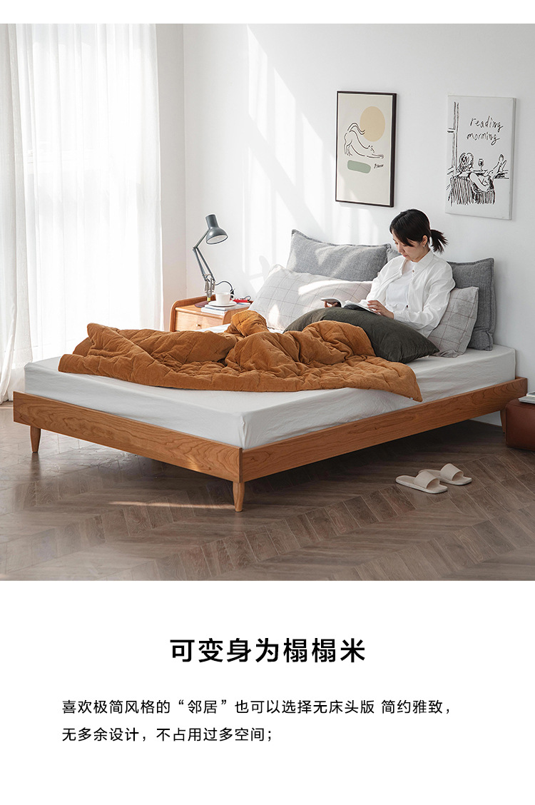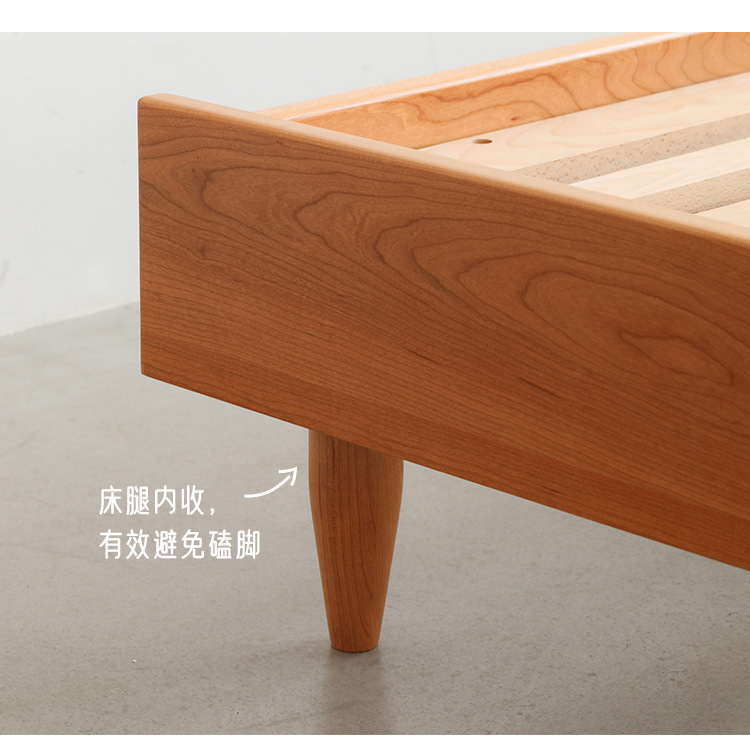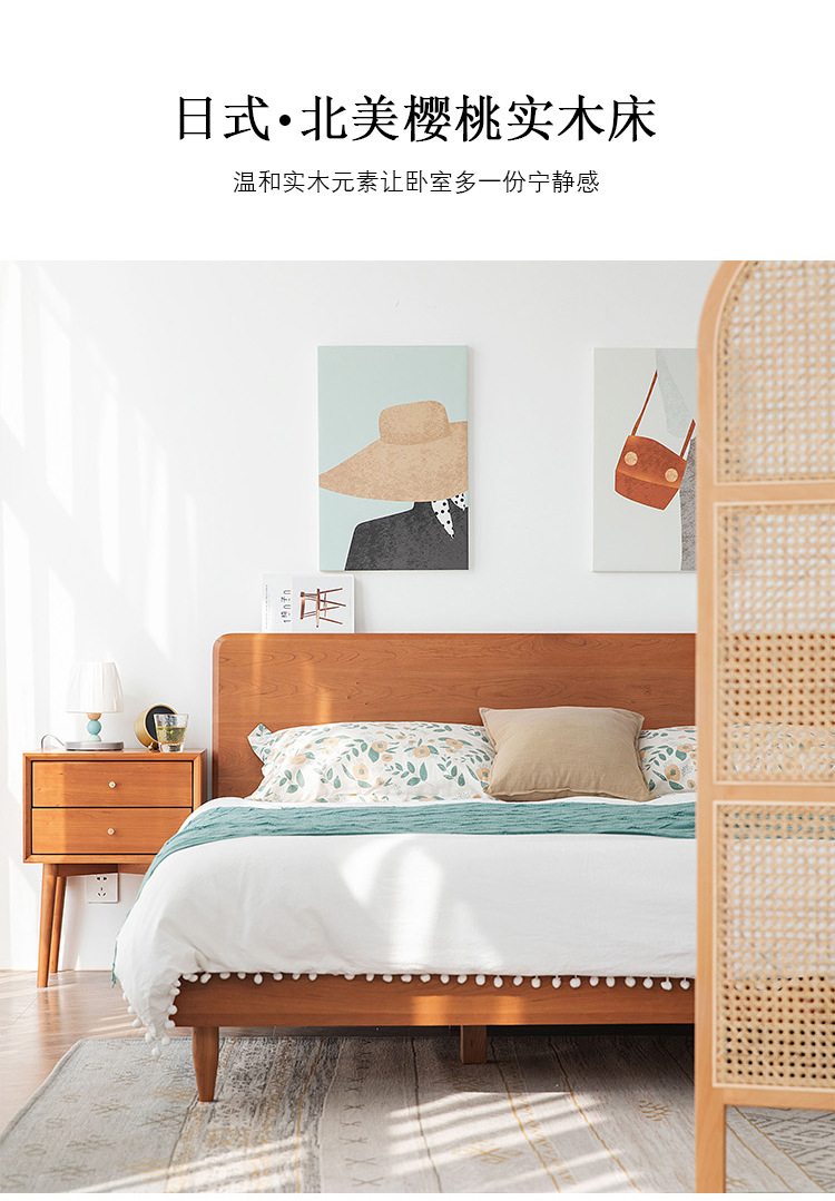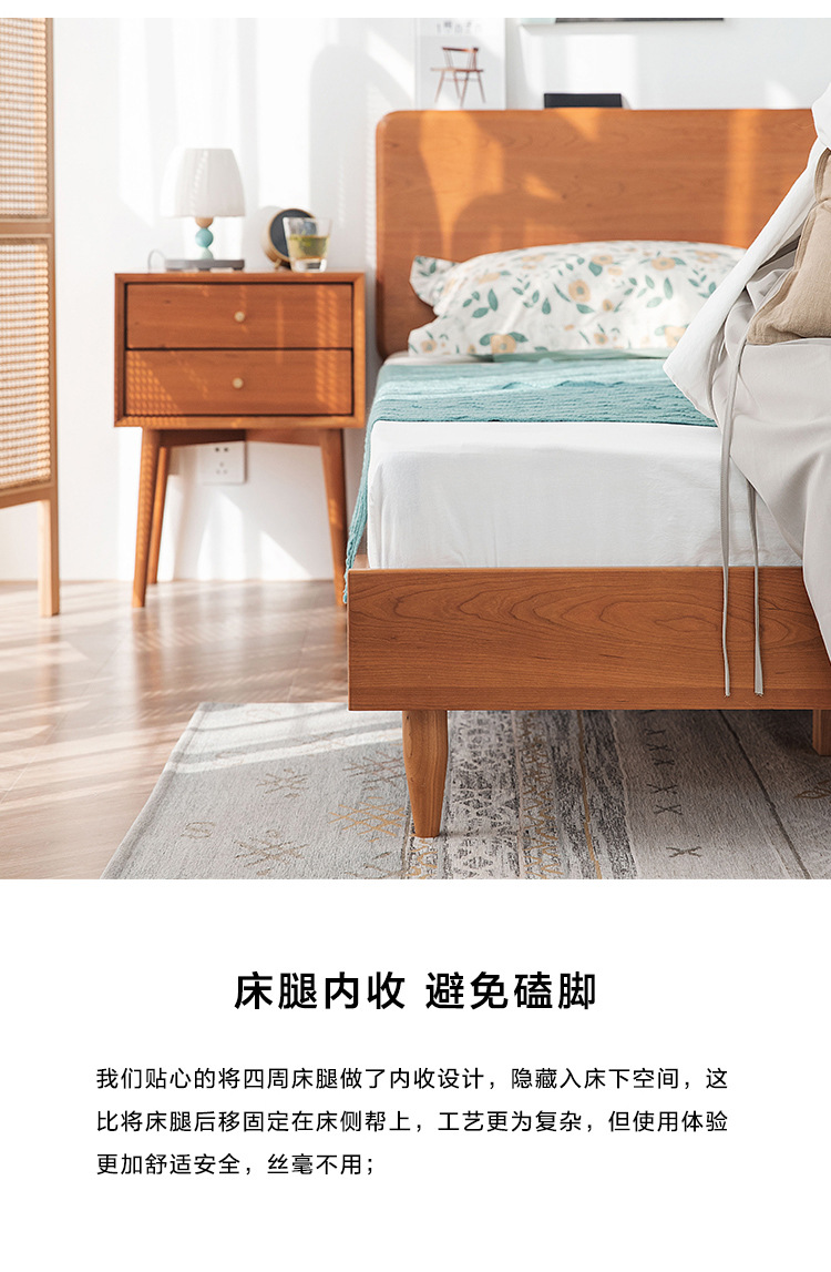 北欧樱桃木1.5小岛床日式简约卧室榻榻米原木床1.8米双人实木婚床