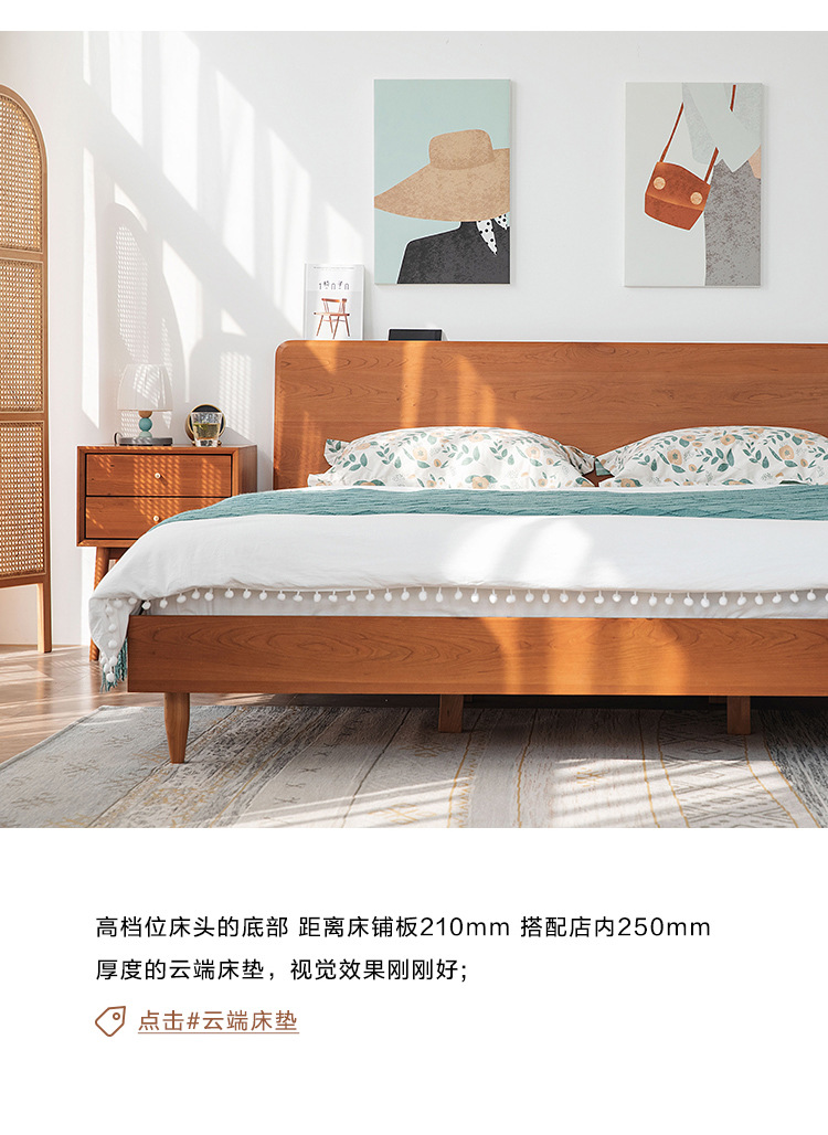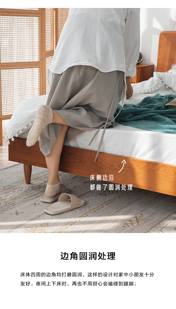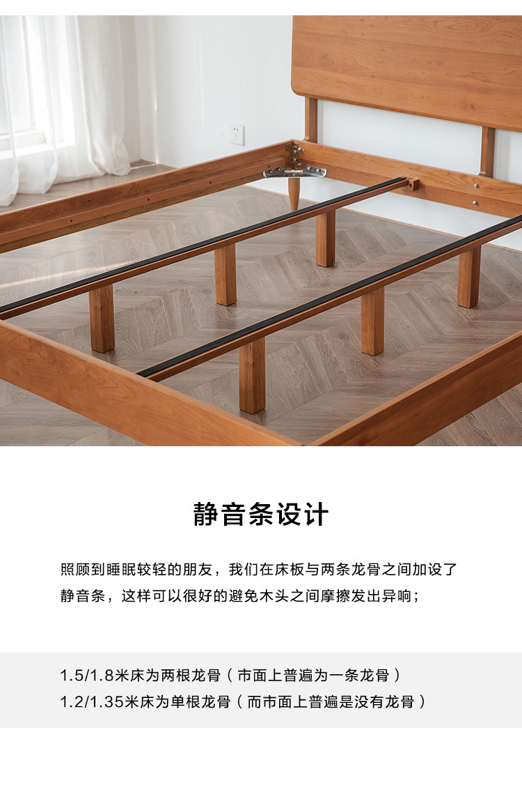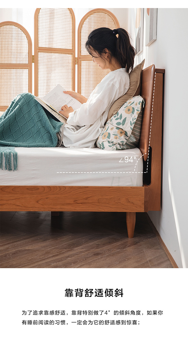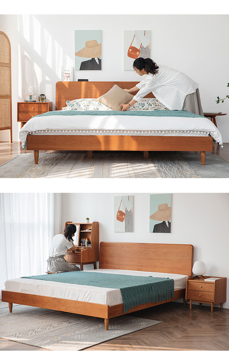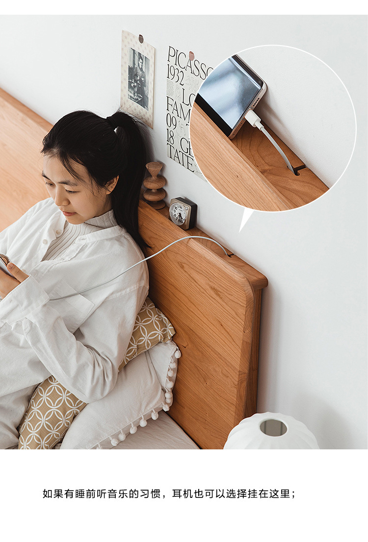 北欧樱桃木1.5小岛床日式简约卧室榻榻米原木床1.8米双人实木婚床